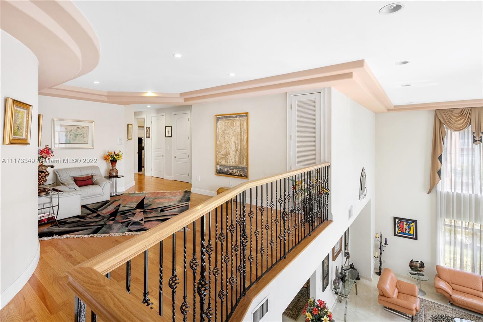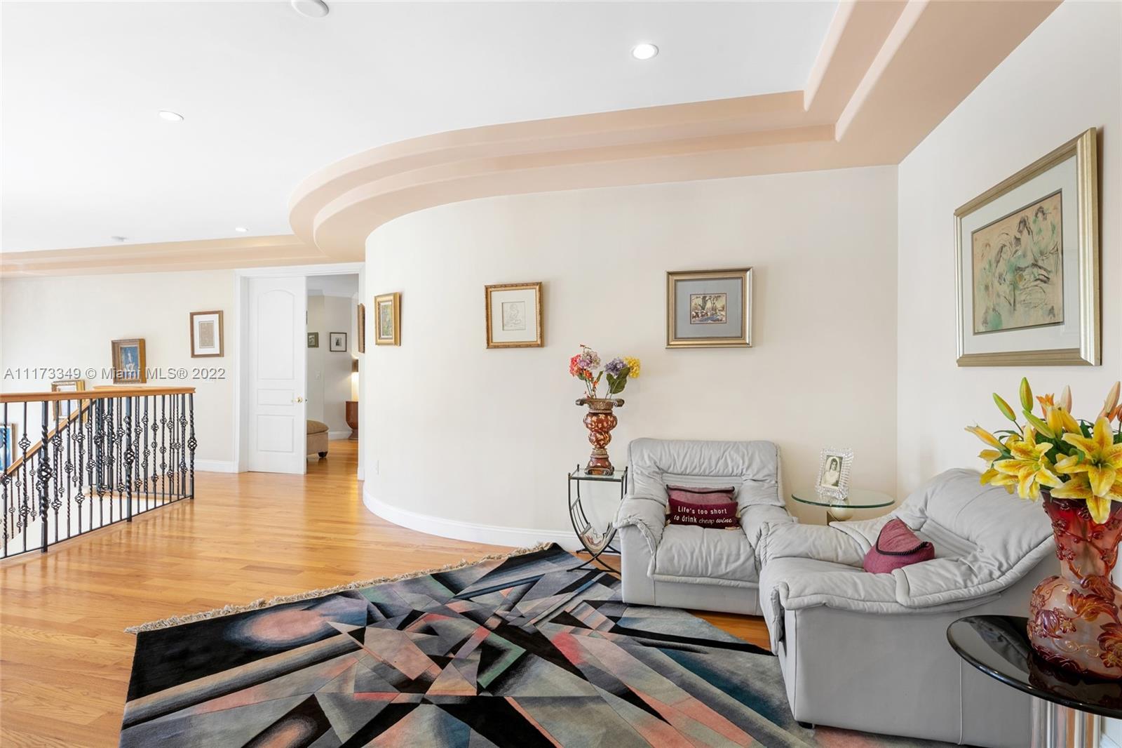 Beautiful waterfront residence in guard gated Eastern Shores. Boasting 5,089 square feet with 5 beds/5baths + 2 half baths, and sitting on an oversized 13,565 square foot lot, this is a boaters paradise with deep water, no fixed bridges to bay, composite wood dock, and 15,000 lbs. boat lift. As you enter, you are greeted by vaulted ceilings and natural light beaming through double-height windows. Spacious open layout, featuring a wet bar and wine storage, is perfect for entertaining. Gourmet kitchen with breakfast nook opens out to the covered patio with heated pool and jacuzzi. Expansive principal suite with a sitting area and dual closets as well as an upstairs loft area. Two car garage. Great yard space. Minutes from the beach, Bal Harbour shops & Aventura Mall/restaurants.