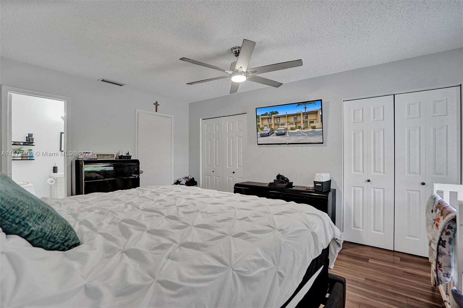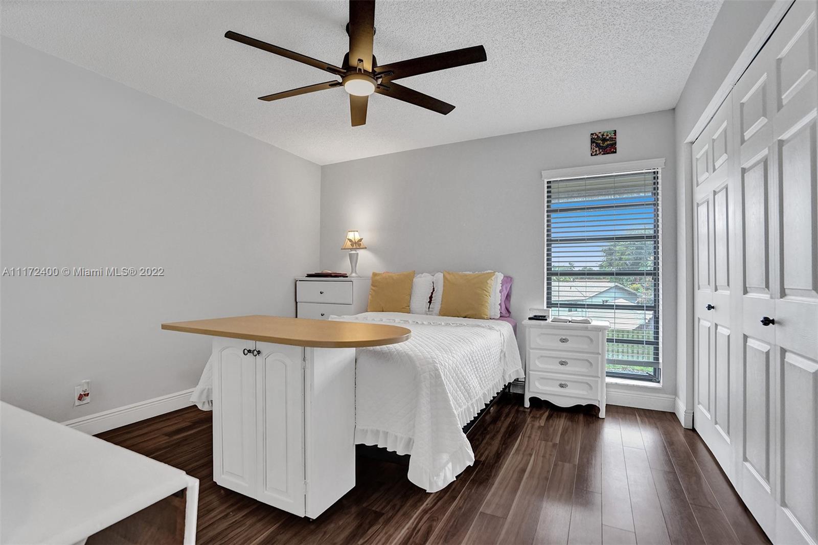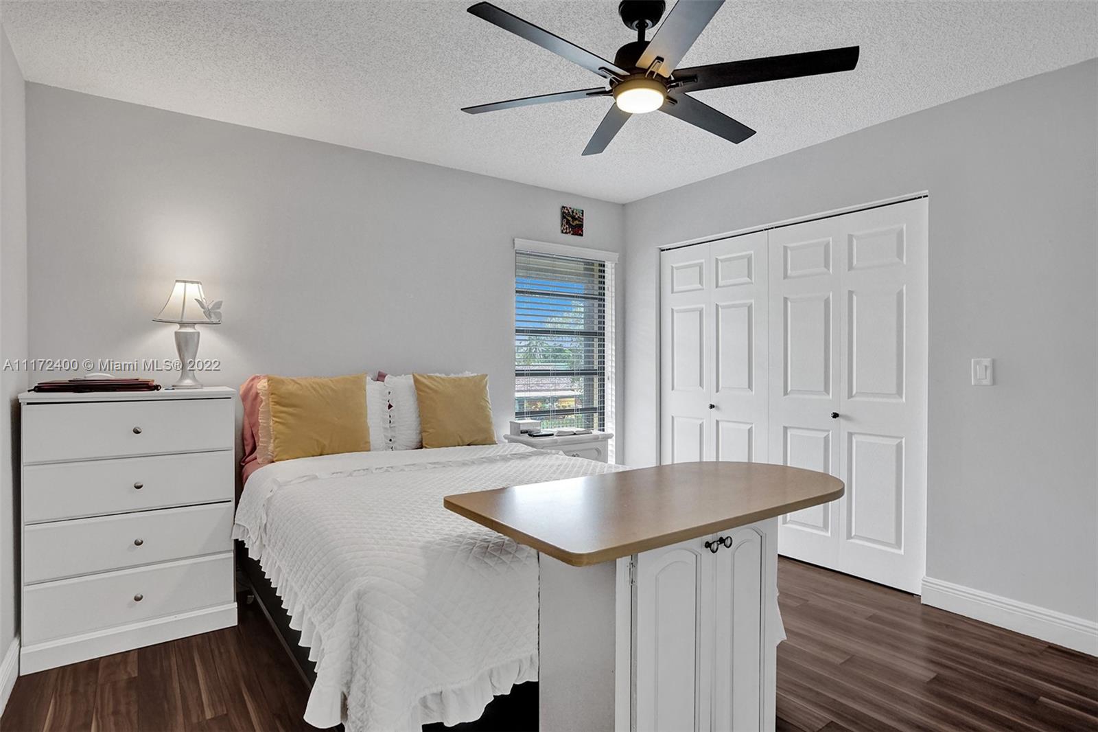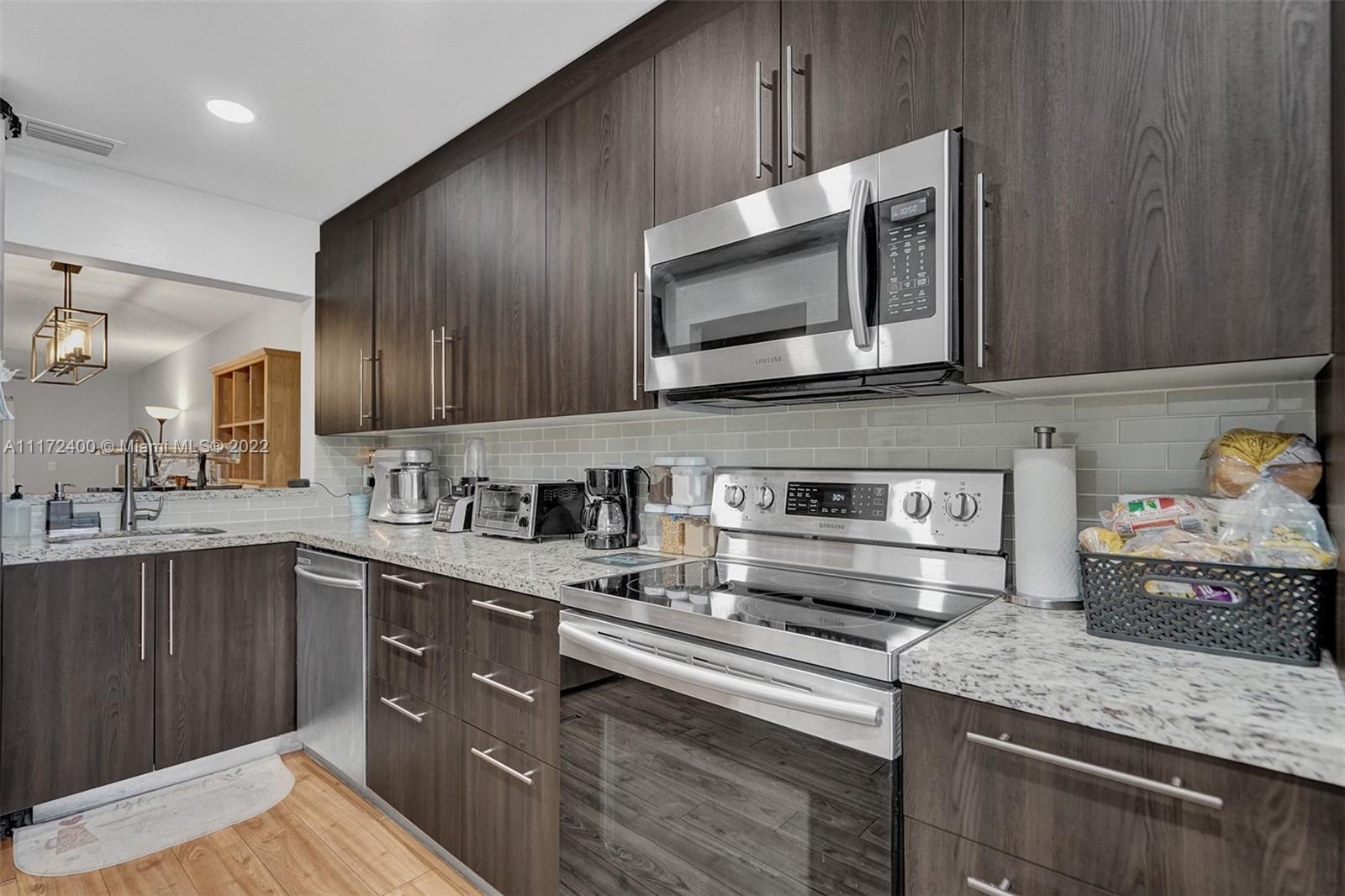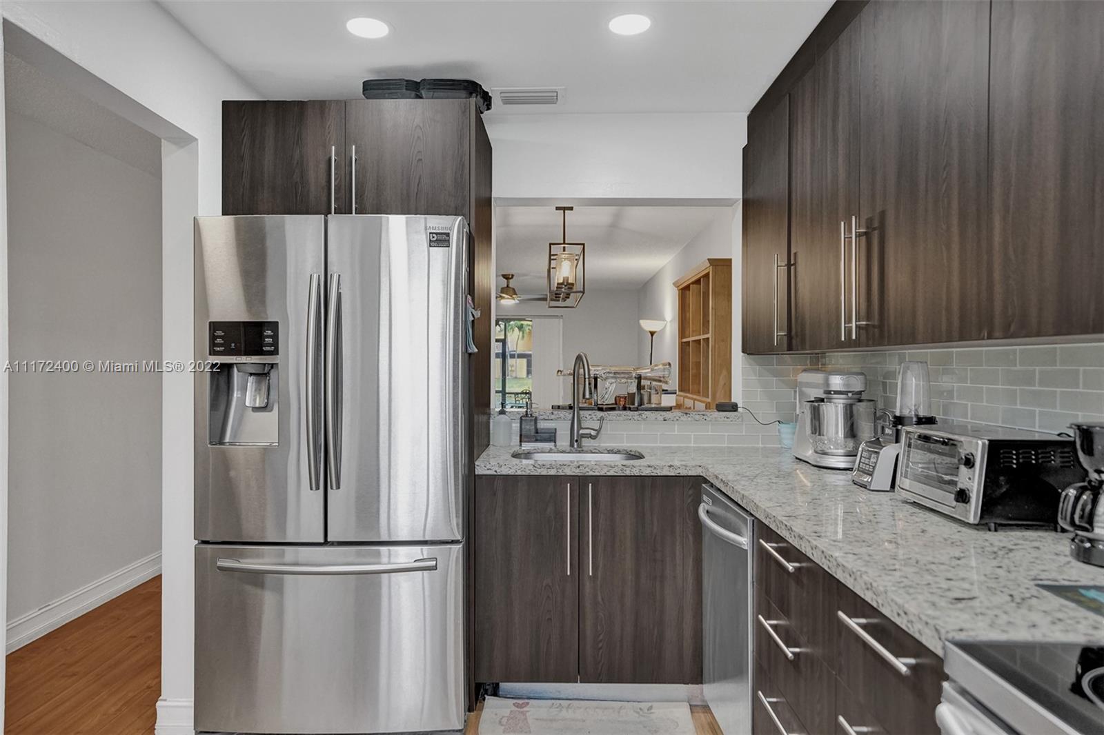 2B/2.5B. GREAT starter home! Well maintained and remodeled 2-story townhome with a lake view in Pembroke Pines. Features 2-master bedrooms and half bath at entry way. Remodeled 2019 kitchen with granite countertops, wood cabinetry, stainless steel appliances, all bathrooms with quartz countertops and tile. Wood flooring throughout, and tile in bathrooms, no carpet. Enclosed and screened patio overlooking the lake. HOA monthly fee includes cable and internet, lawn maintenance, clubhouse, pool, tennis courts, and more. Close to schools, highways, shopping mall and hospitals. Close proximity to dog park and play lot.