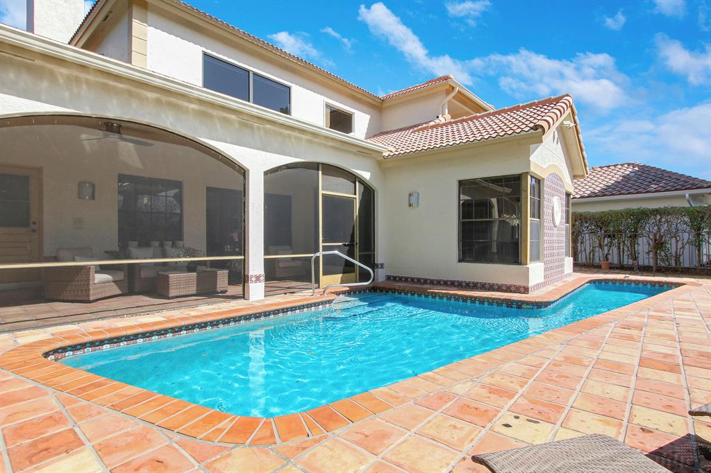 This Mediterranean single-family home, located right on the golf course is what you have been waiting for, located in La Corniche @ Boca Pointe. 2 story, 3 bedrooms, 3 1/2 bath, 2 car garage, with a working elevator to take you right up to the second floor into the lg master suite, has 2 walk-in closets. Great home for entertaining, quartz wood burning fireplace, marble flooring, high ceilings, formal dining room, updated kitchen, stainless steel appliances, & family room. LED lighting. Roof installed 2010, 3 zoned A/C less than 10years old. Working hot tub. inside screened in patio. Plenty of greenery, Come see it for yourself you will not be disappointed. Boca Pointe is a non-mandatory CC.