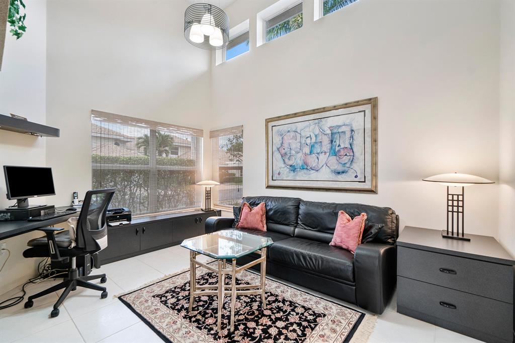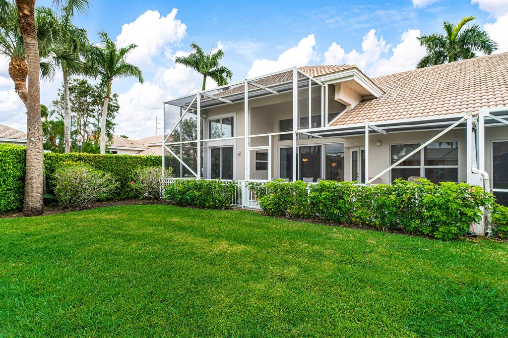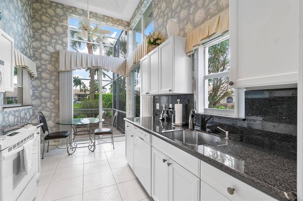 Opportunity awaits with this sun-filled townhome with views of a pond with a sparkling water fountain. The dramatic ceiling heights will impress you upon entering the open concept family room. The eat-in kitchen extends to a large screened-in patio where you will experience a perfect outdoor living space to view beautiful sunsets. The primary bedroom and bath have been updated with beautiful finishes and features a walk-in closet, vaulted ceilings and access to the patio. A private second bedroom is close to the updated second bathroom. A purposeful den/third bedroom offers a built-in office and wet bar located off of the great room. This home boasts IMPACT resistant hurricane windows and doors, a separate laundry room and two car garage. This home is located in the Windsor Parke section