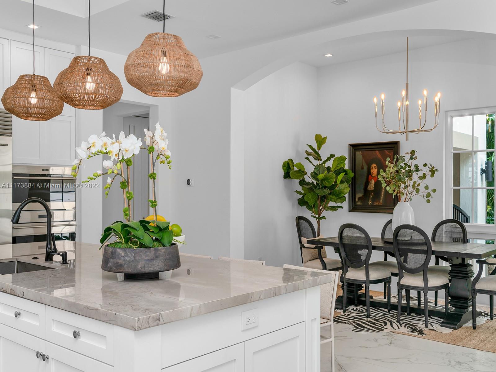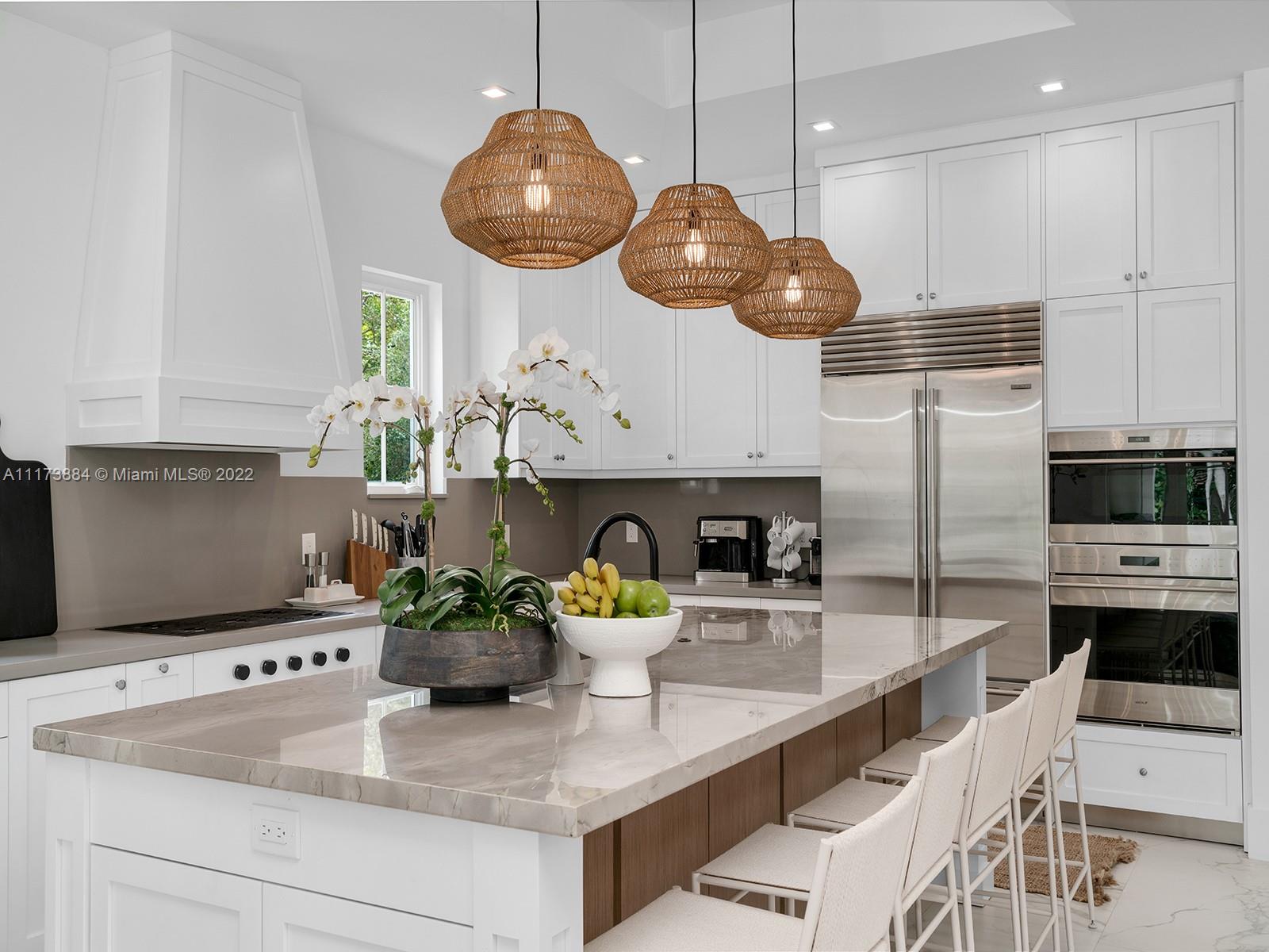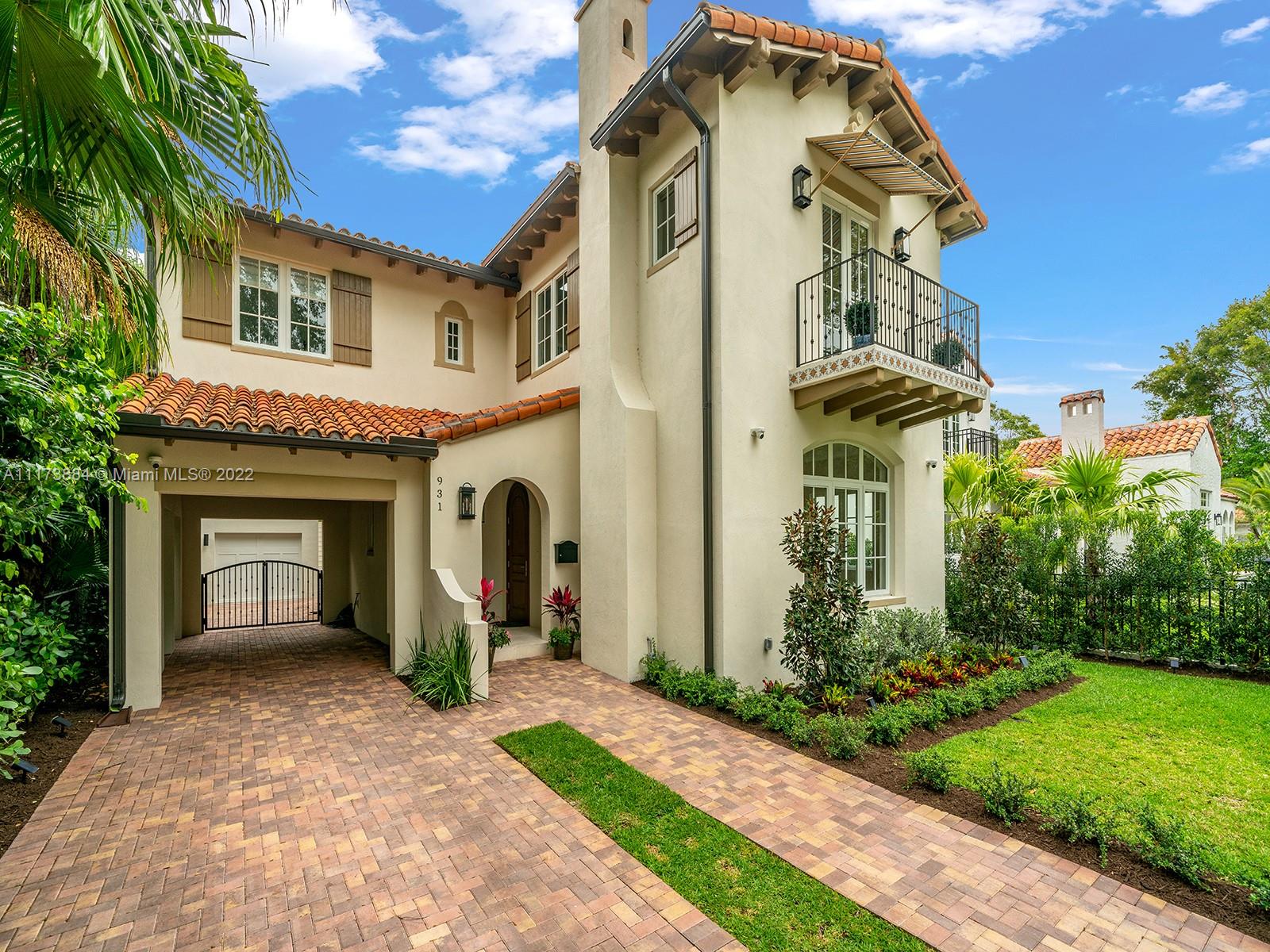 Impeccably designed turn-key 2021 new construction home in the heart of downtown Coral Gables. Natural light floods this 2-story home featuring 3 bedrooms and 2.5 bathrooms in the Main House. Separate Guest House includes 1 bedroom, full bathroom and balcony. Primary Suite upstairs with double walk-in closets and sundeck. Perfect for families and entertaining, top-of-the-line Chef's kitchen with Sub-Zero and Wolf appliances, oversized island & quartz countertop. Porcelain tiles throughout, fireplace, plus sound system, impact windows & doors and high ceilings. Family room opens to covered terrace, summer kitchen and salt water pool. Ideally located blocks from Miracle Mile, Biltmore Hotel, the best schools, golf courses, parks, restaurants and shops nestled in the heart of Coral Gables.