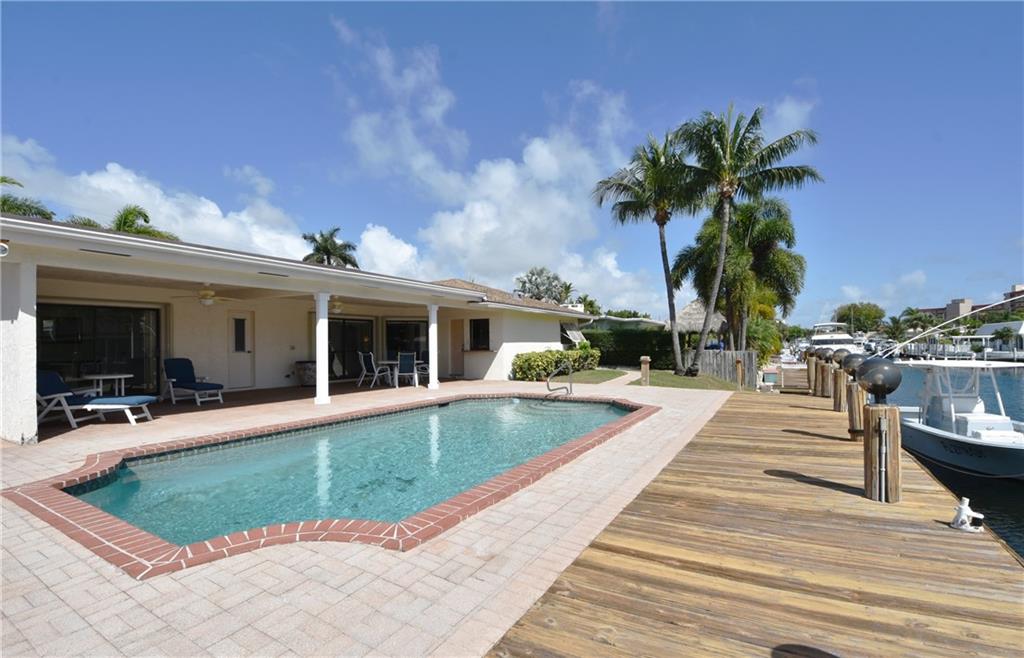Large waterfront, No fixed bridges 80 ft. deep-water -3/2 2 car garage pool, roof 2012 -original interior. Nice covered patio -well built home- security system, shutters, foyer, built in bar. OPEN this Saturday (March 19) & Sunday (March 20) approx. 12-3