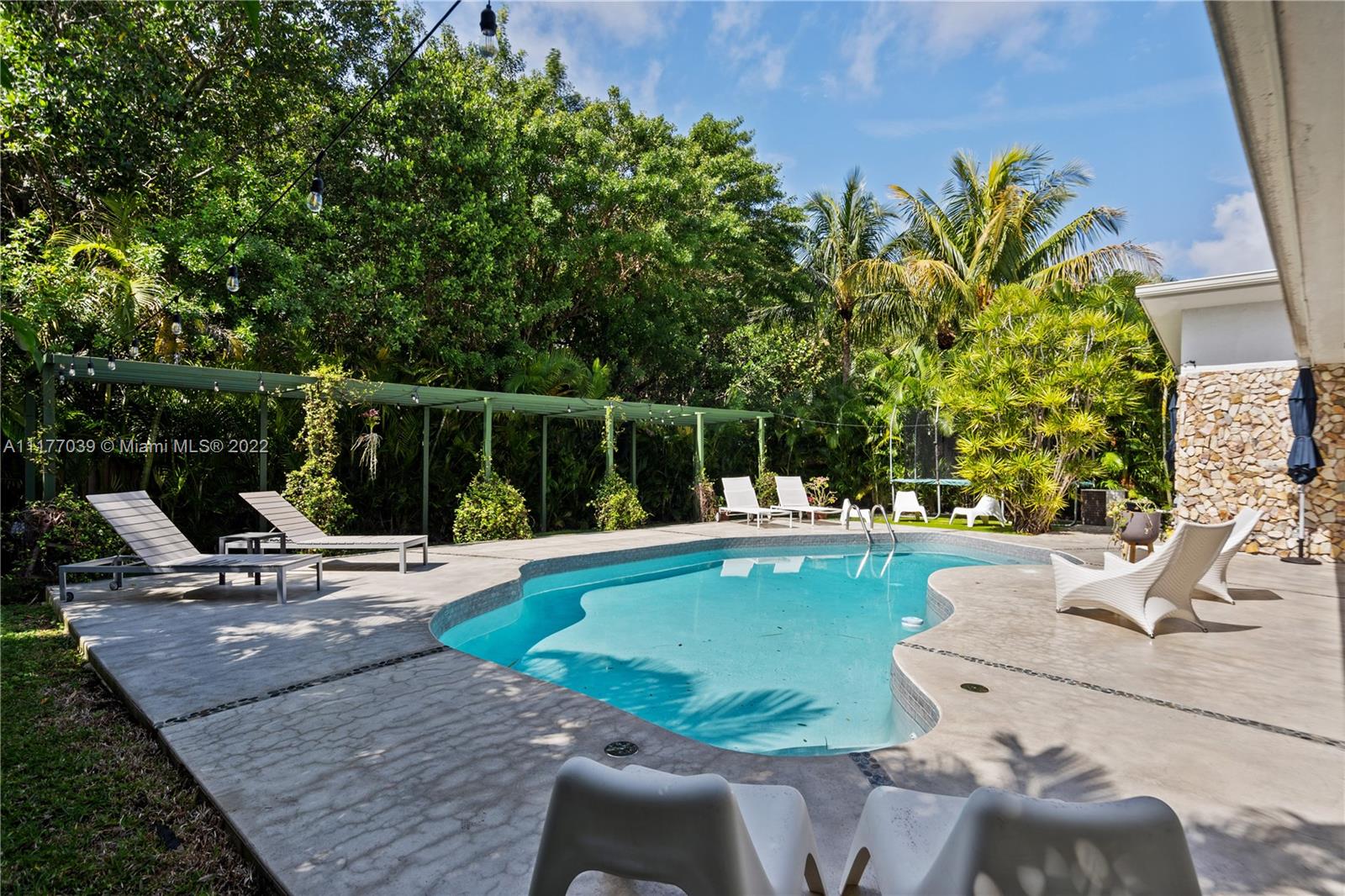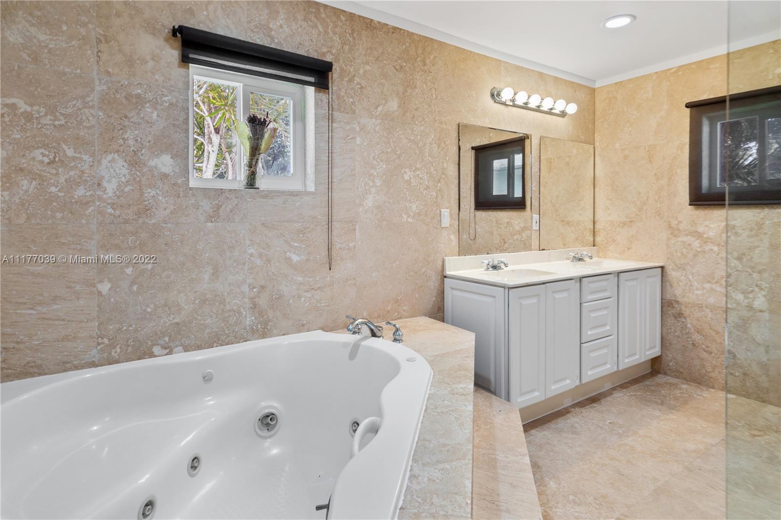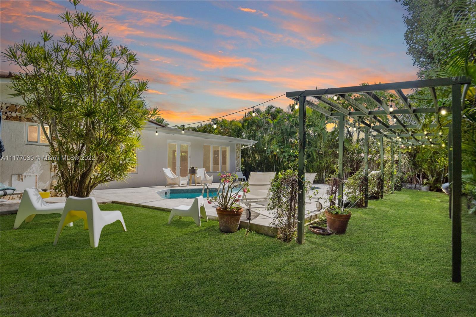 24 Hr Guard Gated boutique enclave of homes in Miami’s Sans Souci Estates. Huge master bathroom features spa-jacuzzi tub plus separate shower. Hurricane impact windows, Central A/C. Kitchen opens to family room and great room. Custom pool and patio area are very private and synthetic grass makes a great addition to the pool area and make this a great space to entertain. A garage for additional storage or a place for your favorite car! Located in district of David Lawrence Jr K-8 School & Alonzo & Tracey Mourning High School. 5 Mins to Bay Harbor, Bal Harbor Islands, 10 mins to beaches & 20 mins to Airports.
