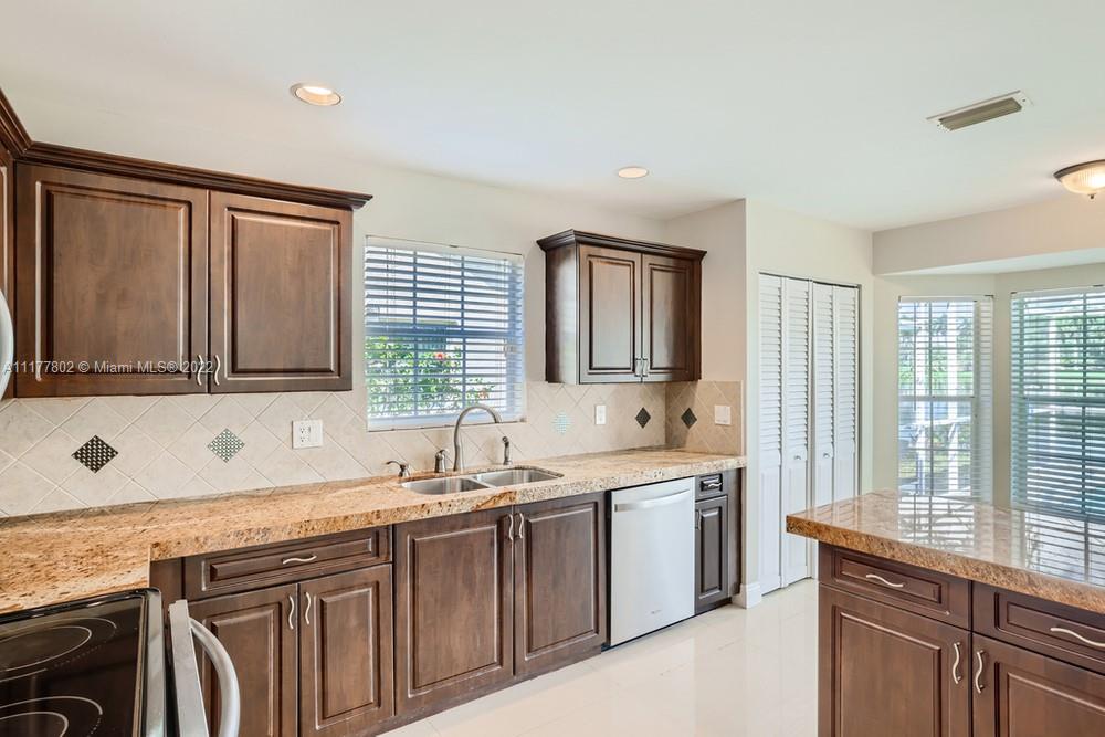 Prepare to be impressed with this superb 3 bedroom and 2.5 bathroom home located in Sunrise. With sleek interior finishes, this home looks and feels like a private retreat. As you enter the home, you are greeted by an open concept main level and high ceilings adding to the spacious feel. You will love the eat-in kitchen, with granite countertops, beautiful cabinets, and stainless steel appliances. The kitchen opens to the screened inground pool with views of the calm pond, ideal for entertaining. The primary bedroom is conveniently located on the main floor with direct access to the pool, double closets, and an ensuite with a soaking tub, shower, and dual sinks. This home is located near restaurants, parks, and schools. Do not miss seeing this impressive home!