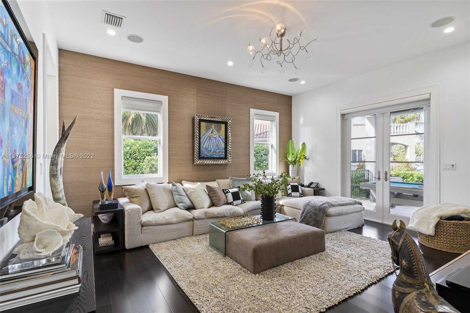 Waterfront, no bridge to bay, 6BR/6.5BA custom built home located in the guard gated community of Gables by the Sea. Elevated entrance opens to a light filled open living space with double height ceilings. Custom kitchen features top of the line appliances and quartz counter tops. French doors open to an oversized covered terrace with summer kitchen overlooking the pool and water way. Opulent primary suite with his and hers walk in closets and spa like bath. This home has it all, full home generator, impact windows and doors, elevator, security system, cabana bath, gym, family room, home office and is located close to Miami’s best private and public schools.