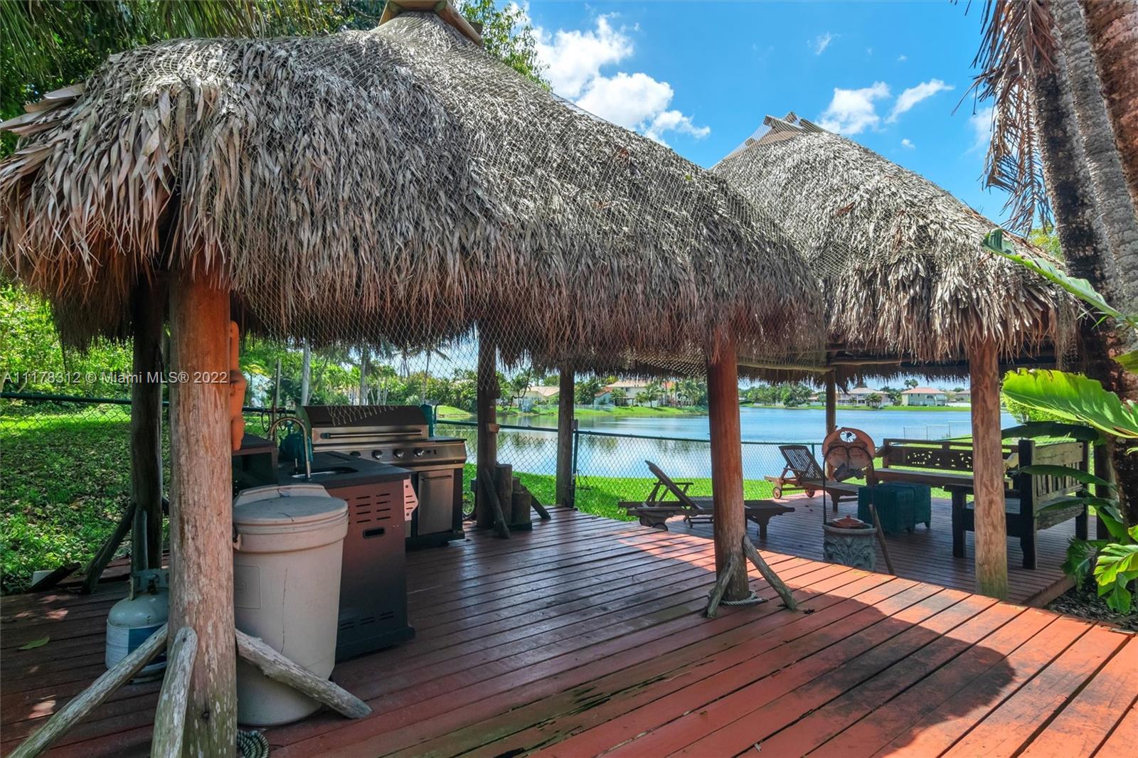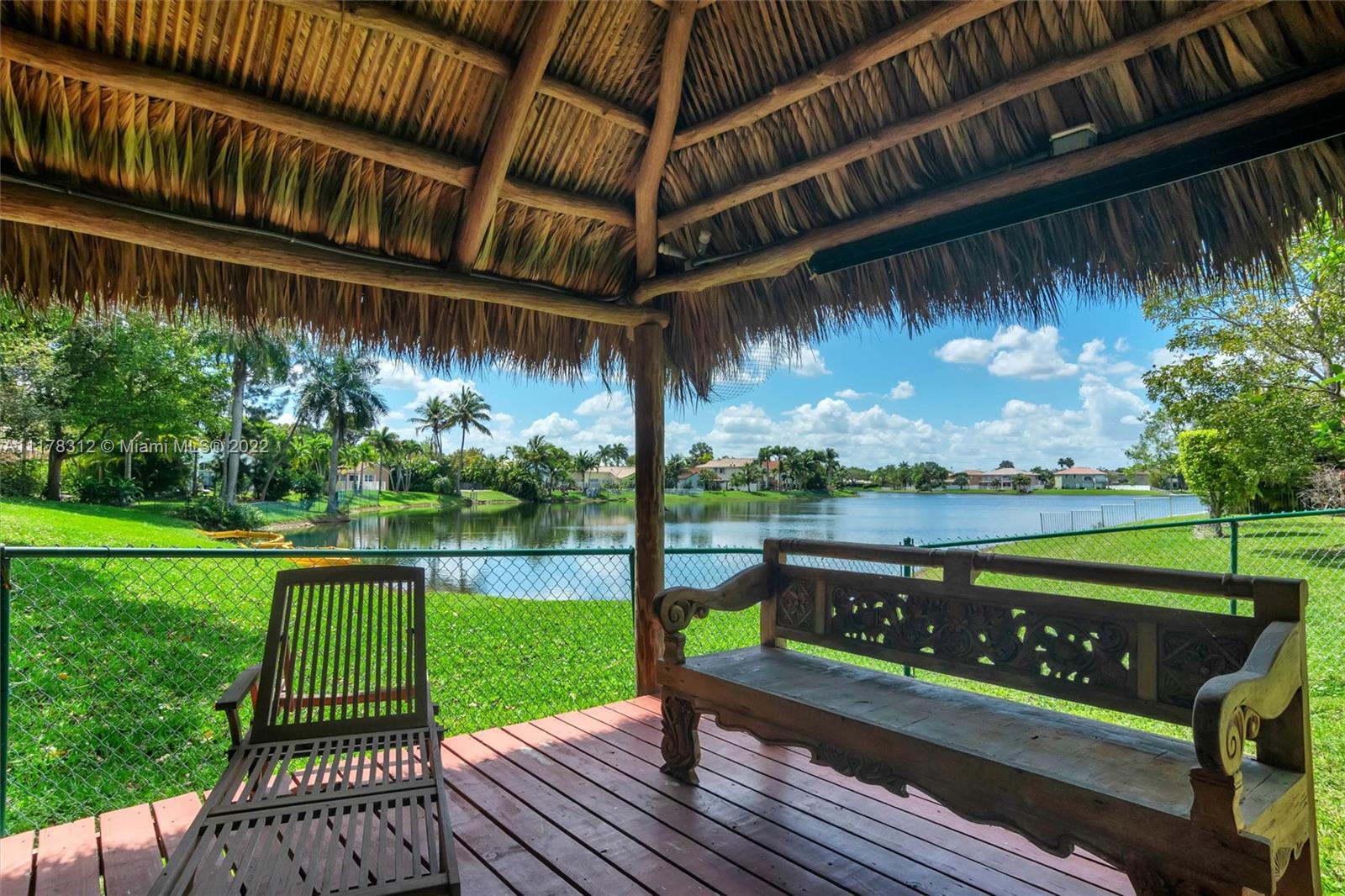 Location! your private OASIS, beautiful 1 story pool home in oversized lot .26 of an acre in a cul de sac in the great community of Pembroke Shores. Originally a 3 bedroom and two bath with Garage converted into 4th bedroom with central Ac and closet(easy to revert) Laundry room, storage room and dedicated space for office and work remotely. Nice open layout with high ceilings, open kitchen with lots of counter space, great natural light from a set of 3 sliding doors Great master bedroom size with 2 walking closets and built ins. Spa bathroom with an oversize standing shower, gorgeous free form pool with two massive decks and two big huts creating the most zen backyard, room for anything, amazing lake view and large driveway, well kept home, your own private resort, won't last Best schools