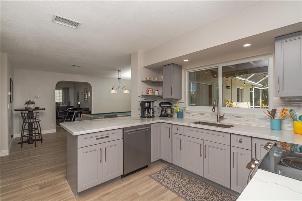 Outside deceiving, inside believing! ON a scale from 1 to 10 this is a 12! From the moment you enter you are greeted with vaulted ceilings and lots of natural sunlight. This spectacular home is upgraded to the max with the highest quality finishes. The kitchen boasts gorgeous solid wood gray cabinetry with stunning quartz counters, stainless steel appliances, high hat lighting and no popcorn ceilings! Need an office/den you have that too. Main living areas have porcelain plank tiles, and newer windows throughout the home. New roof June 2020. Did I mention the oversized roofed and screened pool and patio, perfect for entertaining and celebrating! Walk to the Hiatus Greenway that connects to Markham Park. No HOA!