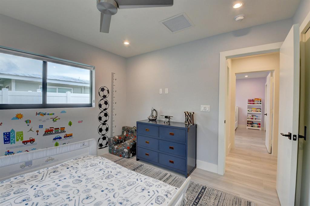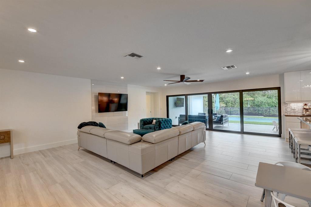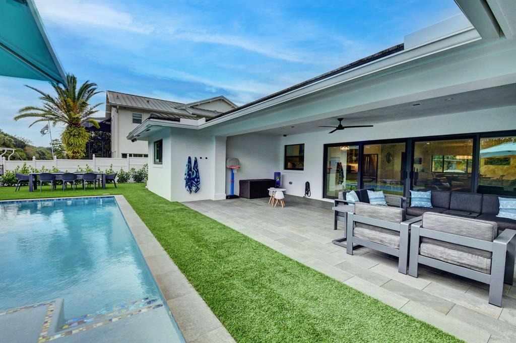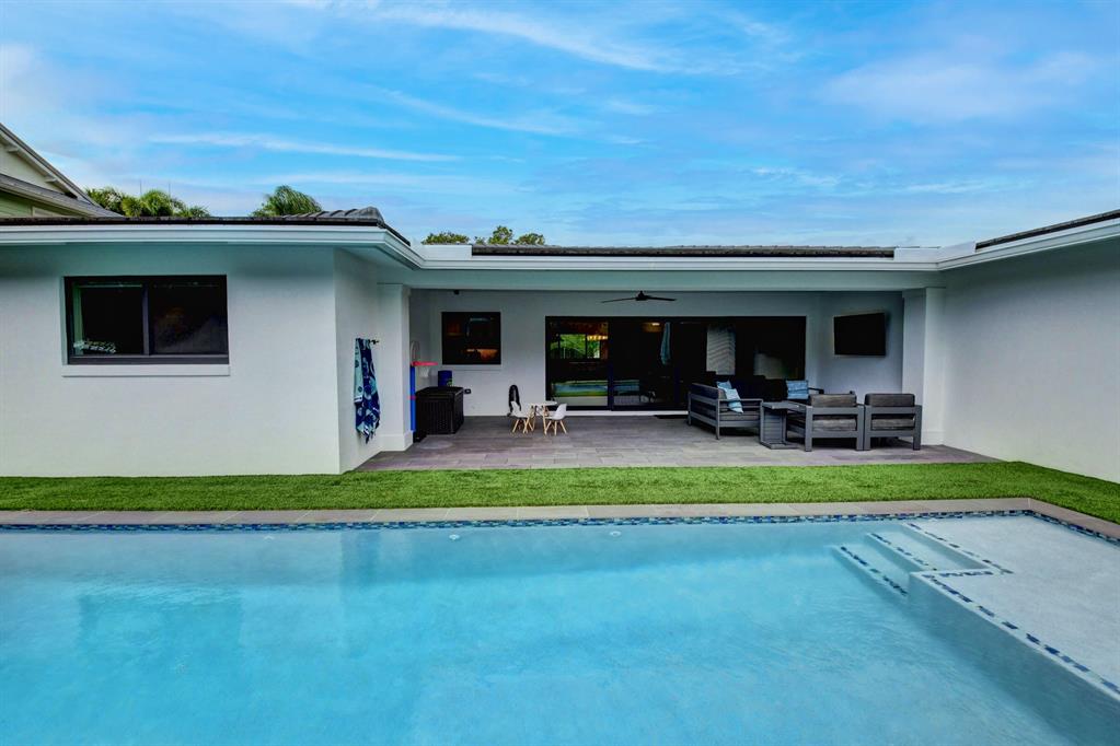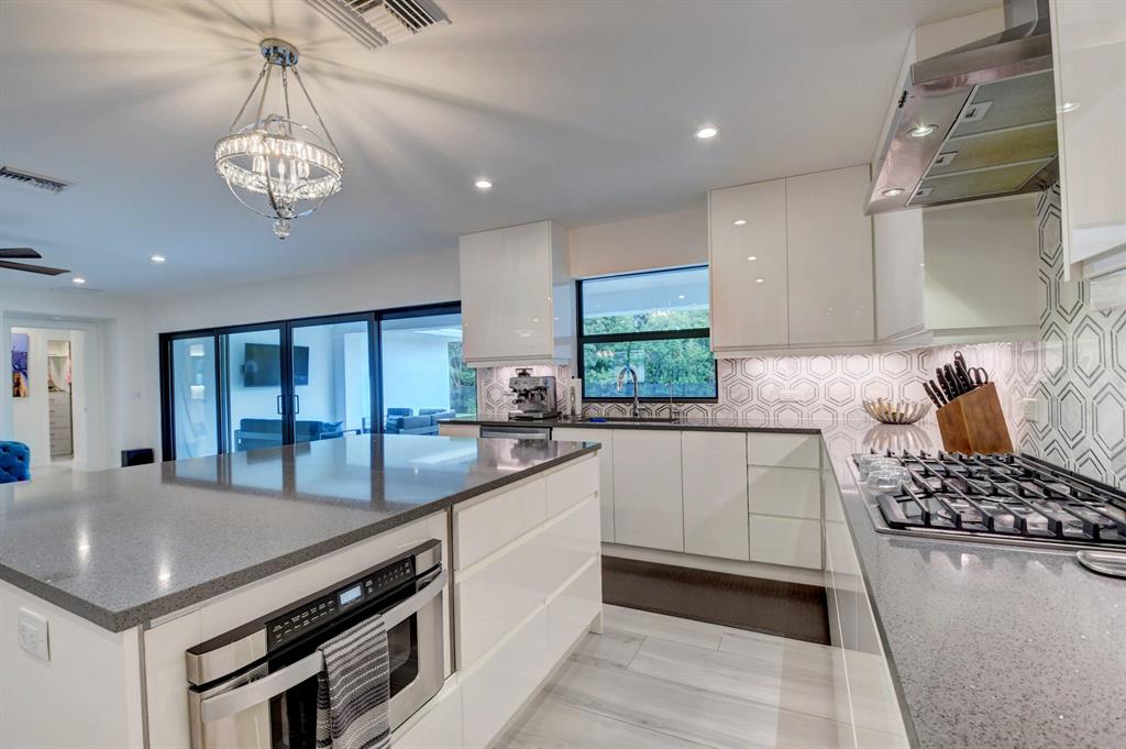 Completely customized and rebuilt in 2019, you will fall in love from the moment you walk into this open, light, bright, modern home. This 4/3.5 plus den pool home overlooks the El Rio waterway that leads to ocean access. The new approximate 40 foot composite dock with a raised, reinforced retaining wall is perfect for any boater. The nature preserve across the waterway provides privacy, as well as, attracts lots of birds and wildlife to enjoy watching from your backyard or large covered patio. The island kitchen offers European white cabinetry to the ceiling with soft close and glass doors, quartz countertops with a marble backsplash. The floor plan is a 3-way split with the master bedroom on the back of the house overlooking the waterway.