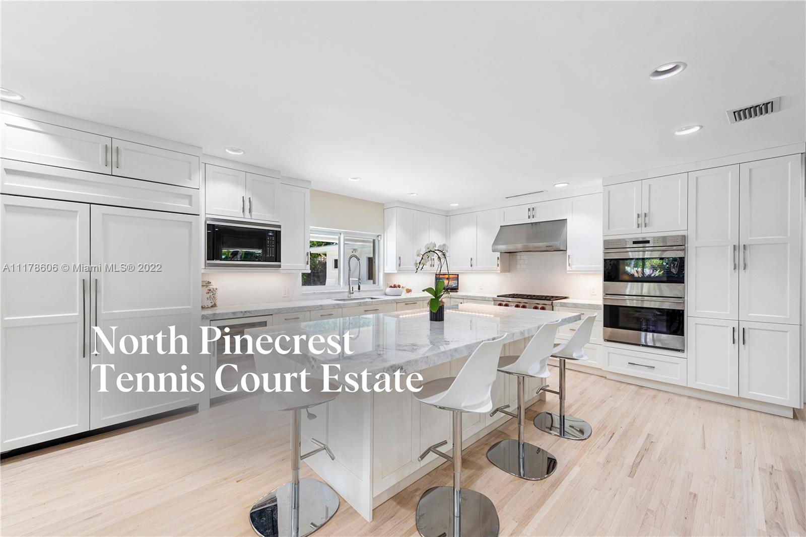Paradise found in prime Northeast Pinecrest! Enter this gated one-of-a-kind Key West style acre home on a tranquil street w/magnificent oak trees, royal palms & bismarck palms. 3,534sf encompasses the best of South Florida lifestyle complete w/ sparkling heated pool & professional Decoturf II tennis court w/ pickleball markings. Home features light & bright open kitchen by Trimline, Wolf & Sub-Zero appliances, gas cooktop, quartzite countertops & Shaker cabinetry. Ideal layout for families w/ guest wing & office. Owner’s suite includes quartzite bathroom. All impact windows & doors, metal roof, PVC plumbing, 2 car garage, tankless water heater & underground electric. Located within blocks of some of South Florida’s best schools (Pinecrest Elem, Gulliver & Palmetto). The list goes on & on.
