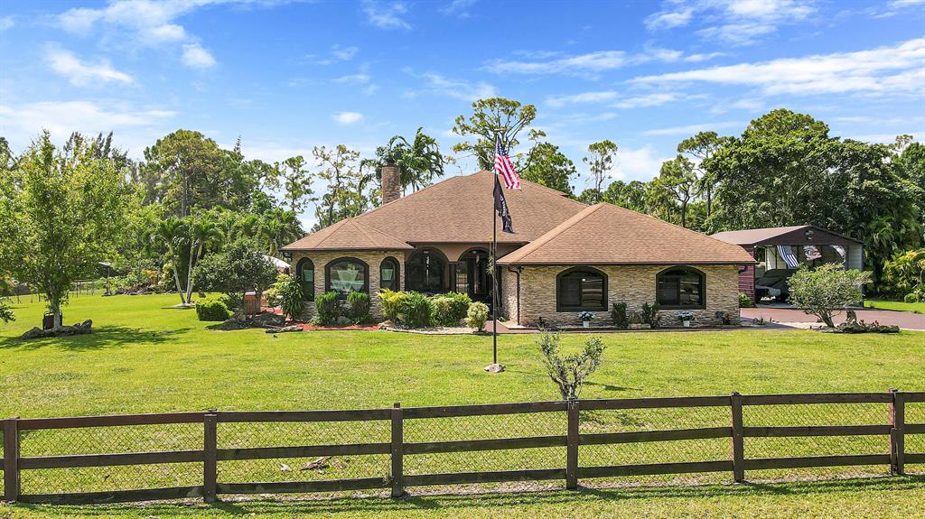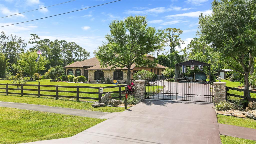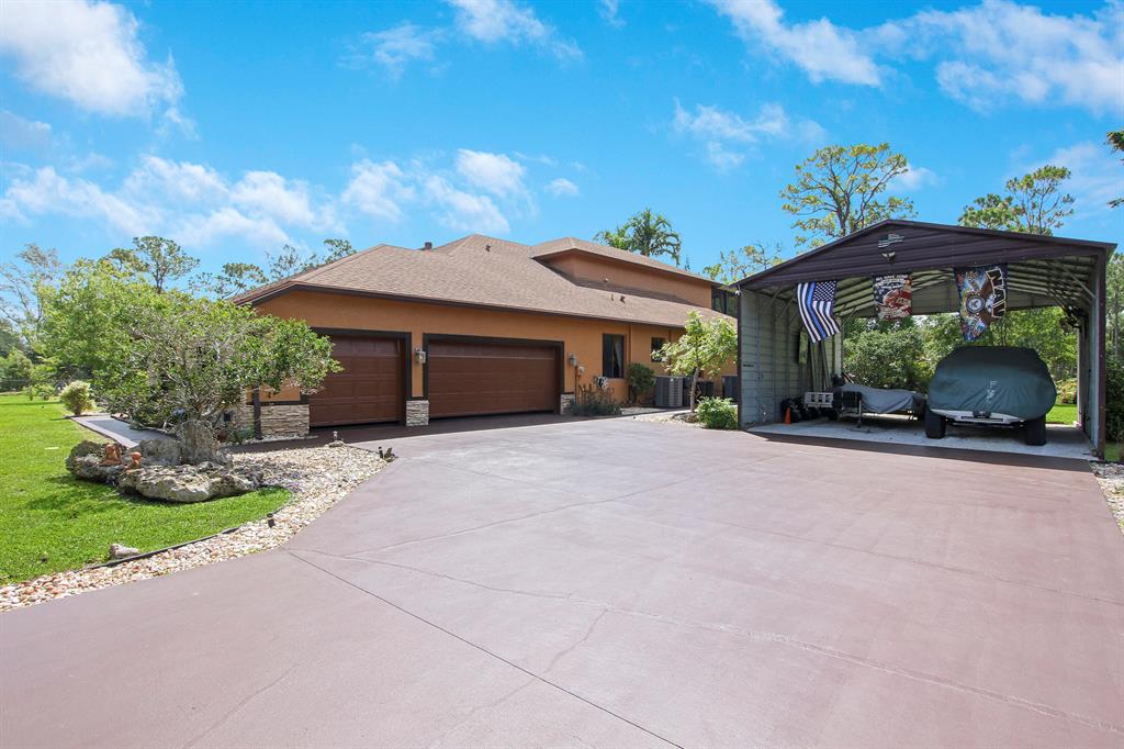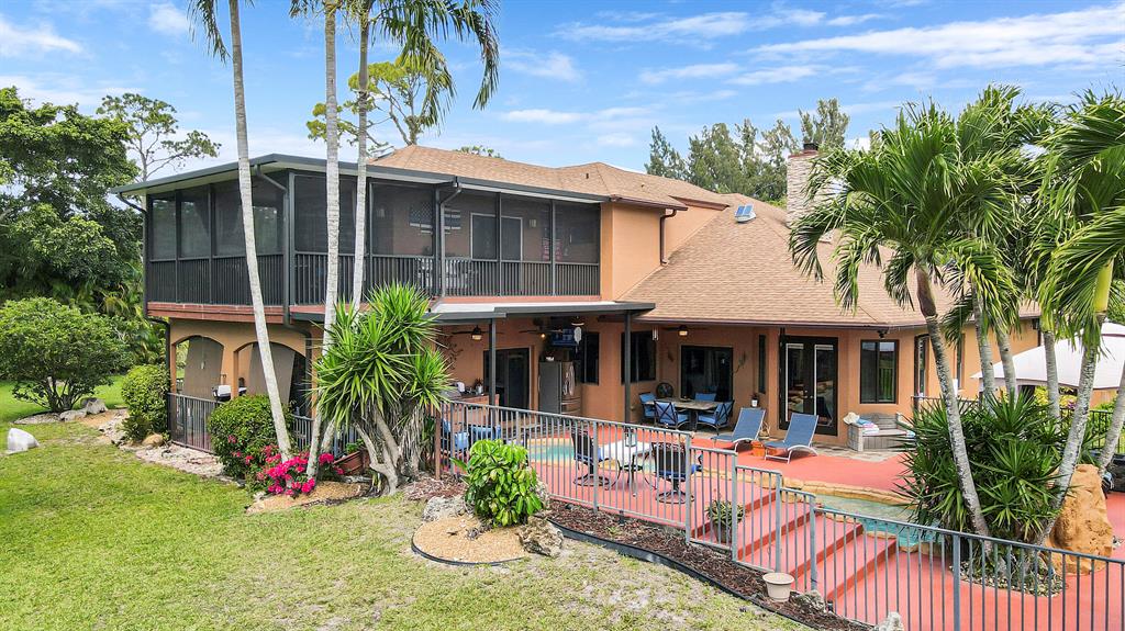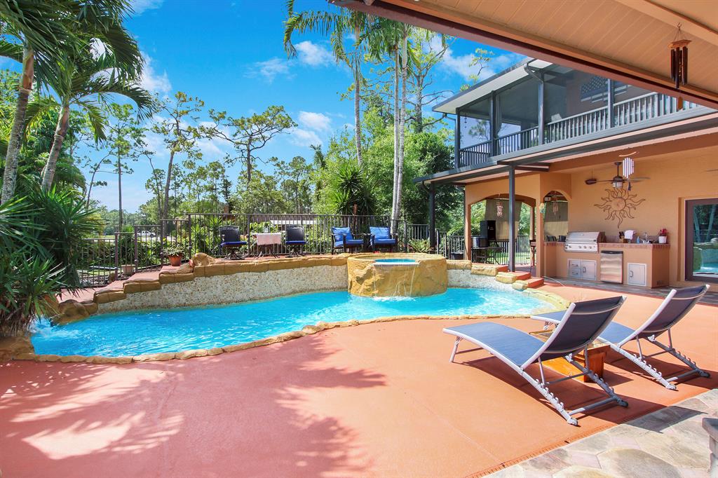 Custom built 2007 estate home located on a privately paved street sitting on 1.15 acre lot. Home boasts 4 Bedrooms, 4 full Bathrooms, Office, and second floor Rec Room. The backyard features a large salt water pool, a 5 person spa, and waterfall with it's own outdoor kitchen! The property is completely fenced in with front automated entry gates. The house has a generator, 1000 gallon propane tank, 2 newer 16 SEER A/C units, and impact windows and doorways. You will have plenty of space for your toys with a 3 car garage (30' X 33'), boat house with electricity, and a long driveway that can accommodate many vehicles. What makes this home so special and relaxing is the stone work, fireplace and the sound of waterfalls coming from the front porch and backyard pool.