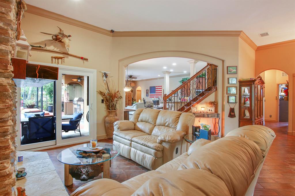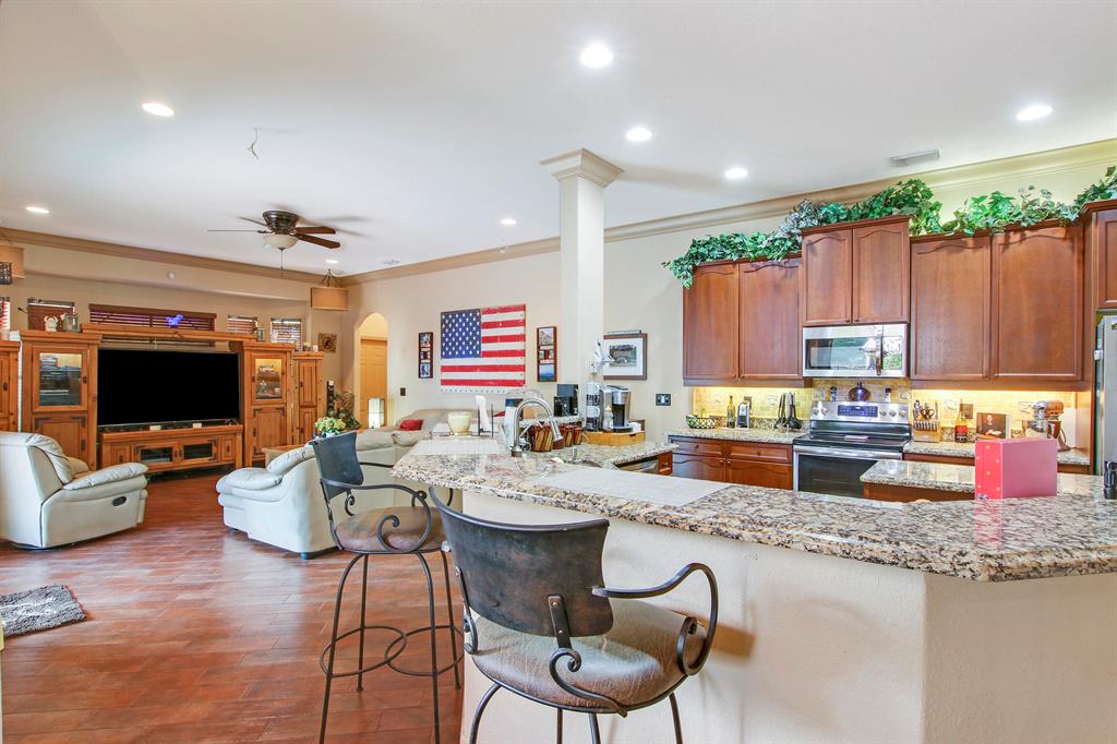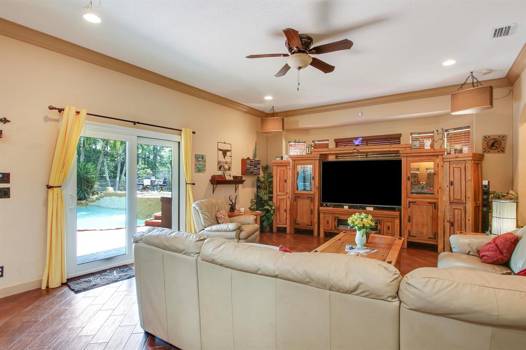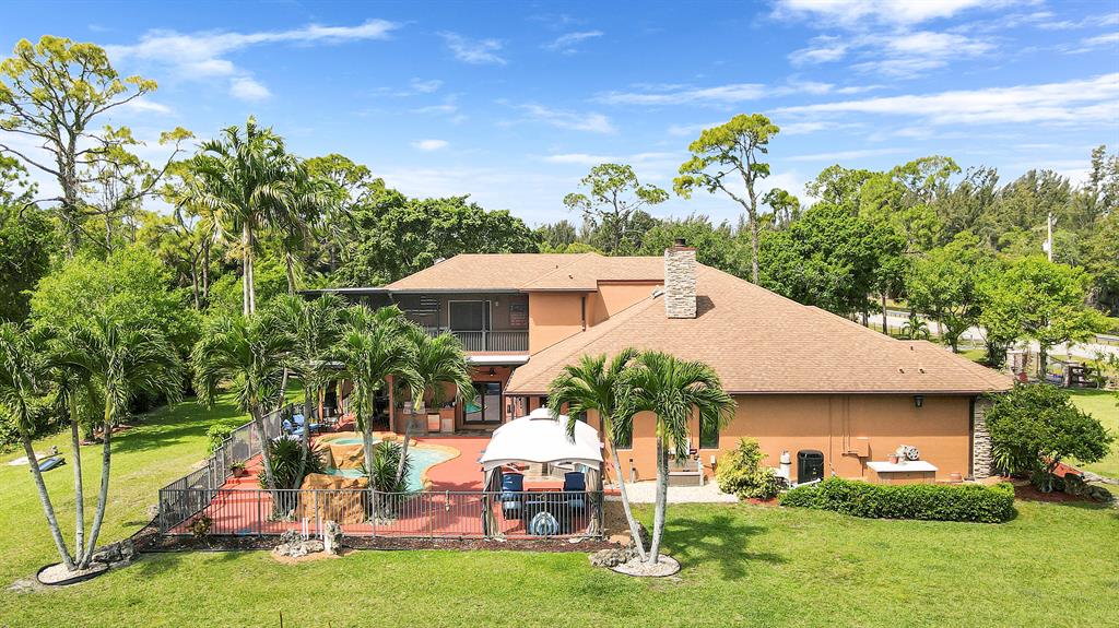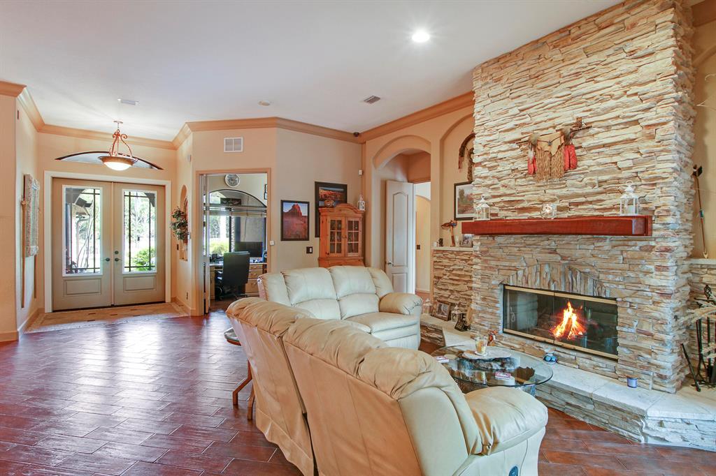 Custom built 2007 estate home located on a privately paved street sitting on 1.15 acre lot. Home boasts 4 Bedrooms, 4 full Bathrooms, Office, and second floor Rec Room. The backyard features a large salt water pool, a 5 person spa, and waterfall with it's own outdoor kitchen! The property is completely fenced in with front automated entry gates. The house has a generator, 1000 gallon propane tank, 2 newer 16 SEER A/C units, and impact windows and doorways. You will have plenty of space for your toys with a 3 car garage (30' X 33'), boat house with electricity, and a long driveway that can accommodate many vehicles. What makes this home so special and relaxing is the stone work, fireplace and the sound of waterfalls coming from the front porch and backyard pool.