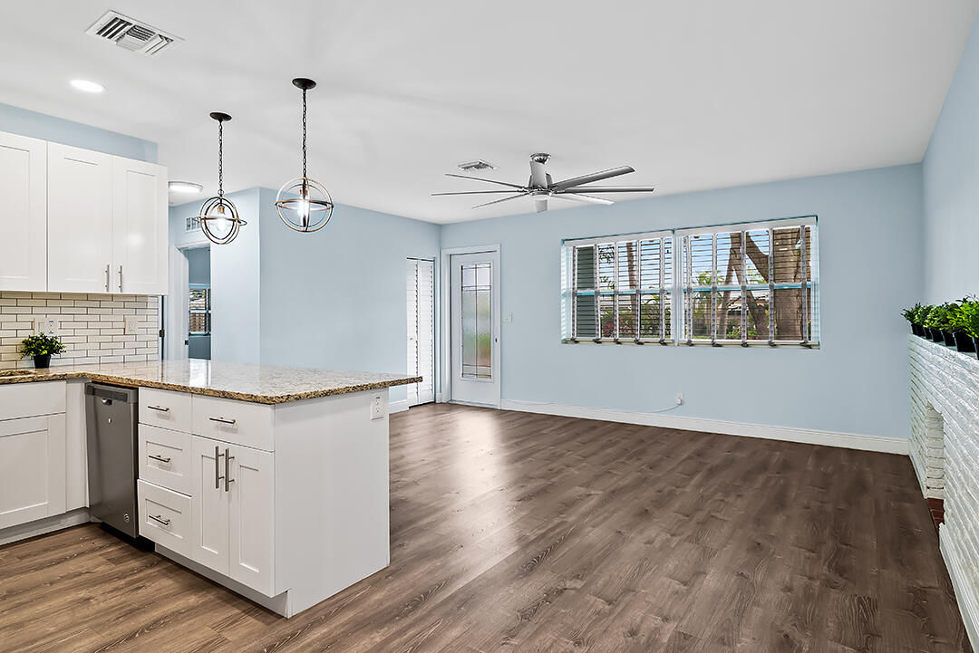 Totally updated 3 bedroom/2 bath bungalow in West Palm Beach's most sought after neighborhood. This CBS home has impact windows, 1 car garage, split floor plan, brick fireplace, & character galore. TWO huge living areas with tons of windows for great sunlight. Modern, open kitchen has granite counters, tile backsplash, soft-close white shaker cabinets, stainless appliances & seating for 3 at the breakfast bar. Each bath has frameless glass shower, single vanity, lots of storage, plus updated fixtures & flooring. 2019 AC. Tankless H2O heater. Nest. Ring. Beautifully manicured lawn with lush grass, mature fruit/Palm/Poinciana trees. This charming home is just 2 blocks to Intracoastal & steps to South Olive Park ballfields, playgrounds, tennis, racquetball & splash pad. A-rated school. No HOA