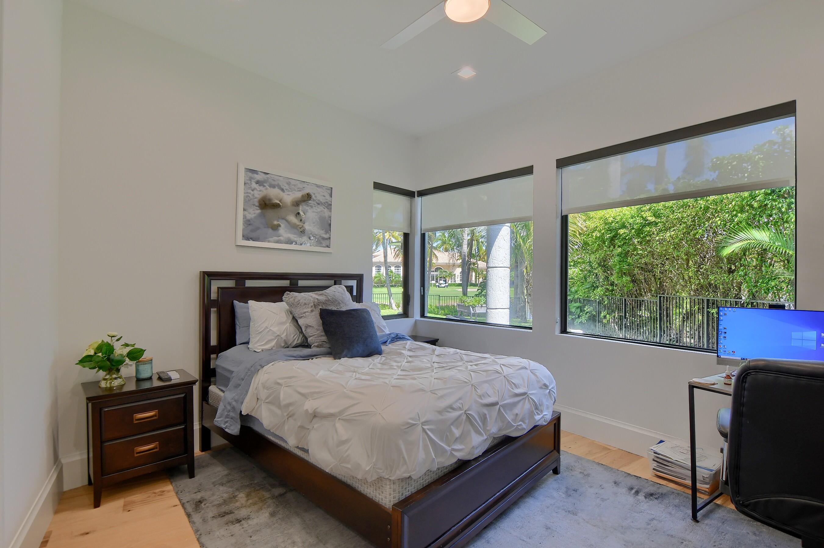 Completely remodeled contemporary estate on one of the nicest lots in Boca Grove. Enjoy this 4BR/4.5 bath home + home theater room with 270 degrees of golf and lake views on a pie shape lot. Open floor plan with spectacular wood floors throughout. Custom kitchen with GE Monogram professional appliances, 3 ovens, gas cooking, warming drawer, walk in pantry and ability to add a second dishwasher and double sink(if needed). Spacious master with a home gym, enormous closet space and spectacular bathroom with his and her toilets. Cozy home theater with projector and screen. Too many other high end details to mention from electric window treatments, to a beer tap in the bar, to a TV in the master bathroom mirror. Outdoor space includes built in summer kitchen, 2 under cover seating