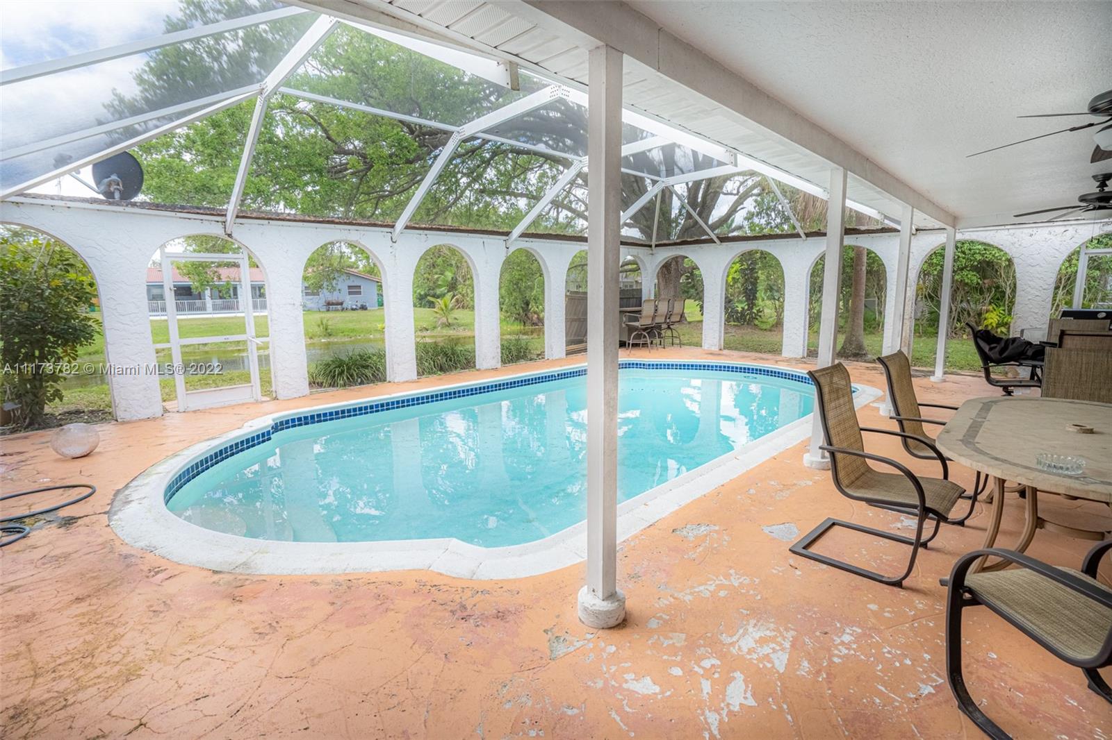 HAVE BOTH WORLDS SERENE CANAL VIEWS FROM THE BACK OF THE HOUSE & ENDLESS GOLF COURSE VIEWS FROM FRONT. HOME FEATURES- 4 BEDRS 2 BATH POOL HOME ON OVER A 1/3 OF AN ACRE. SPACIOUS OPEN FLOOR PLAN TRIPLE SPLIT BEDR PLAN, TILED THRU-OUT IN NEUTRAL COLOR, TEXTURED WALLS, RECESSED LIGHTING, WHIRLPOOL TUB IN 2ND BTH, KITCHEN UPDATED WITH CUSTOM WOOD CABINETS, GRANITE COUNTERS & PASS THRU SERVING BAR FOR OUTDOOR ENTERTAINING, SCREEN IN PATIO OVERLOOKING THE LAKE. NO ASSOCIATION APPROVAL READY TO MOVE IN. Tenant in place till June 1, 2022