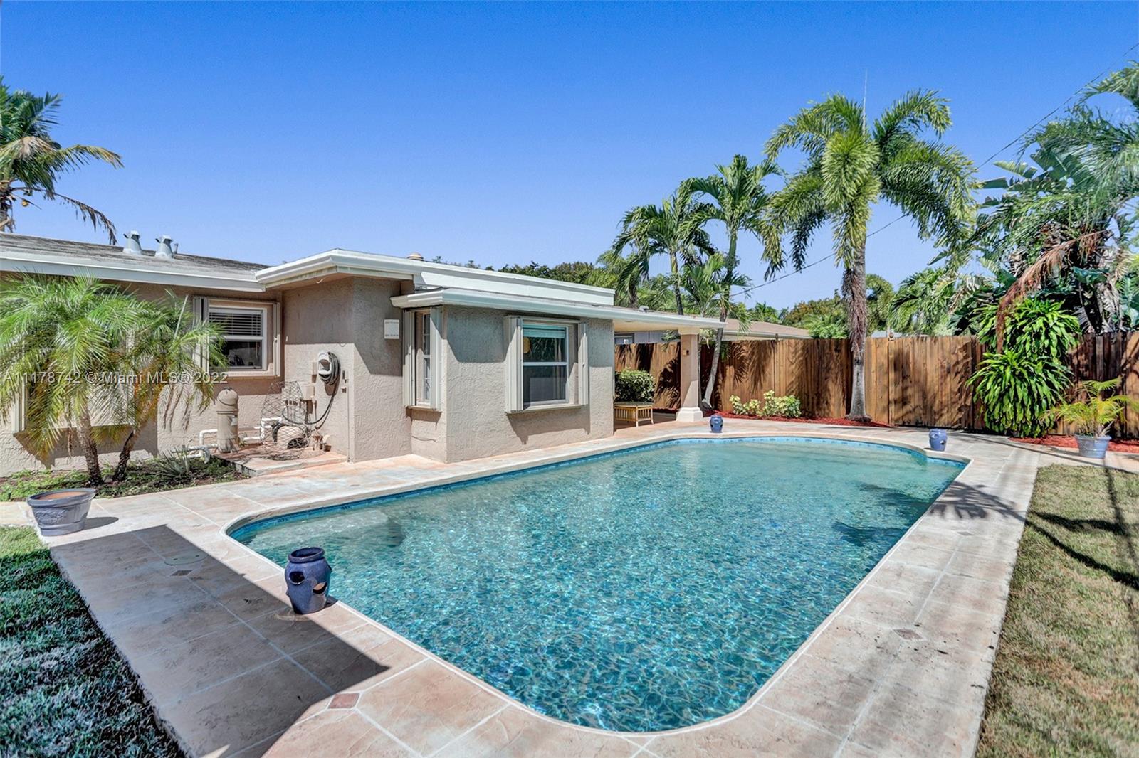 Every day is a beach day at highly sough after Imperial Point! Amazing opportunity & excellent entry price point for one of the the beach communities in the heart of Ft. Lauderdale. Minutes from beach, ocean, shopping, restaurants & entertainment. NO pet or rental restrictions, fantastic for Air B & B. Great for families, top rated school district & steps from Pink Park. Open kitchen with Art-Deco-style cabinetry with recessed hi-hats. Tile flooring throughout, Large laundry room with washer/dryer. Spacious Master bathroom with beautiful pool views. Hurricane accordion shutters, circular stamped concrete driveway, attached garage, tile covered patio, spacious fenced patio, pool deck. Perfect outdoor space for entertaining & parties. Side gate-enclosed parking for your boat or extra vehicle
