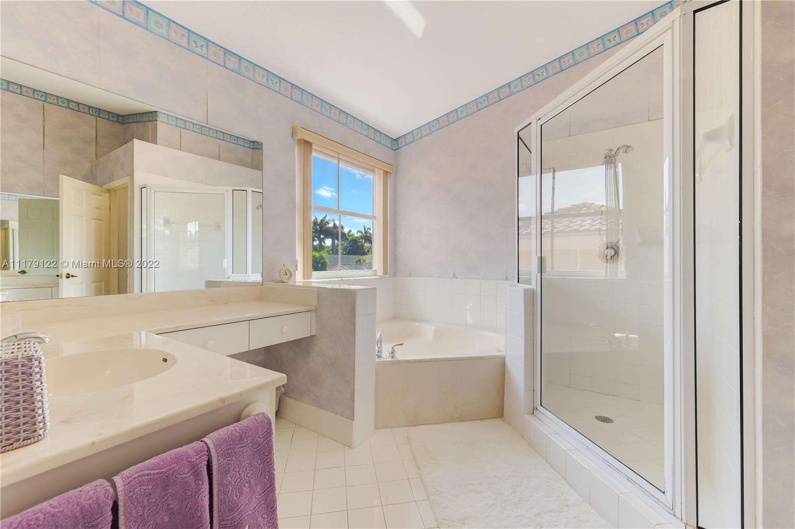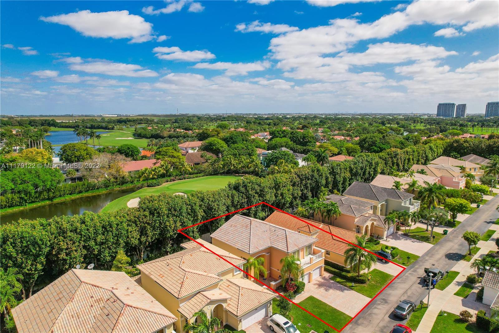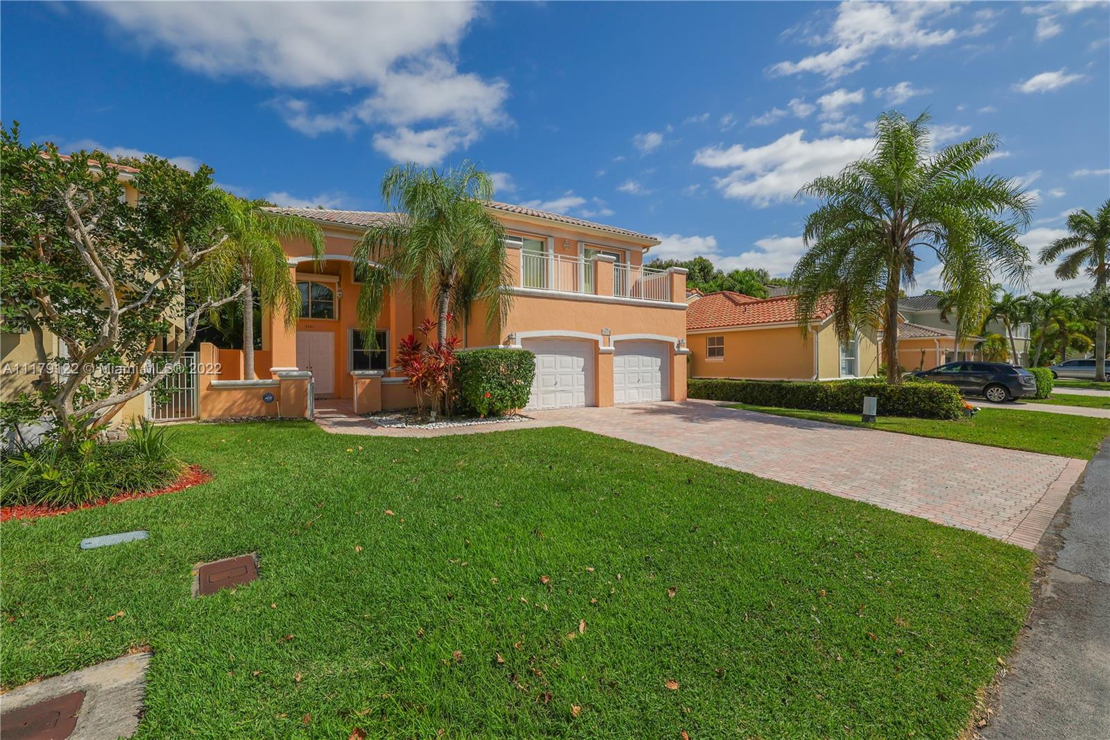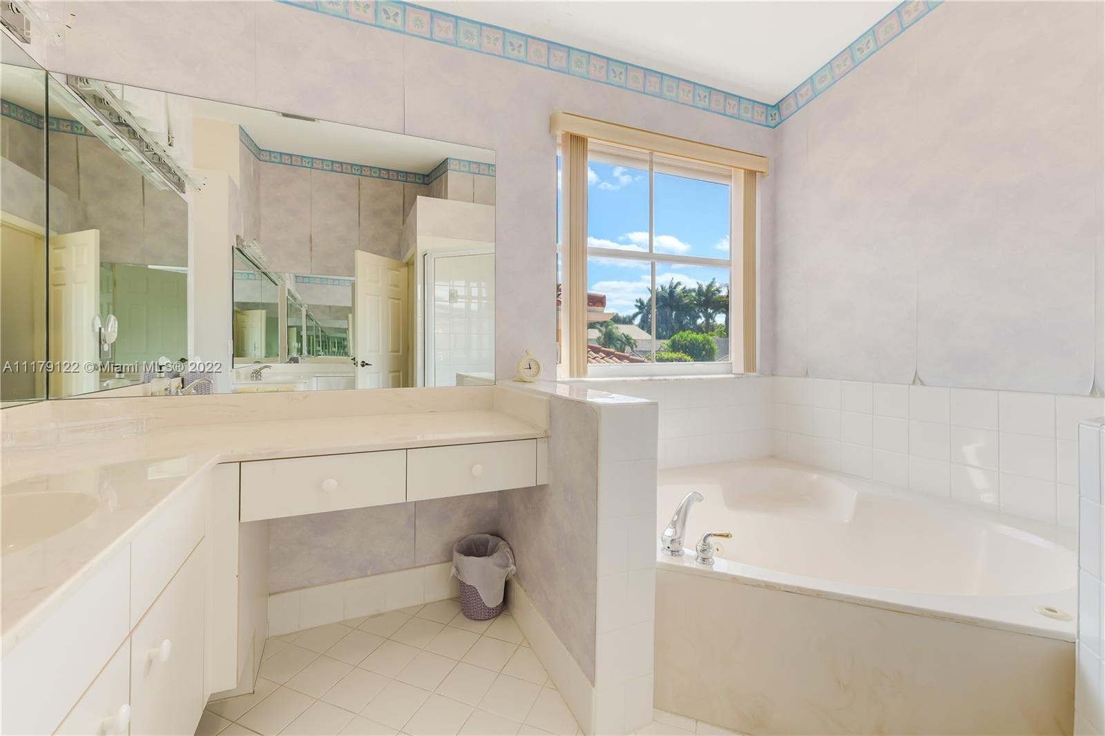 DEN/OFFICE 12FTX10FTX8FT EASY TO CONVERT TO A 4TH BEDROOM. Doral at it's best. Rarely available 2 story single family home located in exclusive gated Goldvue Estates. Property features Volume ceilings throughout living areas and kitchen. Master bedroom boasts spacious built in closets, with Roman tub, double vanities. Laundry room with cabinets & lots of storage space, two car Garage with Tesla car charging outlet outside. Accordion shutters throughout. Tankless water heater. Top of the line washer & dryer. Backyard Patio faces golf course. Gate guard and 24hr security, community pool, kids' playground, walking distance to school, Publix, Walgreens and close to major highways.