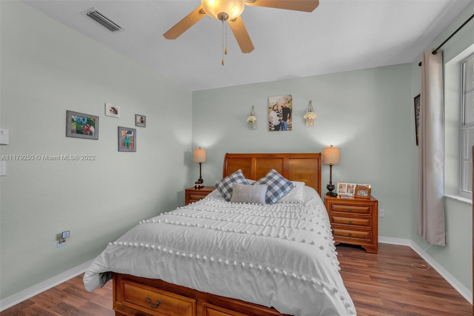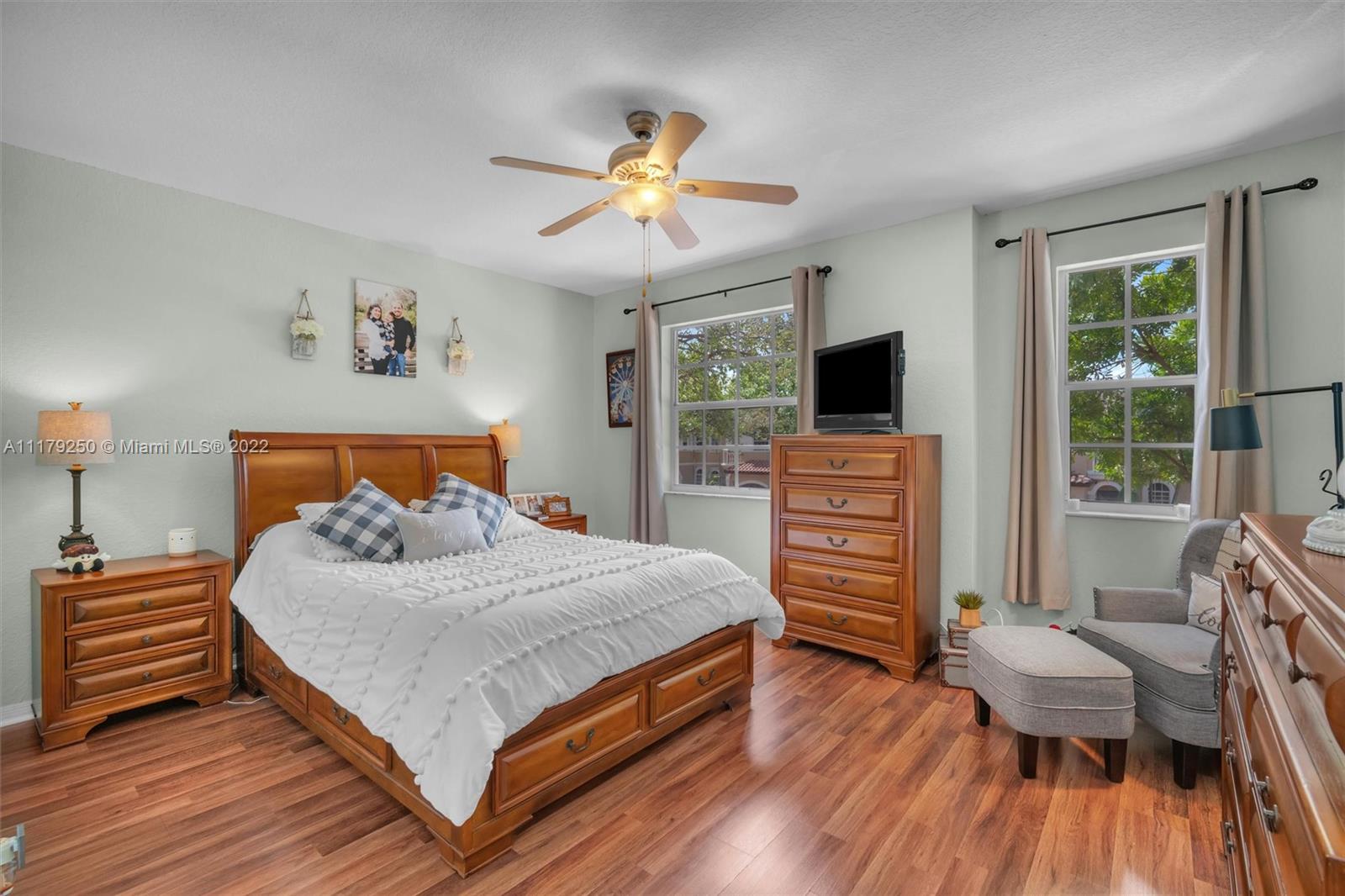Beautiful Two-Story Townhouse in Elegantly Manicured Bellagio at Vizcaya Gated Community. Meticulously Care For Home features Excellent Space Distribution... Downstairs finds Entryway and Mudroom Closet, Living Room, Dining Room, Family Room, Kitchen, Separate Laundry Room and Guest Half Bathroom. Sliding Doors open to Relaxing, Private Patio Space, overlooking grassy meadow... Wood Floor Staircase Leads to all Bedrooms Upstairs... Ample Sized Master Bedroom with En-suite Master Bathroom. Two Additional Guest Bedrooms and Second Full Bathroom. 1 Car Garage, plus 2 Additional Driveway Spaces. Hurricane Panels for all Windows & Doors. Low HOA fees includes Security, Lawn Maintenance, Community Clubhouse, Community Pool, Kids Playground, and more!