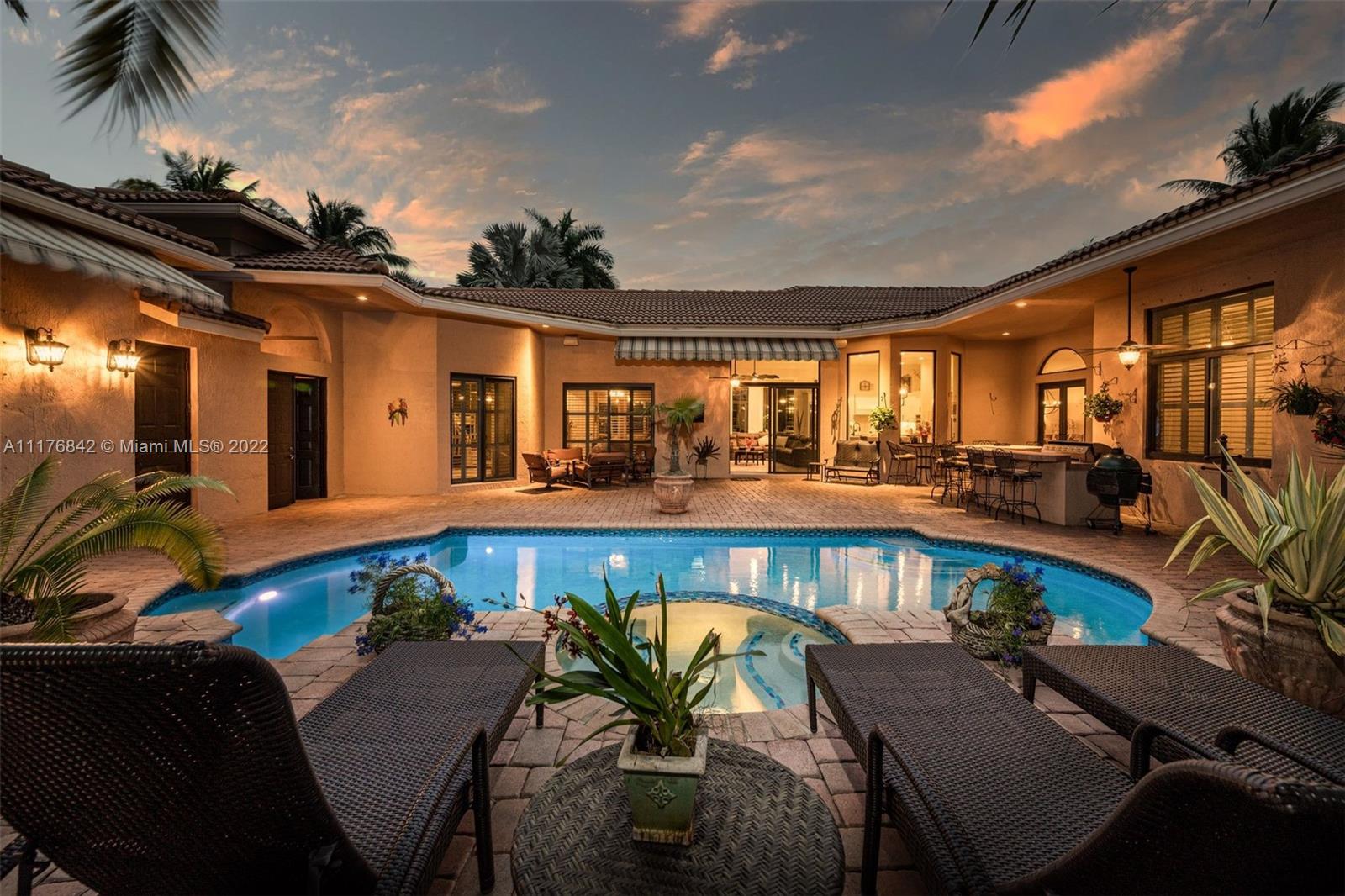 Price just adjusted! this stunning court-yard house in most desirable Victoria Isle in Weston Hills Country Club. Featuring 3 BR & 2.5 baths, plus 1 BR & 1 bath in guest house/casita. Total 4BR/3.5bth. With 3687 SF living area & 5097 SF total built, 3 car garage. Through a lush landscaping the main door leads to the crown jewel pool area with splendid garden and direct access to family and living room and all bedrooms. Recent updgrades include: new gourmet chef's kitchen with Monogram GE appliances, refrigerator, double oven wall w/warmer drawer, custom made cabinetry, quartz oversize counters tops, coffee station w/water filter & hurricane high impact glass in all windows and doors & pool heater. Marble floors throughout, laminated wood floors in bedrooms, all Plantation shutters & more.
