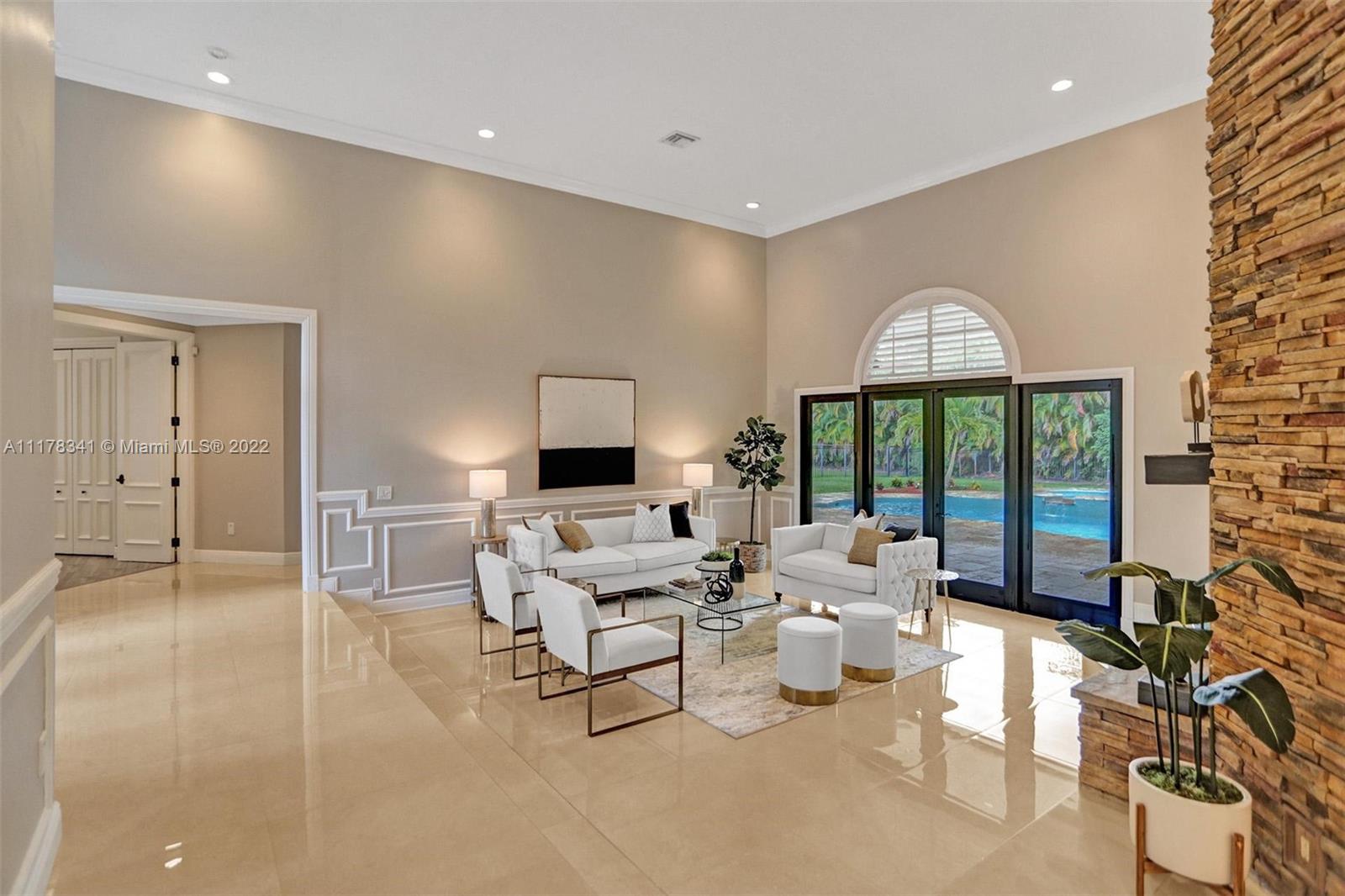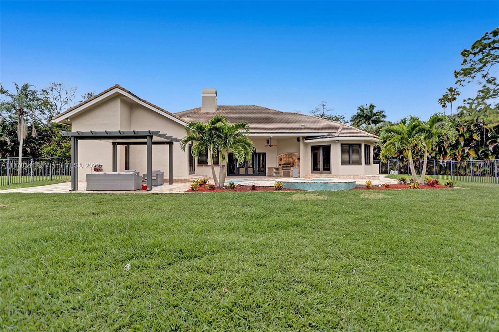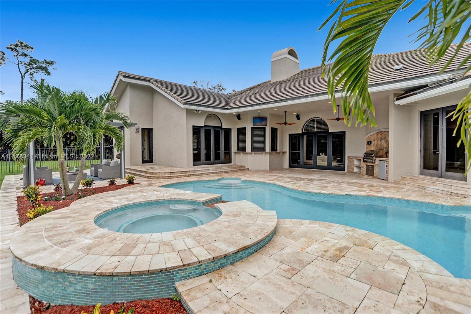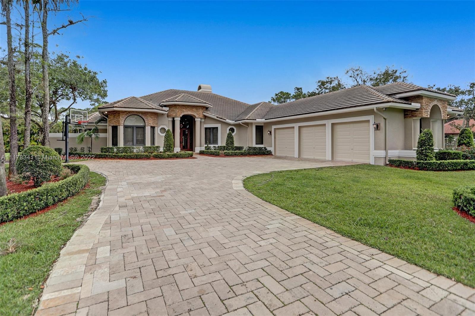This Beautifully maintained sprawling 1.17 Acre estate is the epitome of Comfort and Style. This home Has Spacious Interior and Exterior spaces. 5 bedrooms, 3.5 Bathrooms, 3 car garage, High Ceilings, Impact windows and doors, Newer 3 Zone A/C units. Gourmet kitchen with Stainless Steel Appliances, Granite countertops and Custom cabinetry and wet bar, a Grand floor to ceiling stone fire place, Beautiful moldings and built in's throughout, Freshly Painted inside and out. New 32x32 tile in main living areas and New laminate wood floors in all bedrooms. Large Laundry room. Inviting outdoor kitchen and perfect entertaining space under the brand new Pergola overlooking your refreshing heated salt water pool. Pool recently retiled and diamond brite finished.