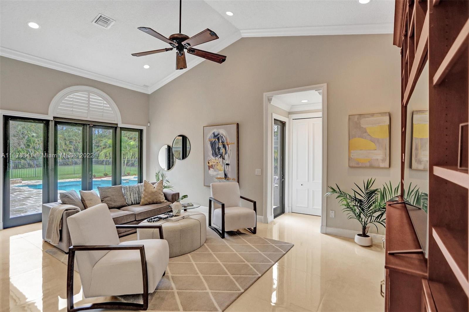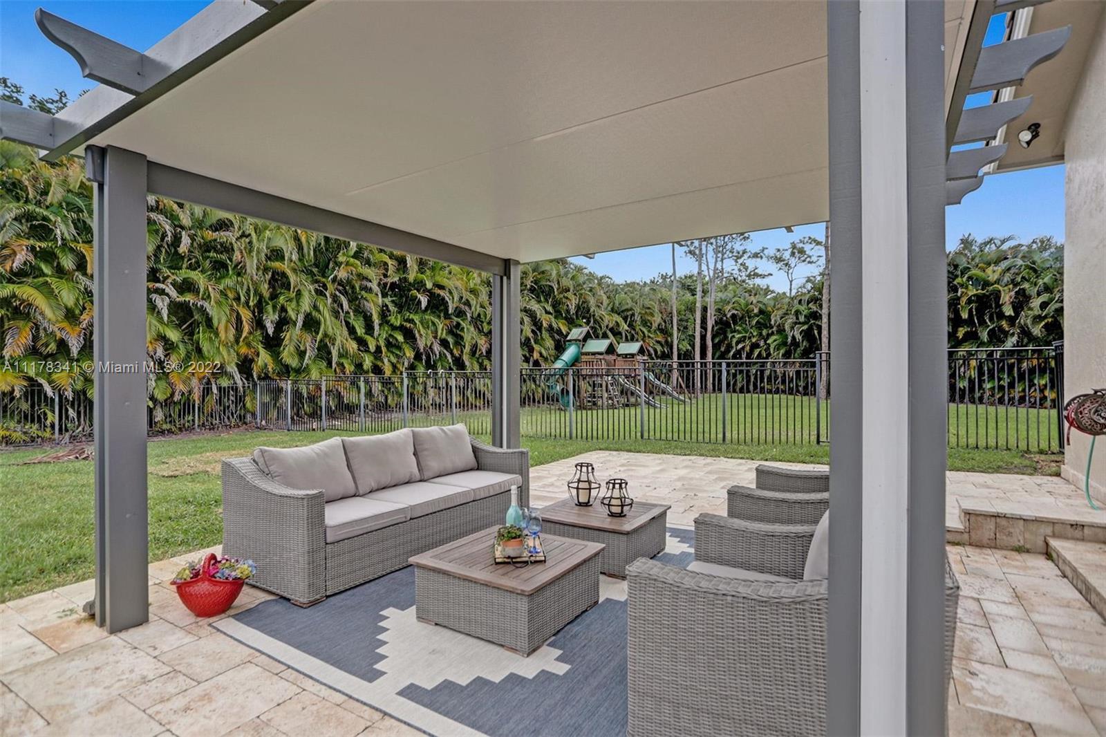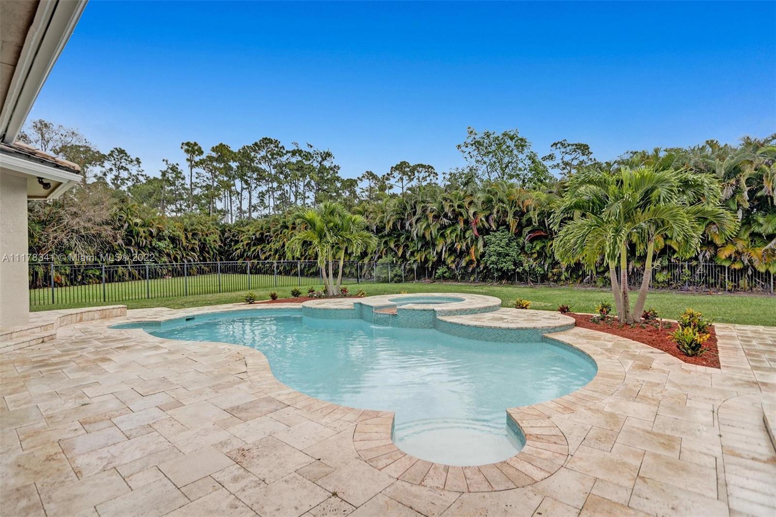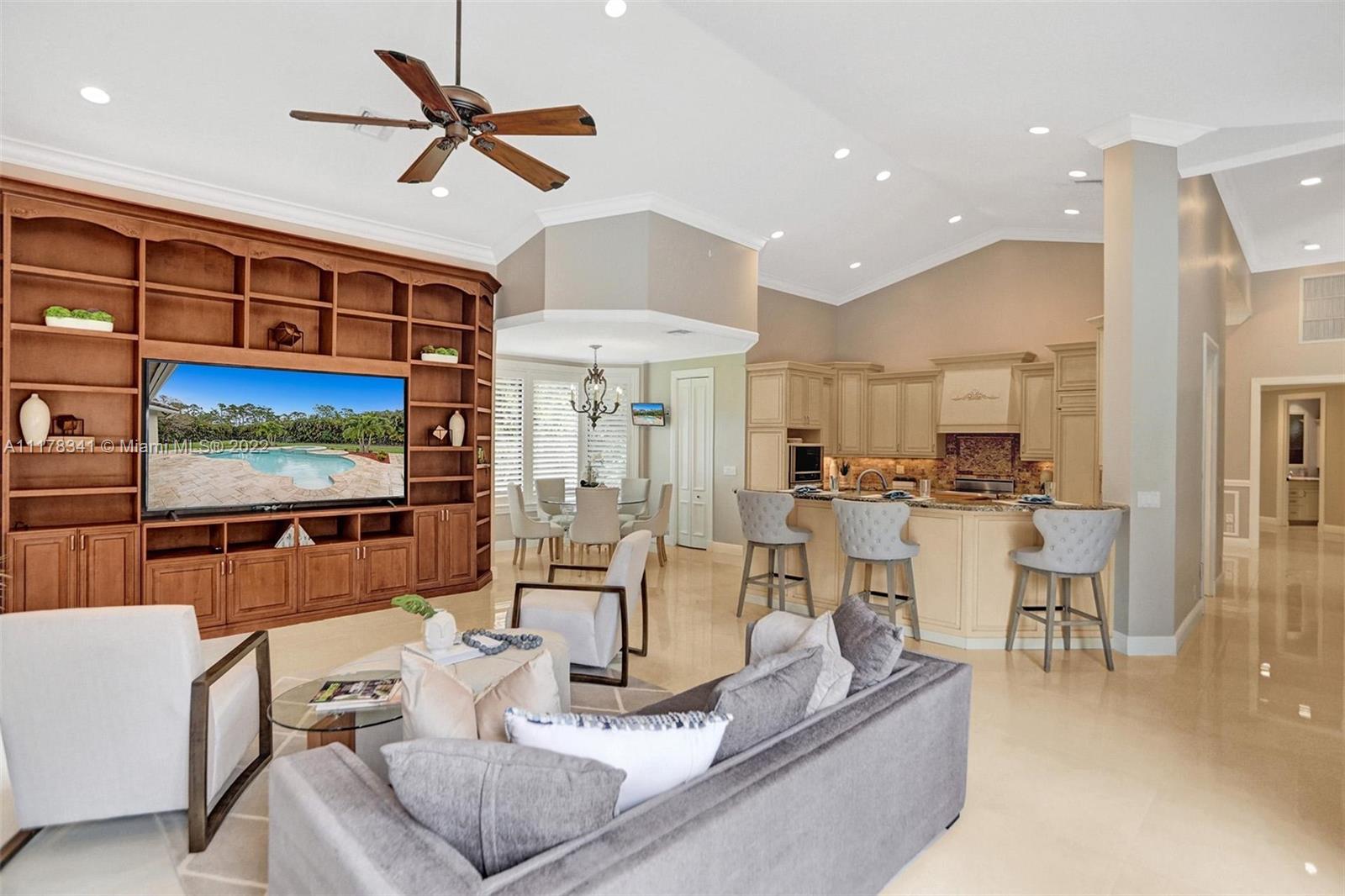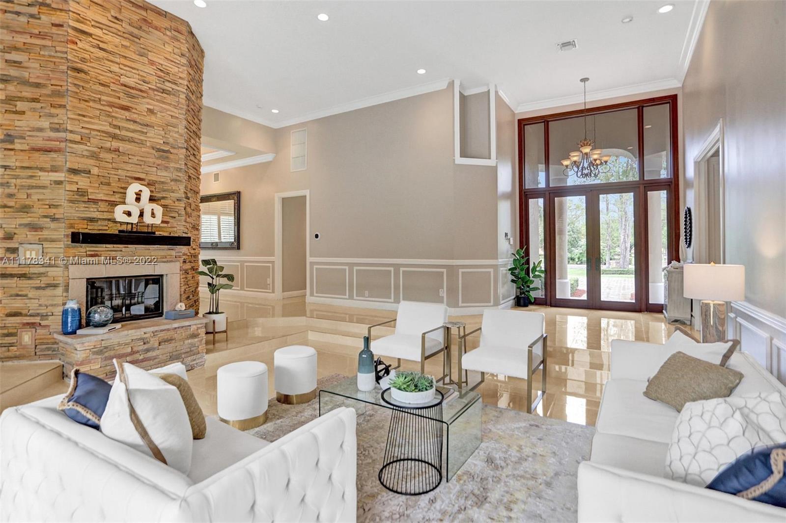 This Beautifully maintained sprawling 1.17 Acre estate is the epitome of Comfort and Style. This home Has Spacious Interior and Exterior spaces. 5 bedrooms, 3.5 Bathrooms, 3 car garage, High Ceilings, Impact windows and doors, Newer 3 Zone A/C units. Gourmet kitchen with Stainless Steel Appliances, Granite countertops and Custom cabinetry and wet bar, a Grand floor to ceiling stone fire place, Beautiful moldings and built in's throughout, Freshly Painted inside and out. New 32x32 tile in main living areas and New laminate wood floors in all bedrooms. Large Laundry room. Inviting outdoor kitchen and perfect entertaining space under the brand new Pergola overlooking your refreshing heated salt water pool. Pool recently retiled and diamond brite finished.