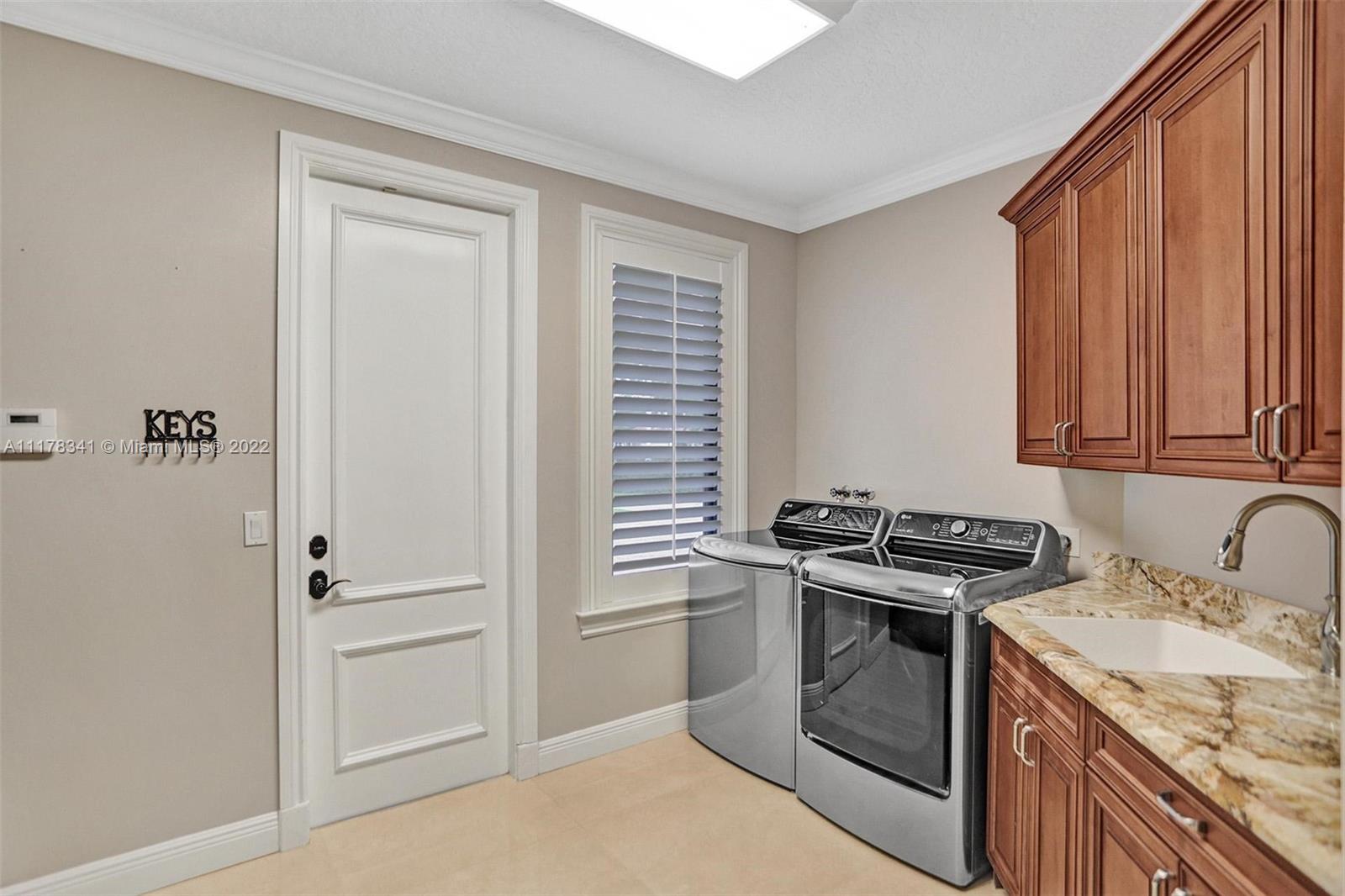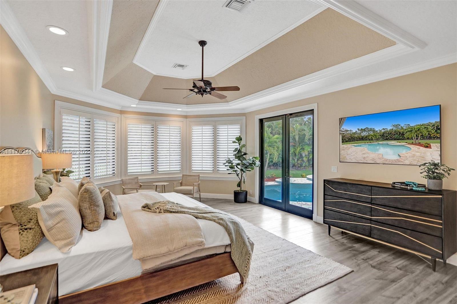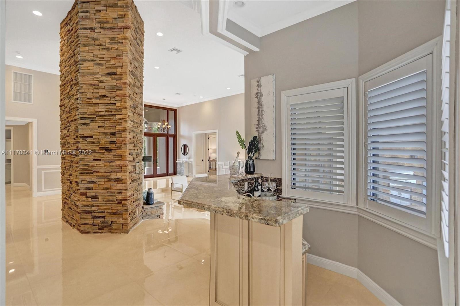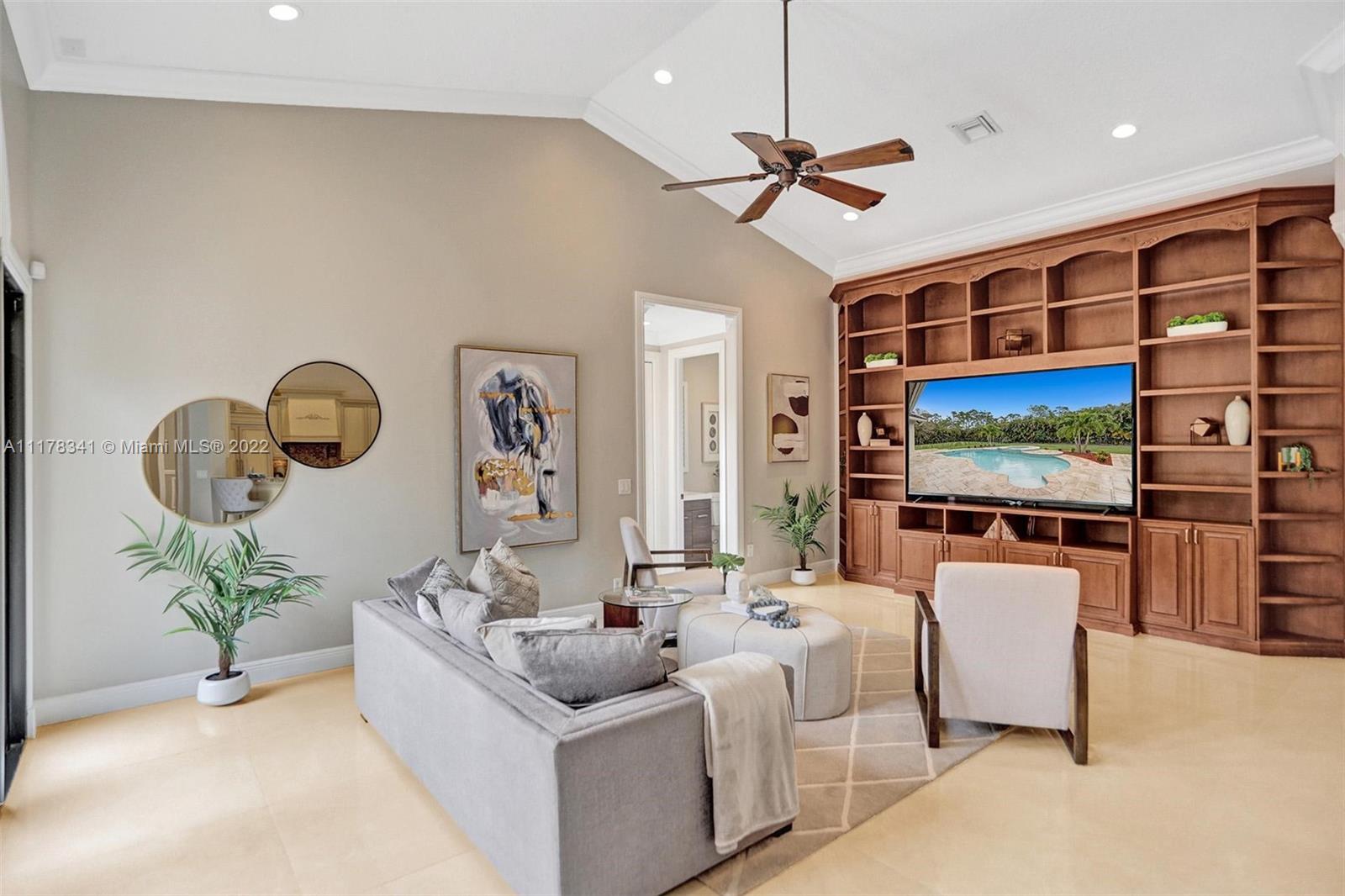 This Beautifully maintained sprawling 1.17 Acre estate is the epitome of Comfort and Style. This home Has Spacious Interior and Exterior spaces. 5 bedrooms, 3.5 Bathrooms, 3 car garage, High Ceilings, Impact windows and doors, Newer 3 Zone A/C units. Gourmet kitchen with Stainless Steel Appliances, Granite countertops and Custom cabinetry and wet bar, a Grand floor to ceiling stone fire place, Beautiful moldings and built in's throughout, Freshly Painted inside and out. New 32x32 tile in main living areas and New laminate wood floors in all bedrooms. Large Laundry room. Inviting outdoor kitchen and perfect entertaining space under the brand new Pergola overlooking your refreshing heated salt water pool. Pool recently retiled and diamond brite finished.