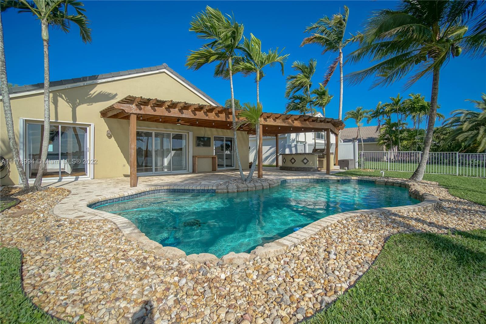 THIS IS IT! One of a kind 3 bed 2 bath single family home with an AMAZING FULL-LENGTH VIEW OF KEYSTONE LAKE! Upgraded kitchen w/ QUARTZ COUNTERS and tons of extra storage. Newer STAINLESS-STEEL appliances. Beautiful TILE THROUGHOUT. BREATHTAKING VIEWS from the main living areas as well as master bedroom. OASIS-LIKE BACKYARD with HEATED POOL, PERGOLA COVERED PATIO and OUTDOOR KITCHEN/BAR for entertaining. VINYL FENCING along the front and sides. The MILE-LONG SCENIC VIEWS of the OVERSIZED LAKE spotlights the most GORGEOUS SUNRISES. Hurricane protection all around. BRAND NEW ROOF! GUARD GATED COMMUNITY with additional gate access near the home. ALL A+ SCHOOLS. Lots of guest parking just steps away. This one won't last! Must go through association approval. SEE BROKER'S REMARKS.