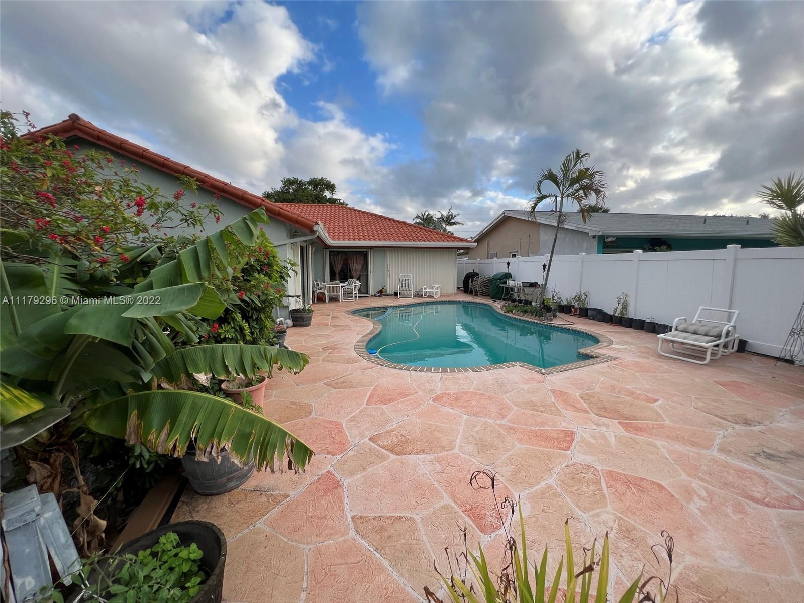 Amazing home with 3 bedrooms and 2 bathrooms, WATER FRONT, 2 car garage and below ground pool in Fort Lauderdale! Bring your boat to your private, 60 foot dock, and get straight to the water with no fixed bridges. This home has a tile roof, great layout, awesome back yard with pool, boat dock, and Fruit tress. The backyard has a beautiful tile patio with below ground pool-Great for entertainment. Home is ready for a new owner. Call For more information-Financing Available.