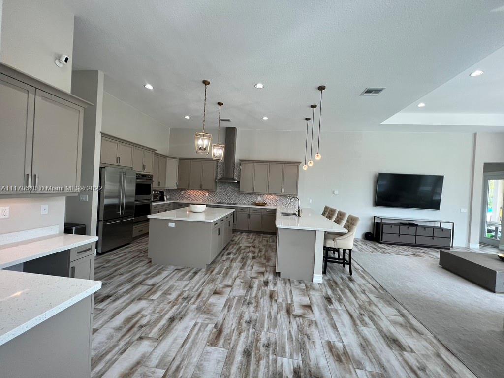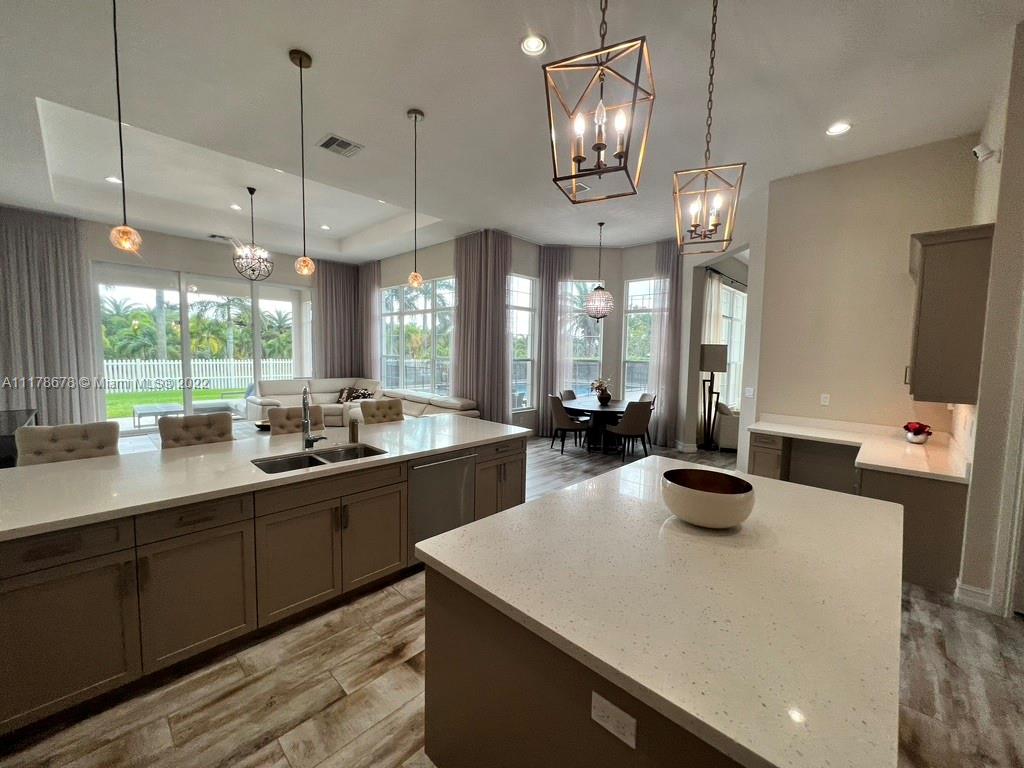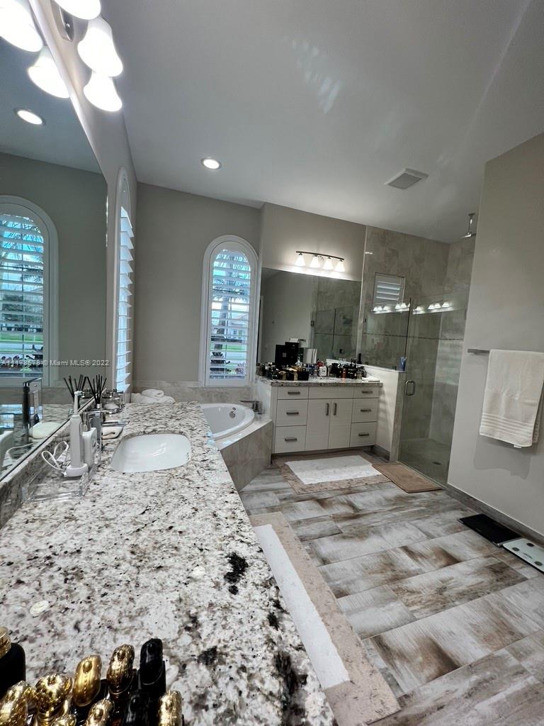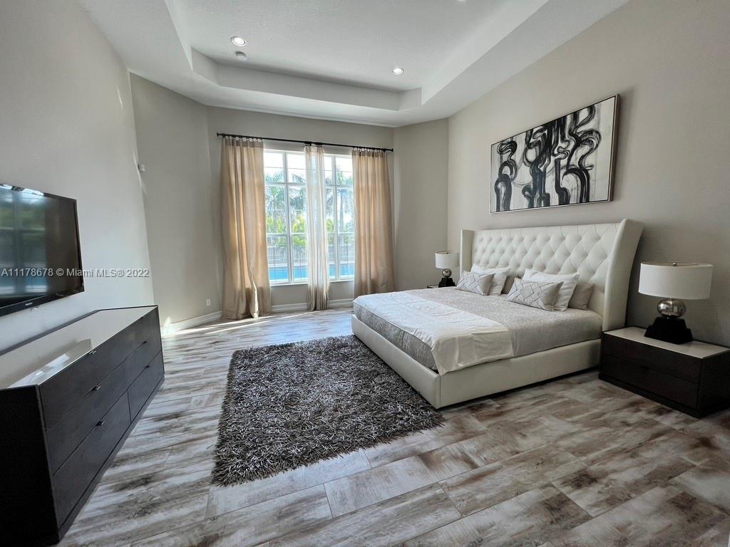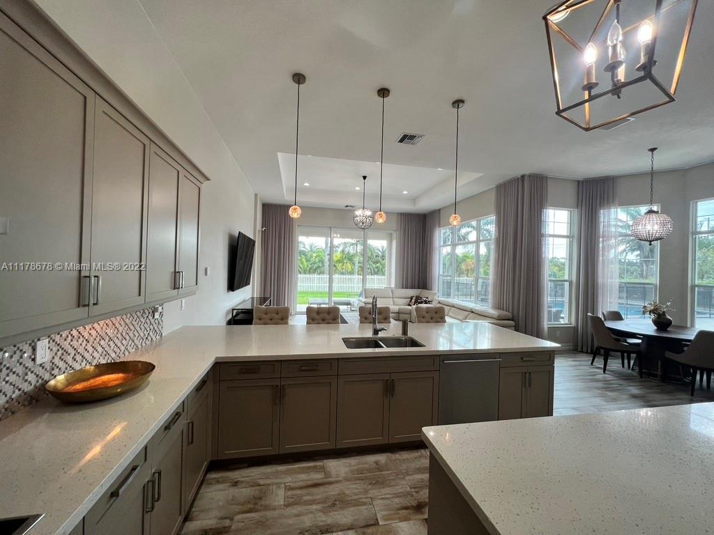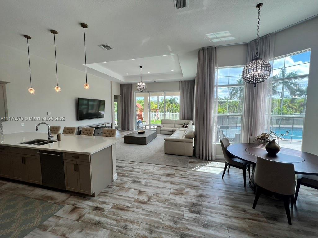 Immaculate open concept luxury home featuring high ceilings, designer kitchen with quartz countertops, custom backsplash, GE Monogram stainless steel appliances, double oven, built in cooktop and wood cabinets. Custom built in closets installed throughout all the bedrooms, baths, hallway closets and butler's pantry. The master has two large walk in closets, no need to share. PGT Hurricane Impact Windows and Doors that open up to the serene patio area with an oversized heated pool (20x50) with a spa and a sun ledge. Travertine back patio and pool deck. Granite in all bathrooms and laundry room. Extravagant Restoration Hardware chandeliers, Energy Smart Builder, LED lighting, Smart home with automated Security system. Easy access to Highways, Hard Rock Casino and centrally located.
