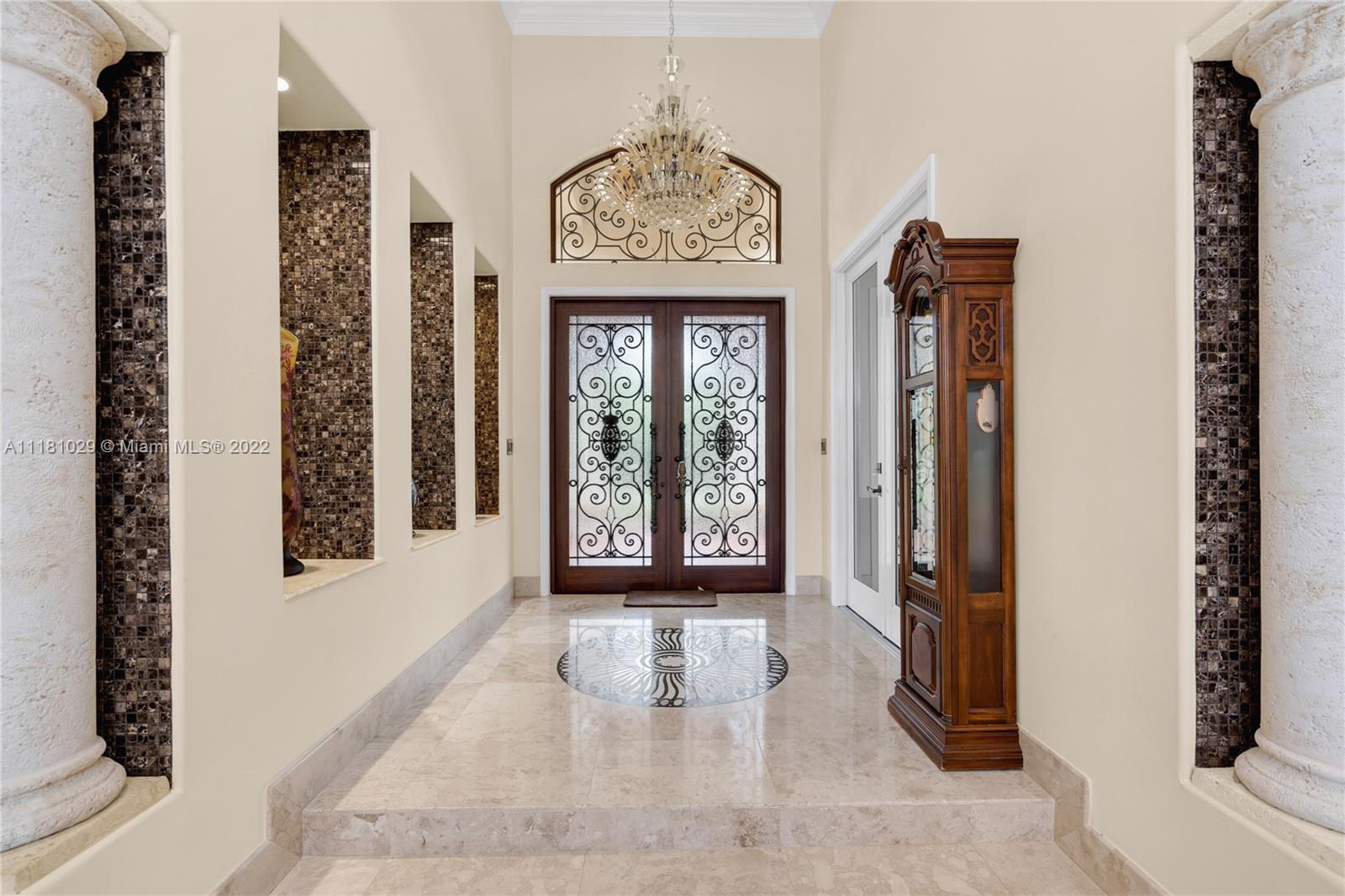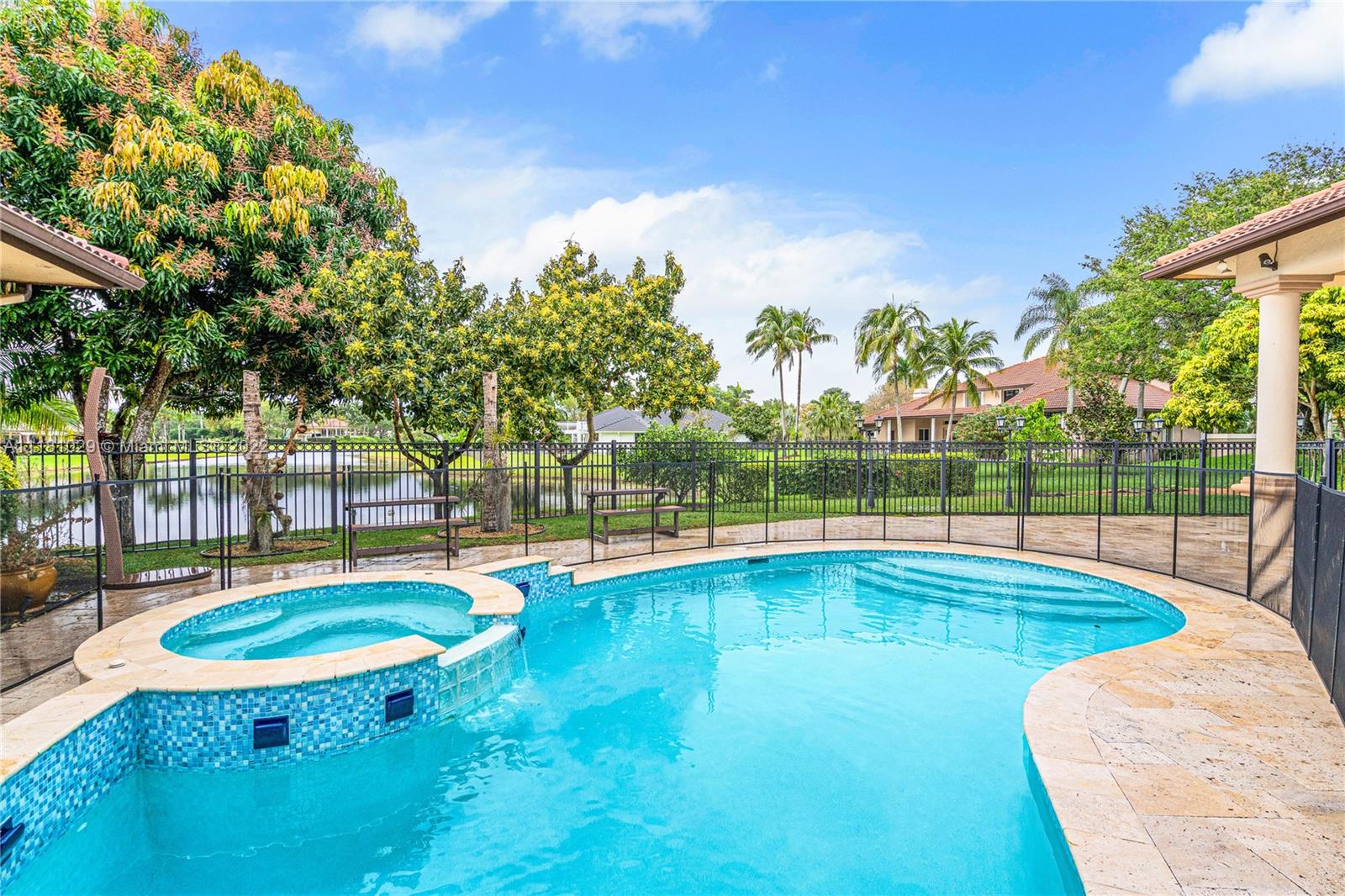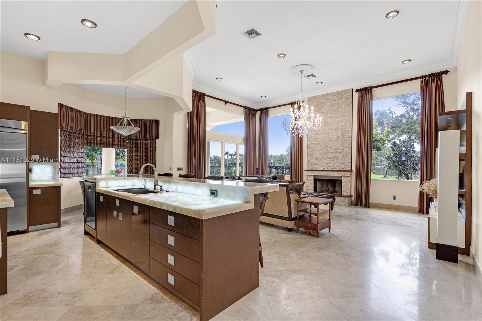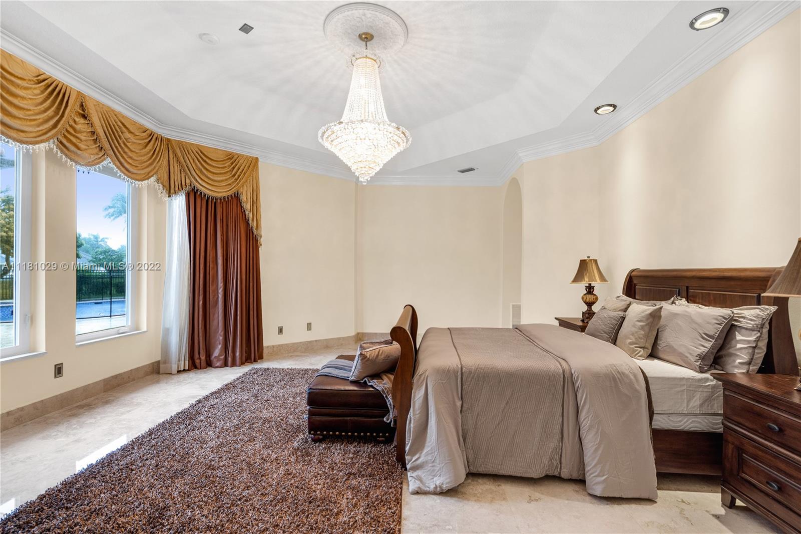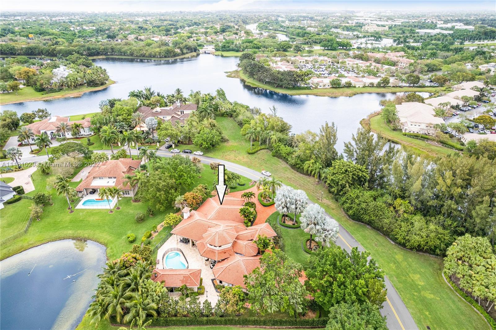 Best Price in Windmill Ranch! Spectacular custom estate in a prestigious gated community, home sits on an exquisite lake front 1 acre lot on a private cut-the-sac lot, with 10+ parking spaces, marble floors, volume ceilings, luxury chandeliers, costume made high end drapes, fireplace with lights, crown molding, Kitchen, bar and bathrooms features stunning imported Quartz countertops, custom made library with mahogany wood and security door, main entrance includes a semiprecious gold medallion valued $15k +, each bedroom has private bathroom, master bedroom includes two closets, private room for exercise or baby room, his and hers bathroom including two toilets, entire house contains LED lights and impact windows, salt water pool and more!