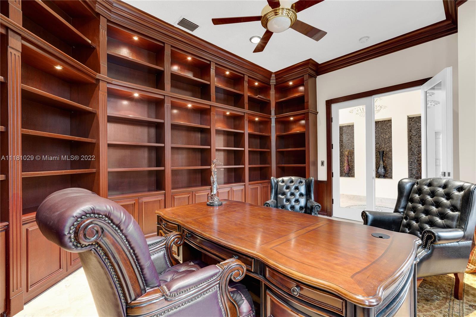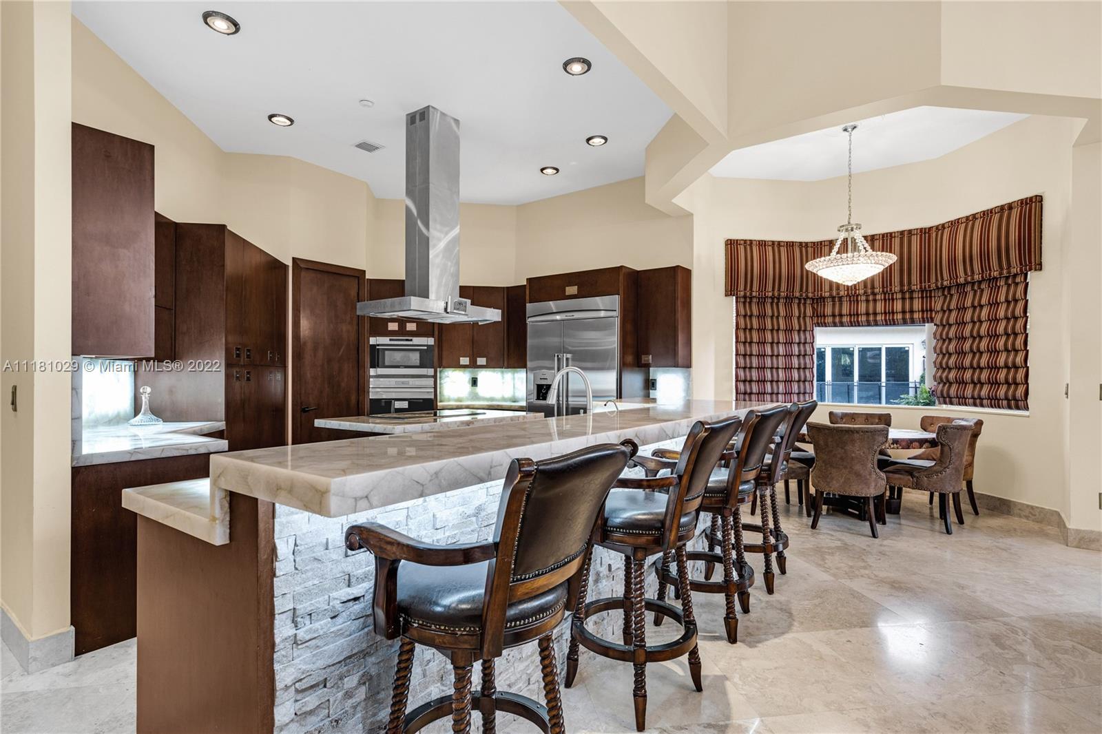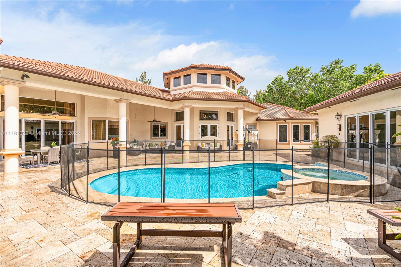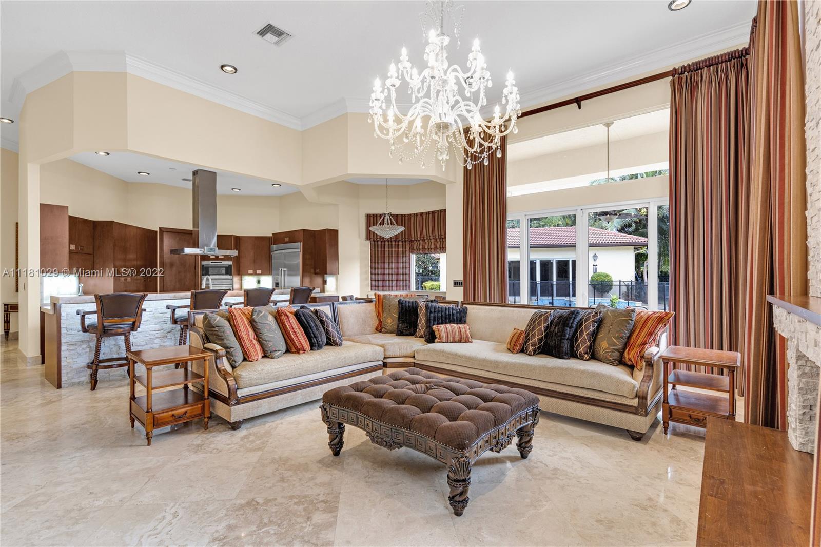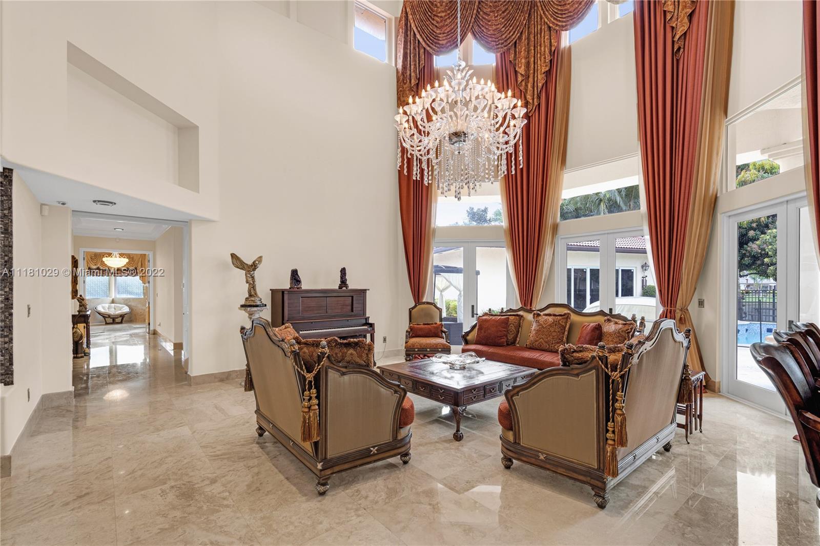 Best Price in Windmill Ranch! Spectacular custom estate in a prestigious gated community, home sits on an exquisite lake front 1 acre lot on a private cut-the-sac lot, with 10+ parking spaces, marble floors, volume ceilings, luxury chandeliers, costume made high end drapes, fireplace with lights, crown molding, Kitchen, bar and bathrooms features stunning imported Quartz countertops, custom made library with mahogany wood and security door, main entrance includes a semiprecious gold medallion valued $15k +, each bedroom has private bathroom, master bedroom includes two closets, private room for exercise or baby room, his and hers bathroom including two toilets, entire house contains LED lights and impact windows, salt water pool and more!