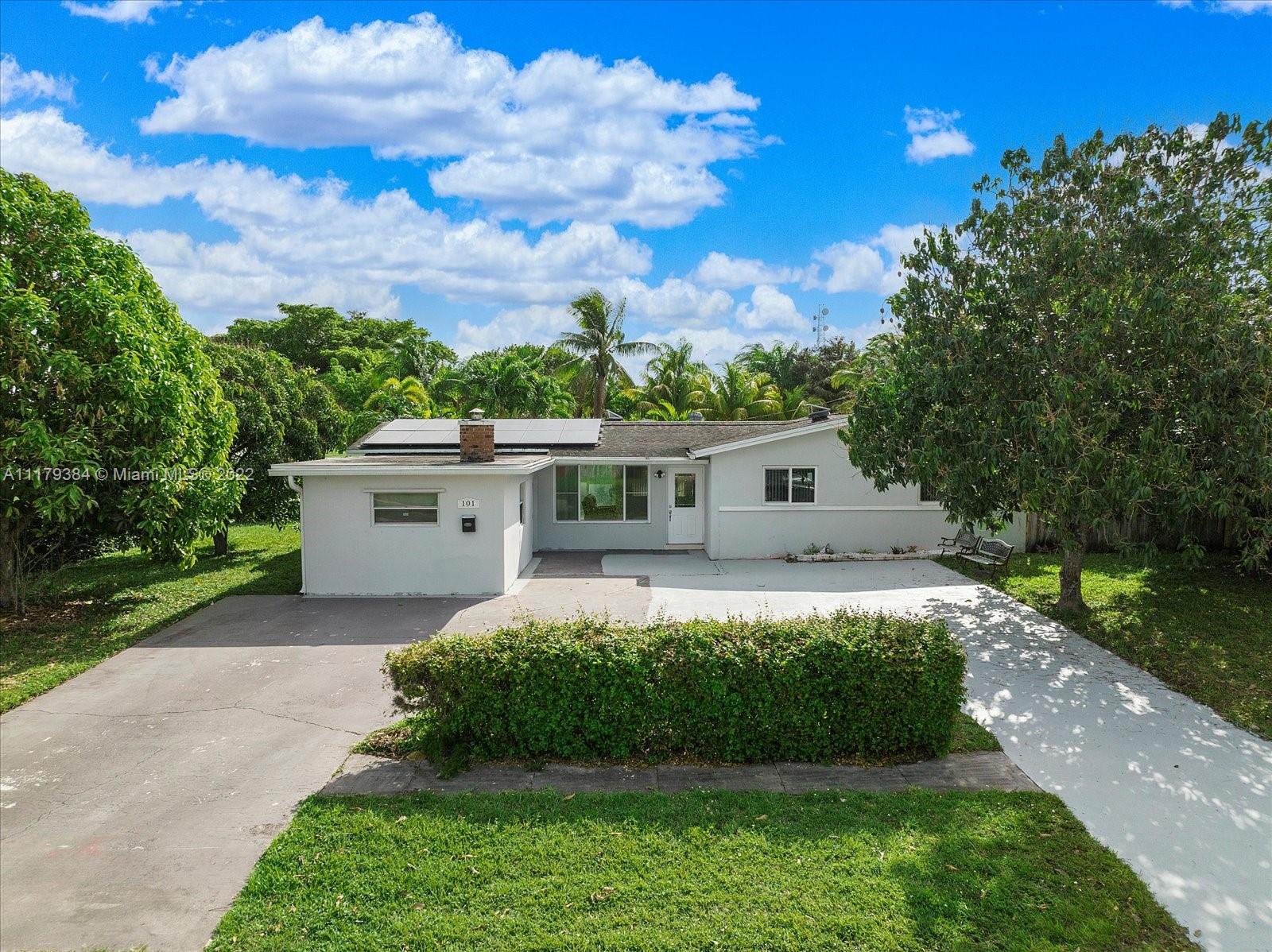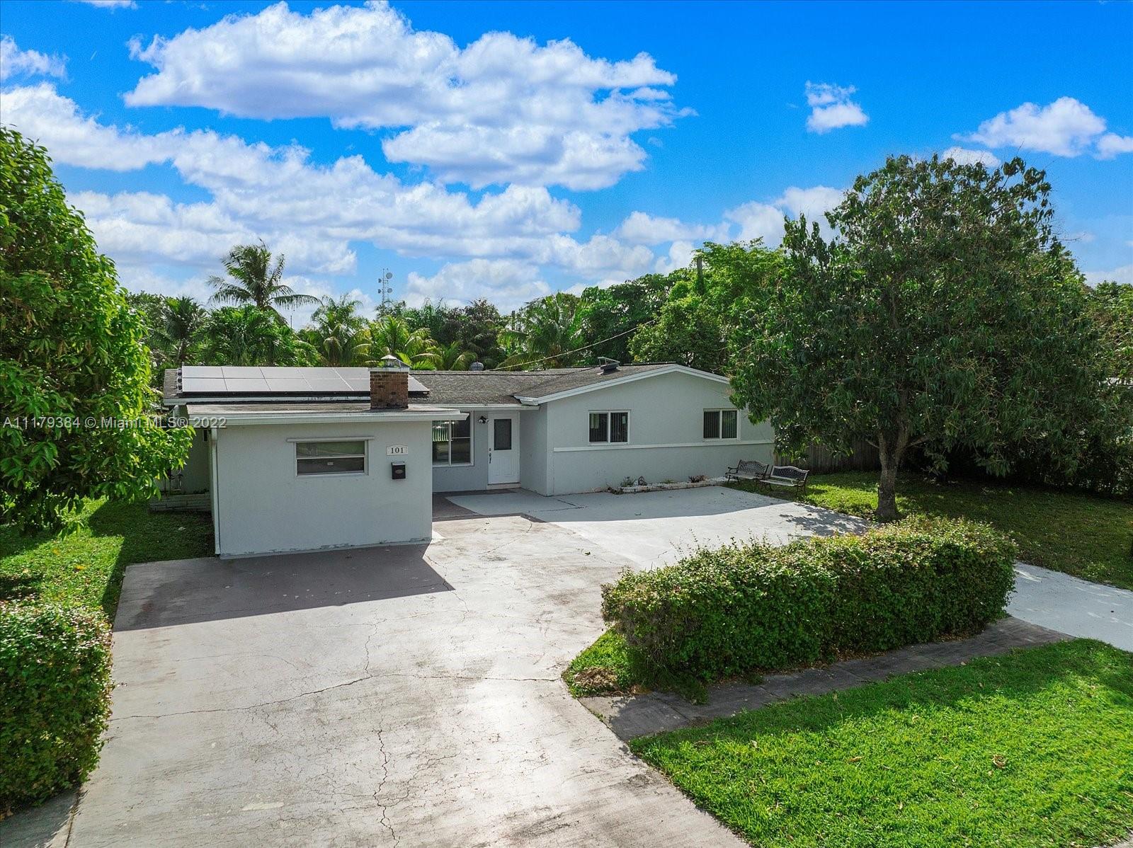 3 bedroom, 2 bath home with solar panels, remodeled kitchen, and bathrooms, tile floors, separate entrance room could be an office or in-law. Lots of space for entertaining and room for a pool. Walking distance to schools and a great commuter spot to downtown Fort Lauderdale or Miami.