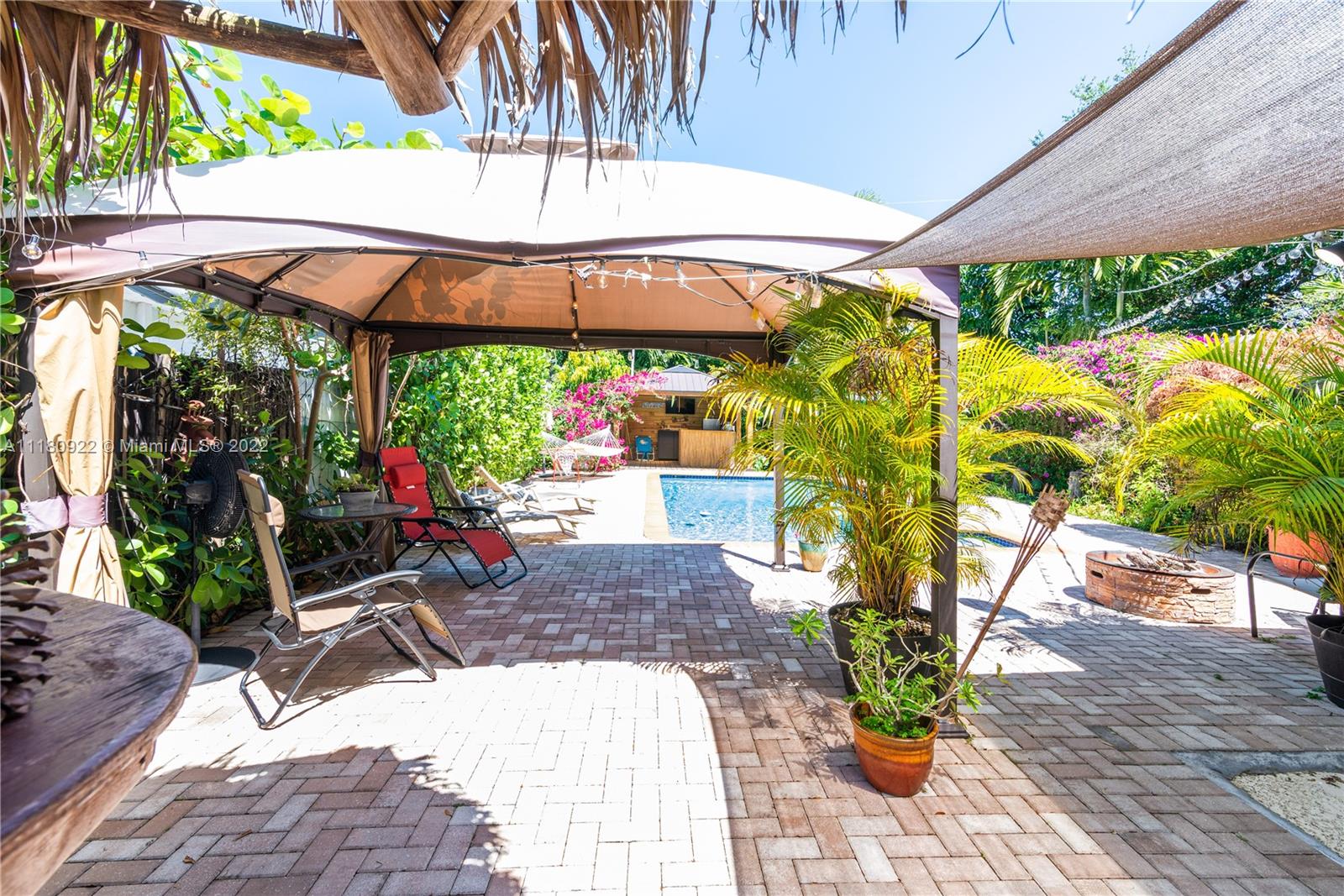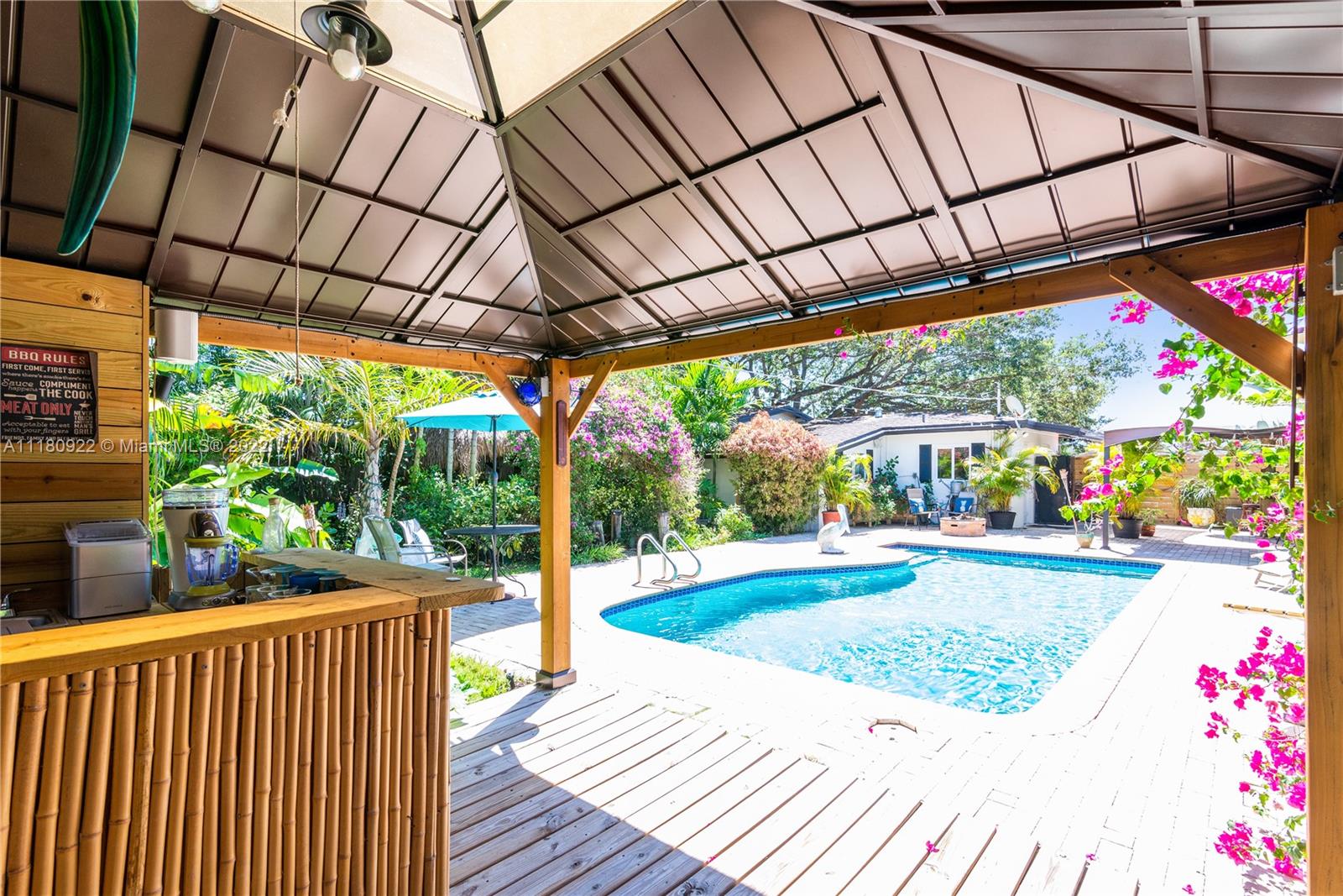 Welcome home to your private Oasis! Enjoy the tropical environment the home owners have created in this stunning backyard. The pool area has pavers all throughout with a tiki hut and cabana, the music flows around the backyard which makes you feel like your in key west. The lush landscaping has plenty of flowers which attract many butterflies, truly stunning and magical to see. This stunning home has been fully upgraded in 2018. From top to bottom there was no expenses spared. A new Roof has been installed with updated plumbing, new kitchen, new appliances, new A/C unit as well as new air ducts installed, Impact Windows, new porcelain tile flooring, new lighting and both bathrooms has been renovated. Back yard has space to park boats. No association