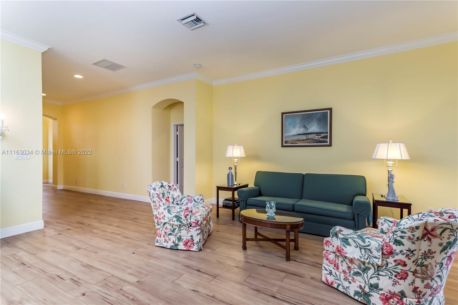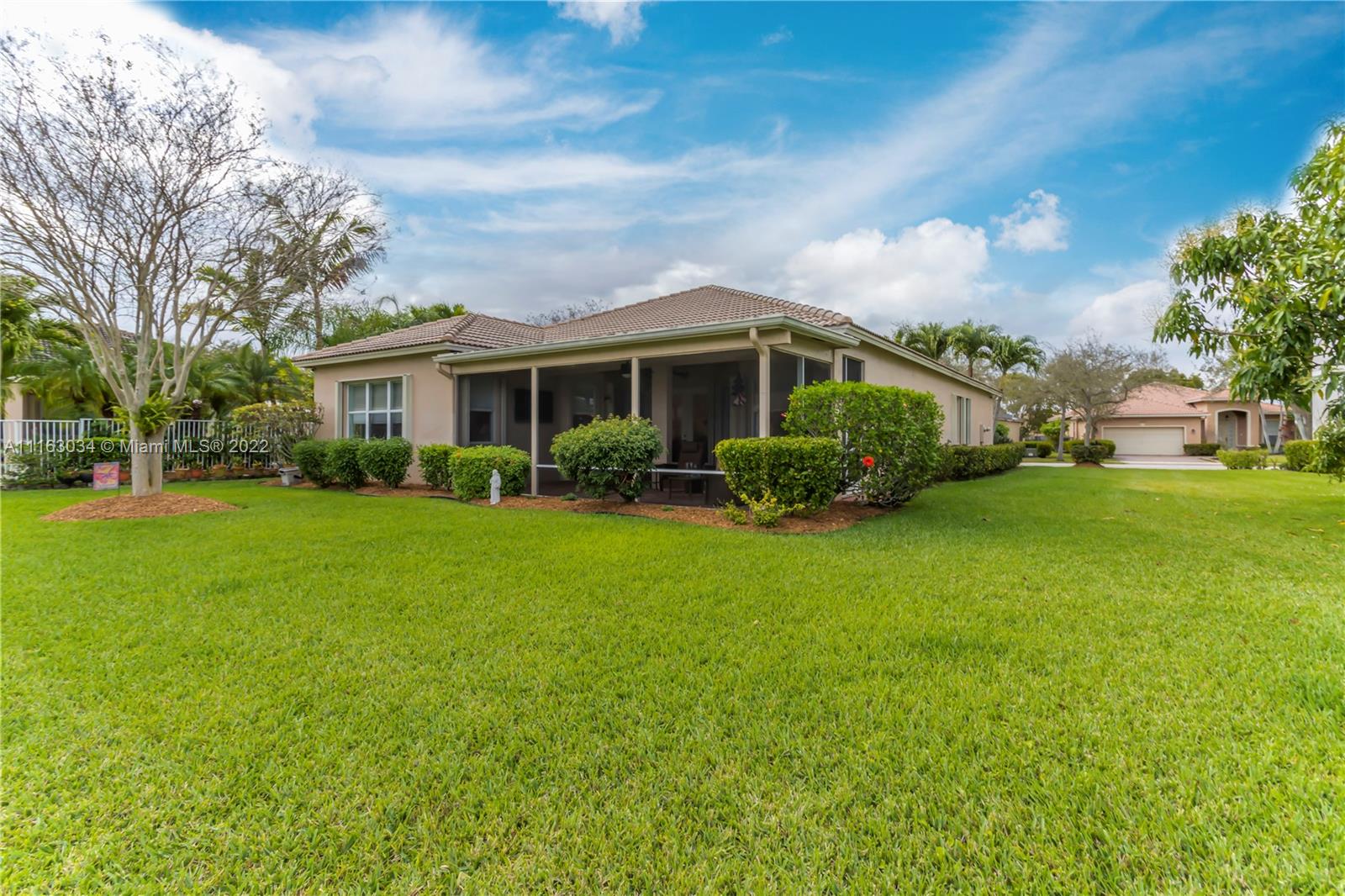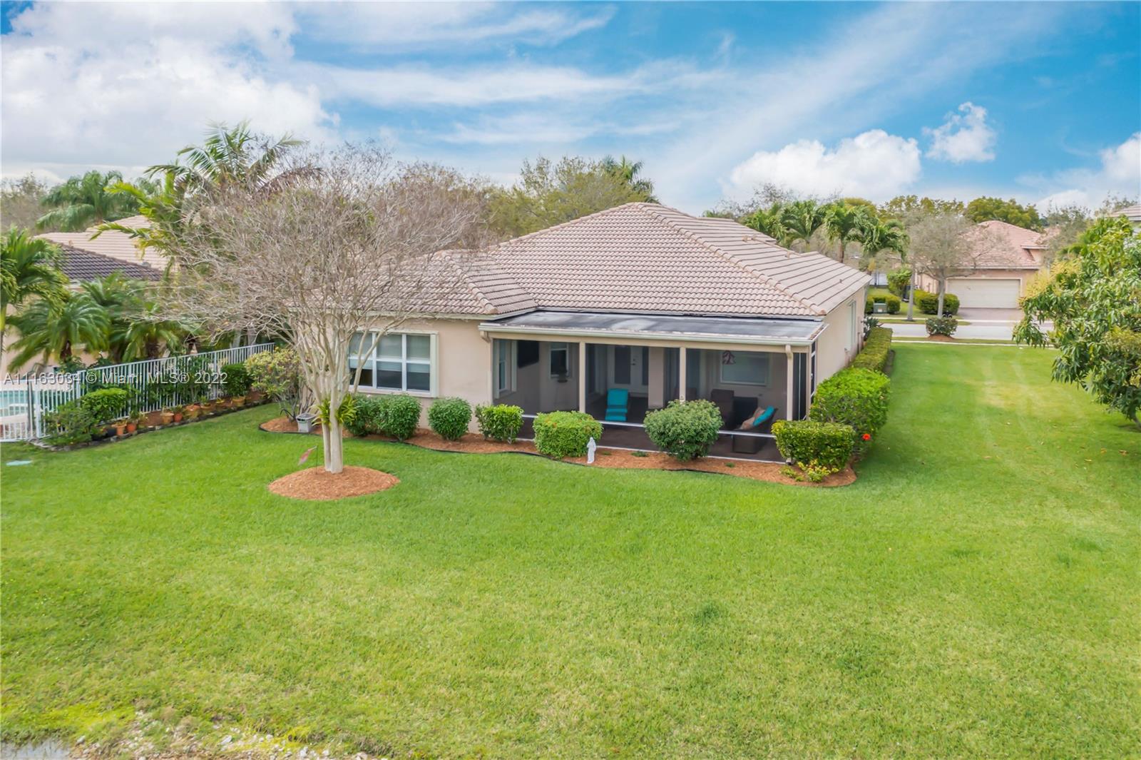 Single-story home in desired community of Isles at Weston. Pride in ownership shows w/ beautifully landscaped yard. Enter into this freshly painted home with its warm neutral tones, high-hat lighting, crown molding & all new base boards. All new beautiful vinyl wood floors. Master bedroom features his and her closets as well as sliding doors that lead to the patio. Master bathroom completely remodeled w/ quartz countertops, an aroma therapy step-in tub w/ bubble jets. Large kitchen and family room perfect for entertaining. French doors in formal Livingroom also lead to the patio. Relax out in your extended patio which is screened in w/ 2 ceiling fans. Amazing views of the lake & garden. Very peaceful & private. HOA includes Internet basic TV, hotwire, clubhouse, gym & pool.