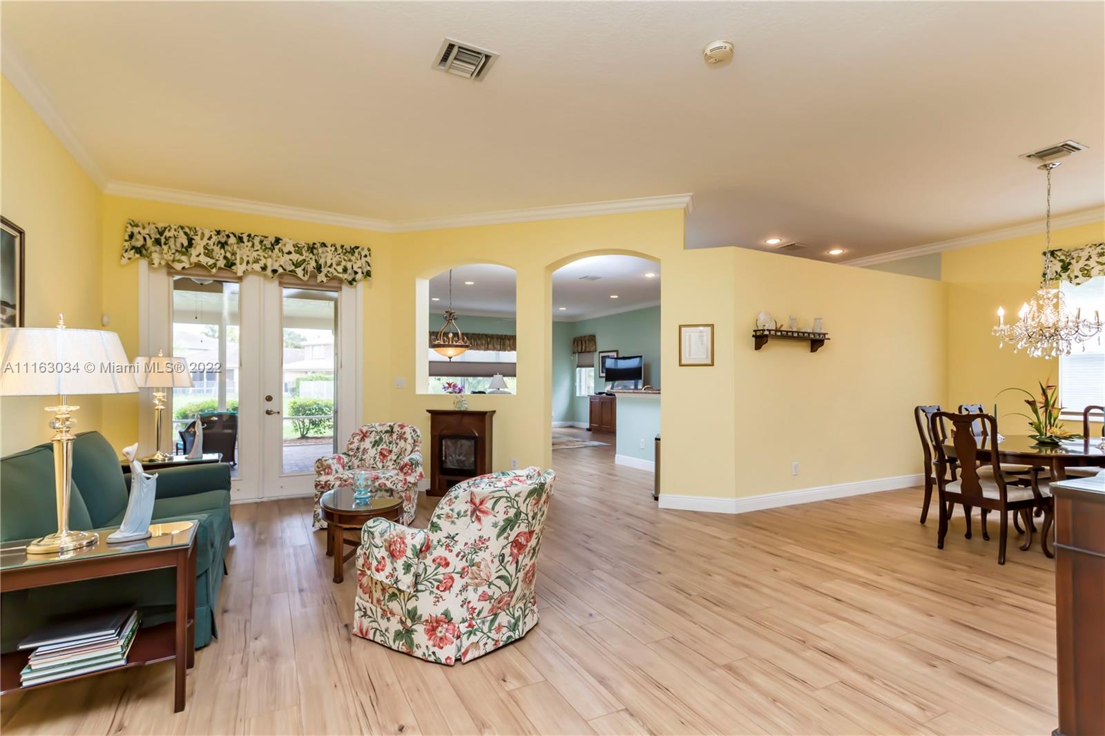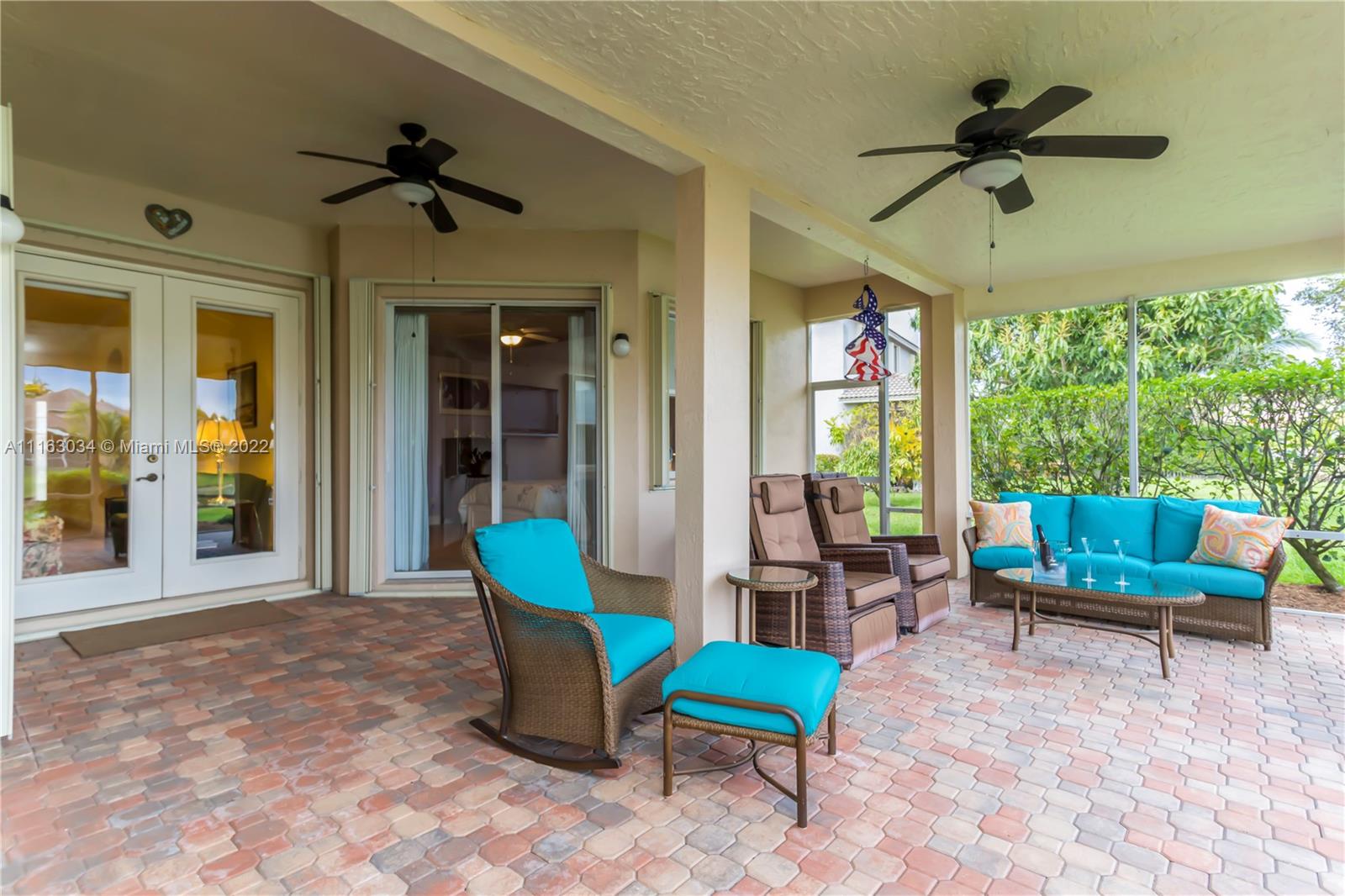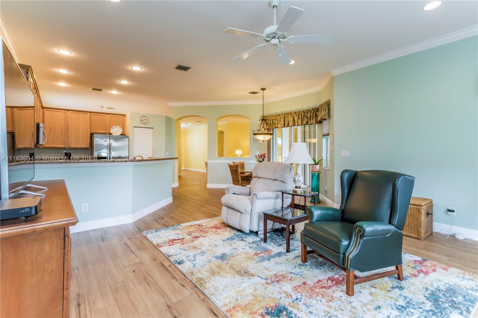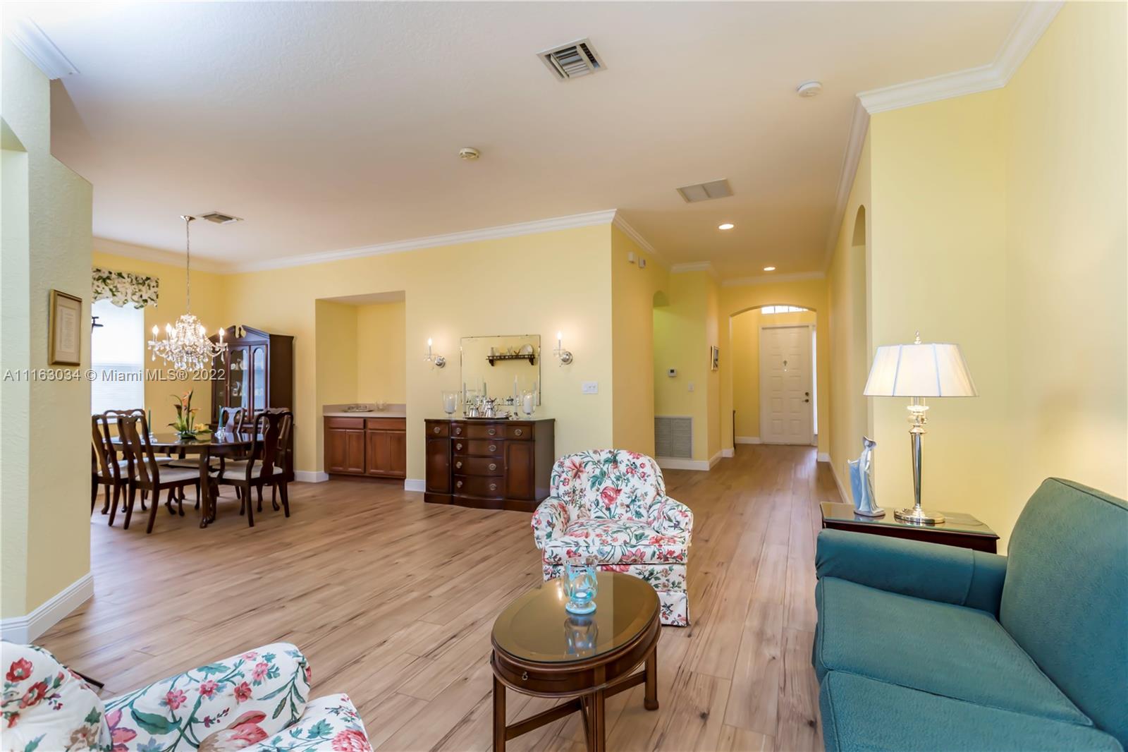 Single-story home in desired community of Isles at Weston. Pride in ownership shows w/ beautifully landscaped yard. Enter into this freshly painted home with its warm neutral tones, high-hat lighting, crown molding & all new base boards. All new beautiful vinyl wood floors. Master bedroom features his and her closets as well as sliding doors that lead to the patio. Master bathroom completely remodeled w/ quartz countertops, an aroma therapy step-in tub w/ bubble jets. Large kitchen and family room perfect for entertaining. French doors in formal Livingroom also lead to the patio. Relax out in your extended patio which is screened in w/ 2 ceiling fans. Amazing views of the lake & garden. Very peaceful & private. HOA includes Internet basic TV, hotwire, clubhouse, gym & pool.