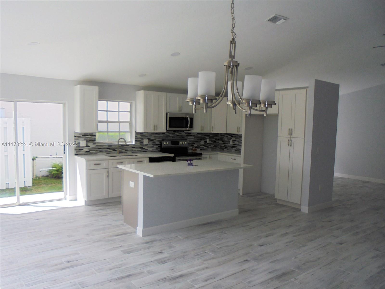 Beautiful remodel on this 3/2 waterfront home includes new roof, open floor plan, new kitchen with island and new cabinets, counters, appliances, fixtures, flooring and paint and so much more. Huge backyard with plenty of room for a pool and for the kids and pets to run. Home is located on a cul-de sac with no through traffic. A full two car garage and a pavered driveway to accommodate 4 cars. Full sprinkler system draws off the lake. Low HOA fees are just the icing on the cake. Bring your highest and best offer.
