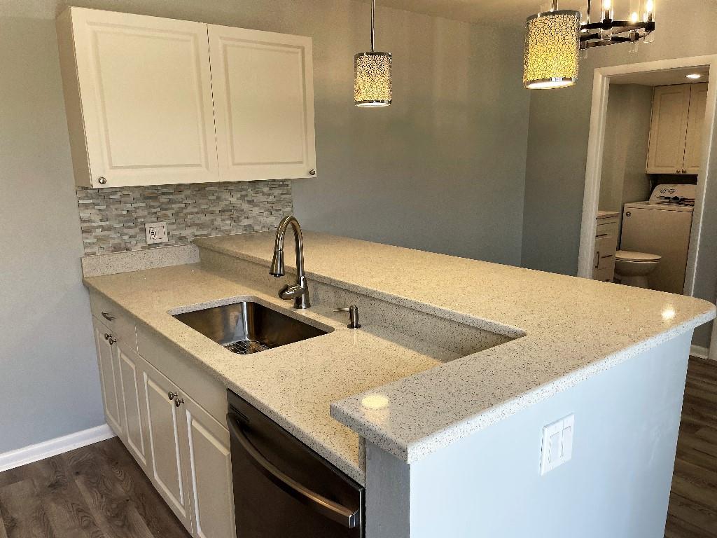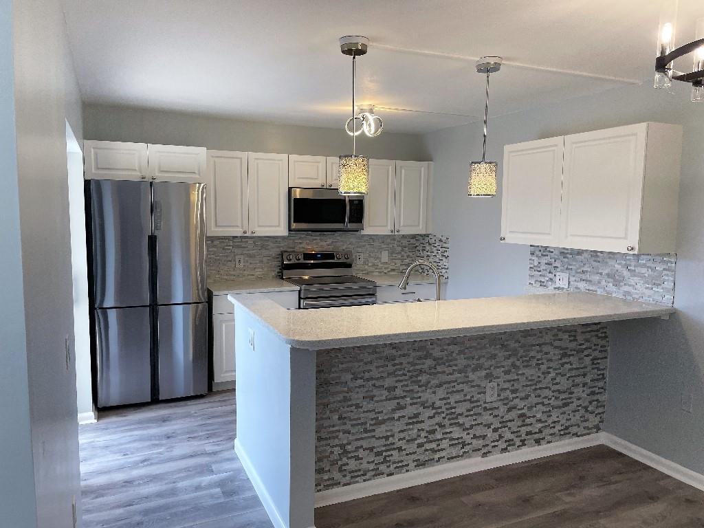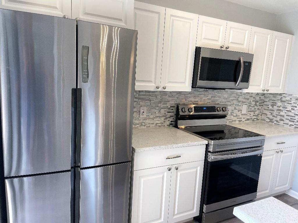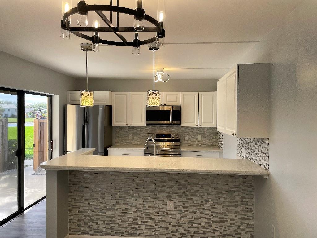 LOCATION LOCATION LOCATION!!! One of the best water views in the community and open green area. Professionally remodeled quad with brand new ac units and new kitchen cabinets and appliances and quartz top with large 2 ft bar overhang and modern pendant lighting. Hall Bathroom is fully remodeled with Kohler cast iron tub and floor to ceiling tiling and 2 accents pieces supply plenty of extra storage!!! Master bath has a double sink and neo angle glass enclosed shower also with floor to ceiling tile. Modern lighting in bedrooms with hidden fan blades a new style just on market. Knockdown ceilings (popcorn removed). A water view from both bedrooms will complete this beautiful home. Hurry call for your private viewing.
