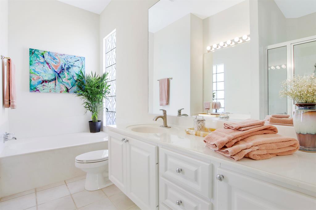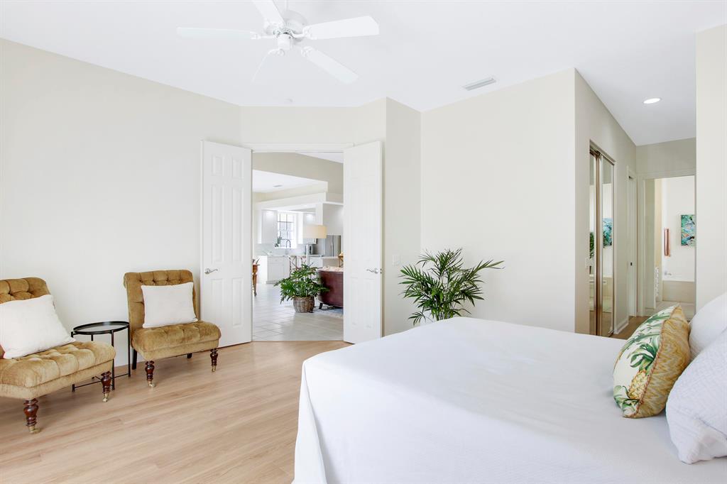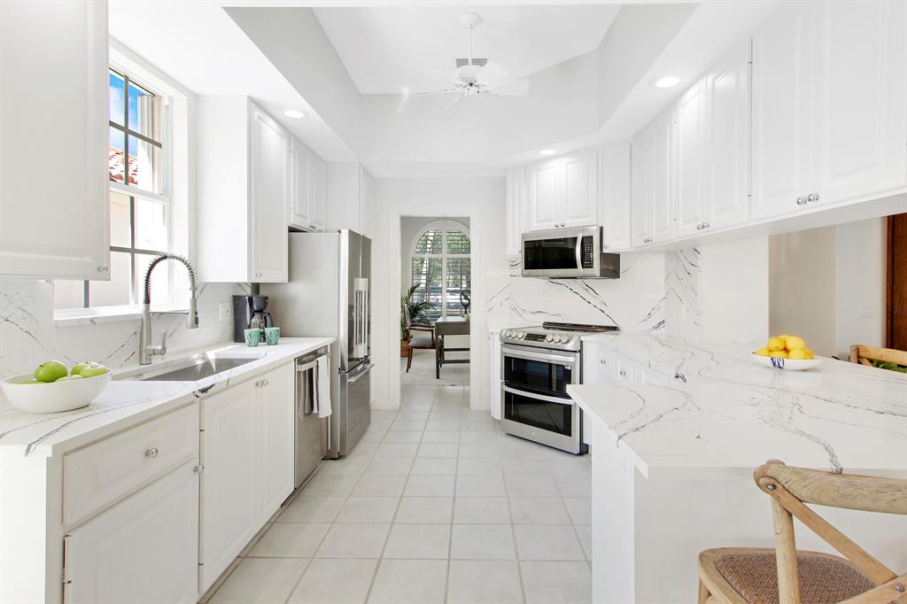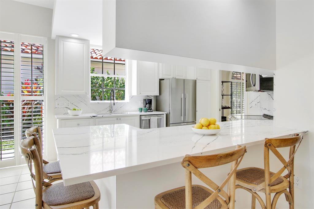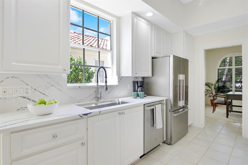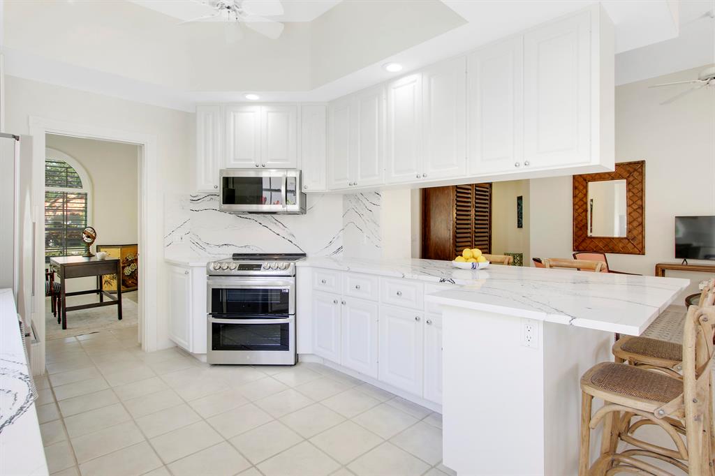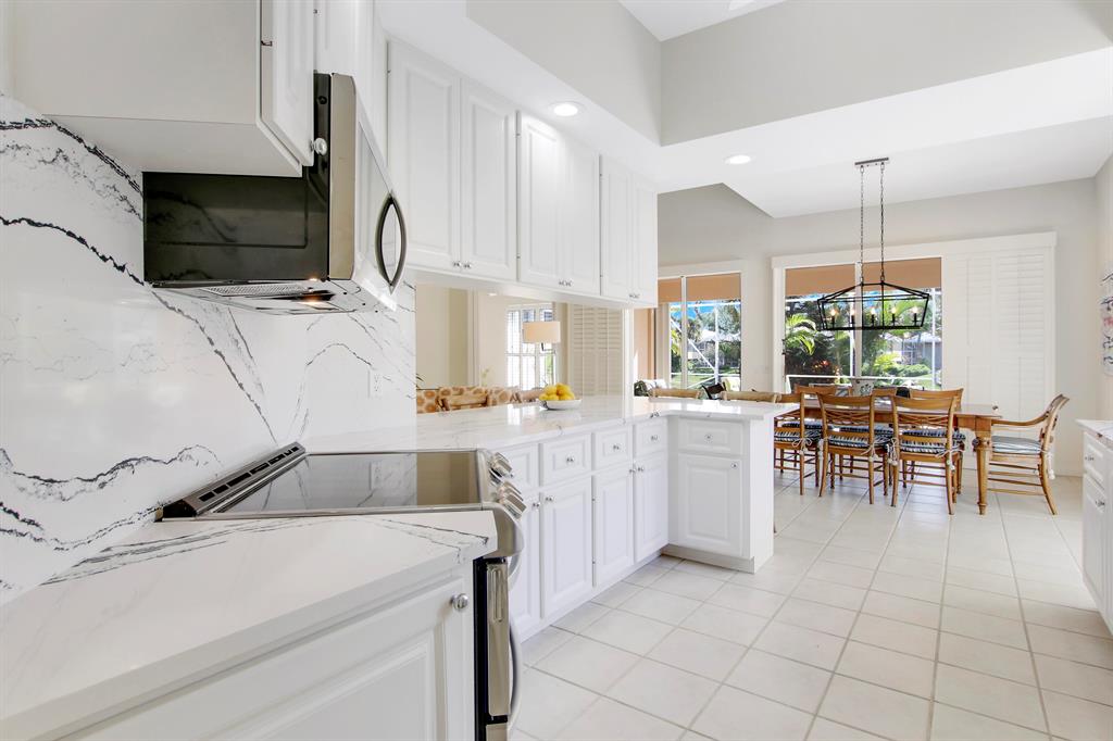 PRISTINE Oakmont floor plan in Riverwalk- one of most popular active communities in West Palm Beach! 3 bedroom, 2 bath, den/office, 2-car garage, and over-sized screened in patio that over-looks the lake. Perfect cul-de-sac location with direct access to one of the many connecting pedestrian bridges- a very short walk to Town Centre. Foyer leads to the family room with 12' vaulted ceilings. Updated kitchen with all new SS appliances (Fisher Paykel counter depth refrigerator, GE dishwasher, LG 5 burner range with double oven, LG microwave), new SS Kohler sink and top-od-the-line Carrara Marmi Quartz countertops/backsplash, and new LED lighting. Breakfast counter easily seats 4, and opens to both the Living Room and dining room.
