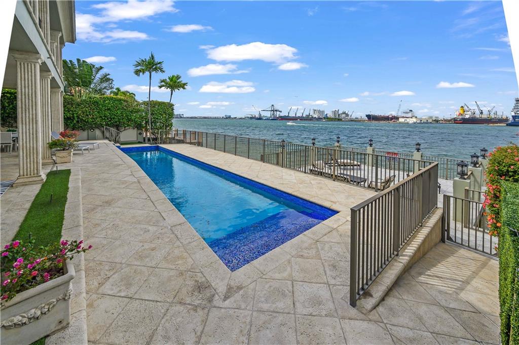 Sought after and rarely available Harbour Inlet waterfront estate, featuring incredible views of mega yachts and cruise ships 7 days a week! Breathtaking sunsets & gorgeous downtown views. A spacious 2nd floor balcony spans the length of the home. 4 large bedrooms with office/gym, a full house automatic generator, water purifying system, wood floors, impact windows, large kitchen with island and huge pantry. Beautiful coffered ceilings with crown molding, wet bar and commercial elevator with access to 3rd floor air conditioned attic. Large master suite with 2 huge master closets. The oversized concrete dock & 11X50 ft. lap pool is fun for all social gatherings. Artificial turf and a complete mosquito misting system. Generous 3 car garage. Interior photos week of April 5th.