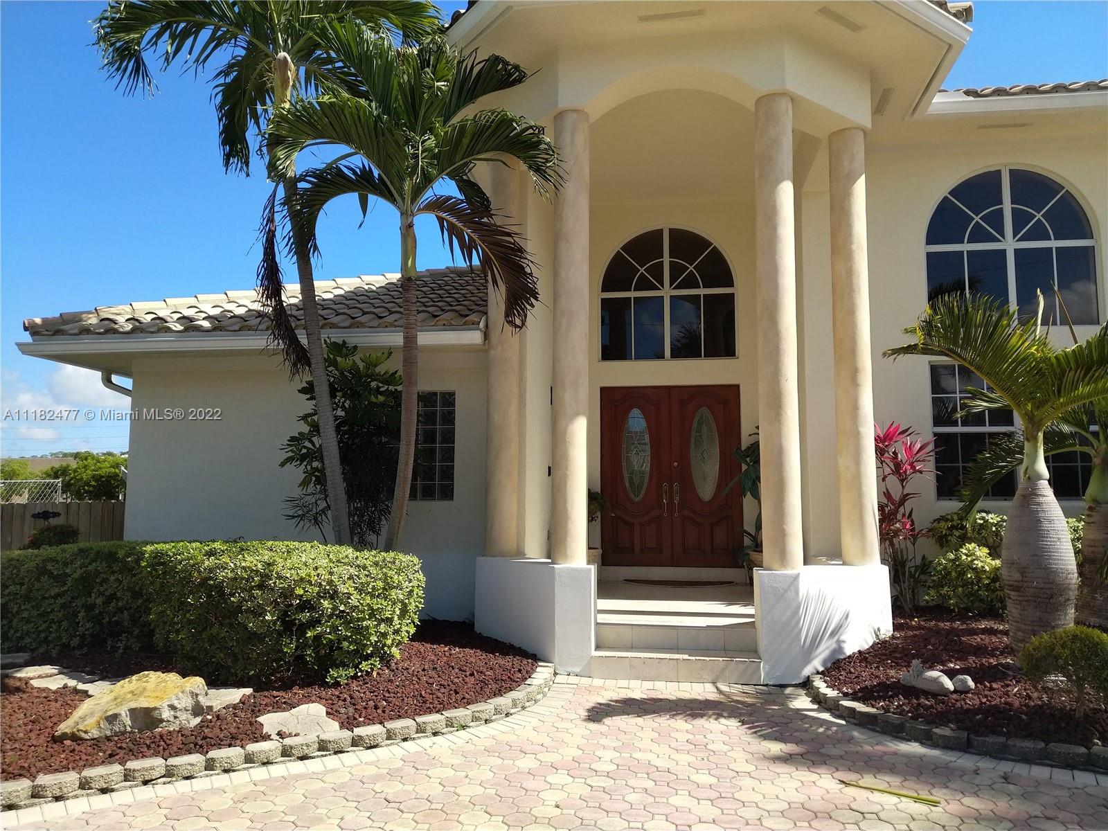 Beautiful 5/4, waterfront, ocean access home in guard-gated Eastern Shores. Dock for 80 foot yacht. Modern home with luxurious high ceilings, marble floors, granite counters, 100% hurricane impact windows, 4 AC zones, heated pool, spa, Google smart home & so much more. This house was built to modern hurricane standards with high strength roof system. The master suite is downstairs, with 2 more bedrooms downstairs and 2 more bedrooms upstairs. No fixed bridges to the ocean and this location is a very secure spot for your yacht. Includes a Waverunner elevator lift. This home is located at the private cul-de-sac at the end of 164th ST. There are only 128 homes inside this guard gate so it is a very private and secure home for your family.