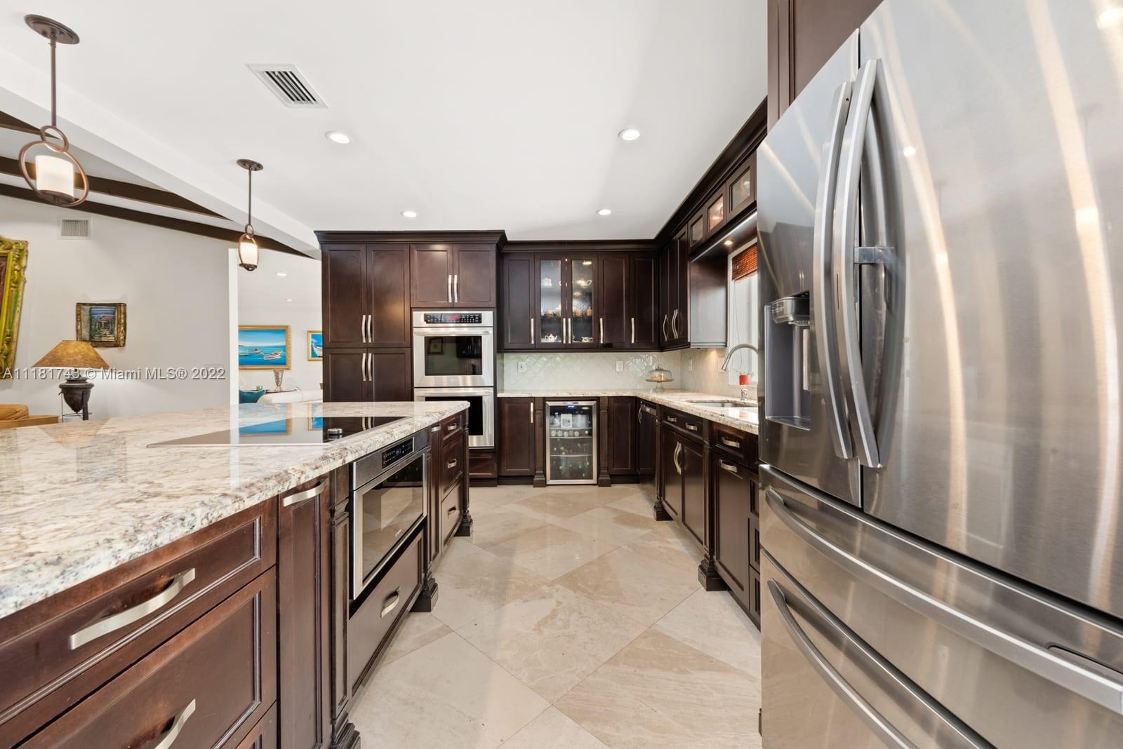 Totally updated fine executive home with top of the line finishes, oversized landscaped fenced lot on the golf course, a pool and spa that is just over a year old! Two masters, spa tubs, steamer shower, closet organizer systems, anything to make living the good life has been thought of in this home. An outdoor screened entertainment area includes built in grill and wine fridge with a tv awaits, as does the custom cabinetry throughout with an oversized kitchen island. The travertine marble patio that surrounds the oversized pool and jetted, heated spa comes complete with outdoor shower and privacy screening. For the floral lover, the entire yard boasts orchids on trees and on fencing. A zen garden also beckons for a wind down from busy days.