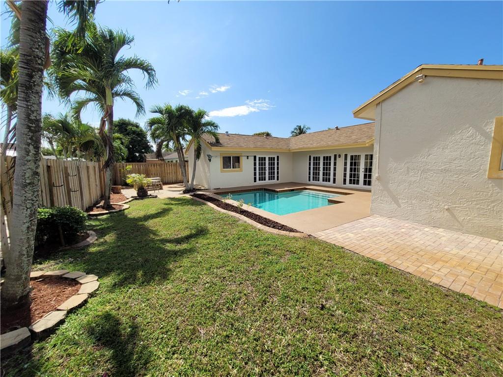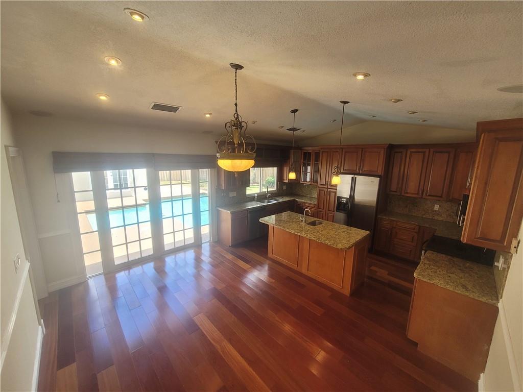 Check out this spacious 4 bedroom, 2 bathroom, 2 car garage with a pool in sought after Beachwood Heights .NO HOA!! Amazing custom kitchen with island and prep sink, wood cabinets with molding , stainless steel appliances. Layout great for entertaining with French doors leading to private pool area and backyard. Granite counters in kitchen and bathrooms, matching elegant wood floors throughout home. This home boosts loft ceilings with sunken living room, double door entry ,4th bedroom has no closet but is spacious. The driveway can hold 4 cars as well as 2 in garage. There is also surround speakers throughout house. The neighborhood is quiet and safe, close to restaurants , shopping.
