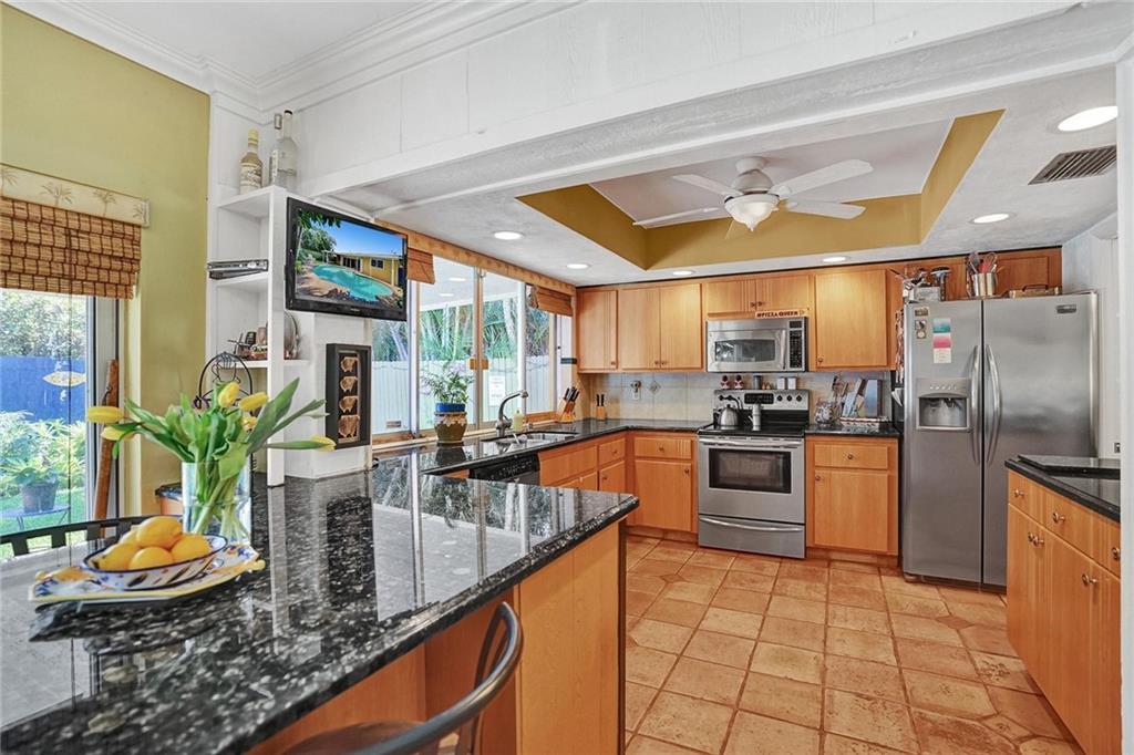 Welcome to spectacular turnkey pool home in incredible location. Amazing resort-like tropical backyard and landscaping with a free form pool with spa. Located blocks to prestigious Hollywood Lakes, minutes from the beach and houses of worship and steps to the lake and intracoastal. Sliding glass doors lead to backyard perfect for entertaining and hours of fun in the sun. The kitchen has a fantastic panoramic view of the pool and patio, giving a seamless connection between indoor and outdoor living. An Oasis in The Heart of East Hollywood across from Eco golf course. Warm and cozy home with authentic Mexican tile. Large granite top bar for guests while you dazzle them with your culinary skills. SS appliances. Bright and comforting. You feel like your always on vacation.