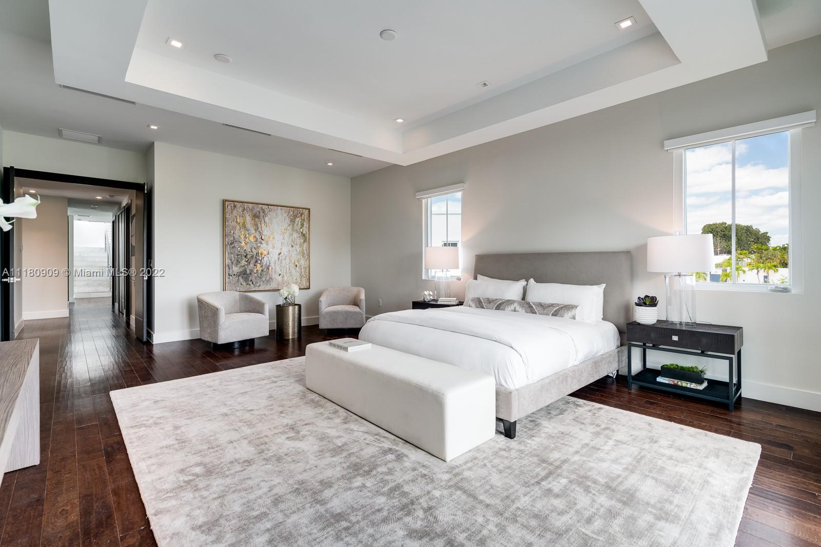 Stunning 5 bedroom, 6.5 bathrooms in the highly desired gated community of Oasis Park Square at Doral. This bright, modern, and spacious home features contemporary architecture, intelligent design and masterful construction. New roof as of 2022. The home is ideal for families with ample space to entertain. The gourmet kitchen features an open layout overlooking the family room. Master bedroom suite offers a huge walk in closet and luxurious spa bathroom with whirlpool tub and shower. Resort style patio on double wide lot with pool and covered summer kitchen and dining. Expansive rooftop terrace with additional summer kitchen, jacuzzi and area to entertain! Additional features: elevator, wine cellar, office, impact windows/doors, and 2 car garage.