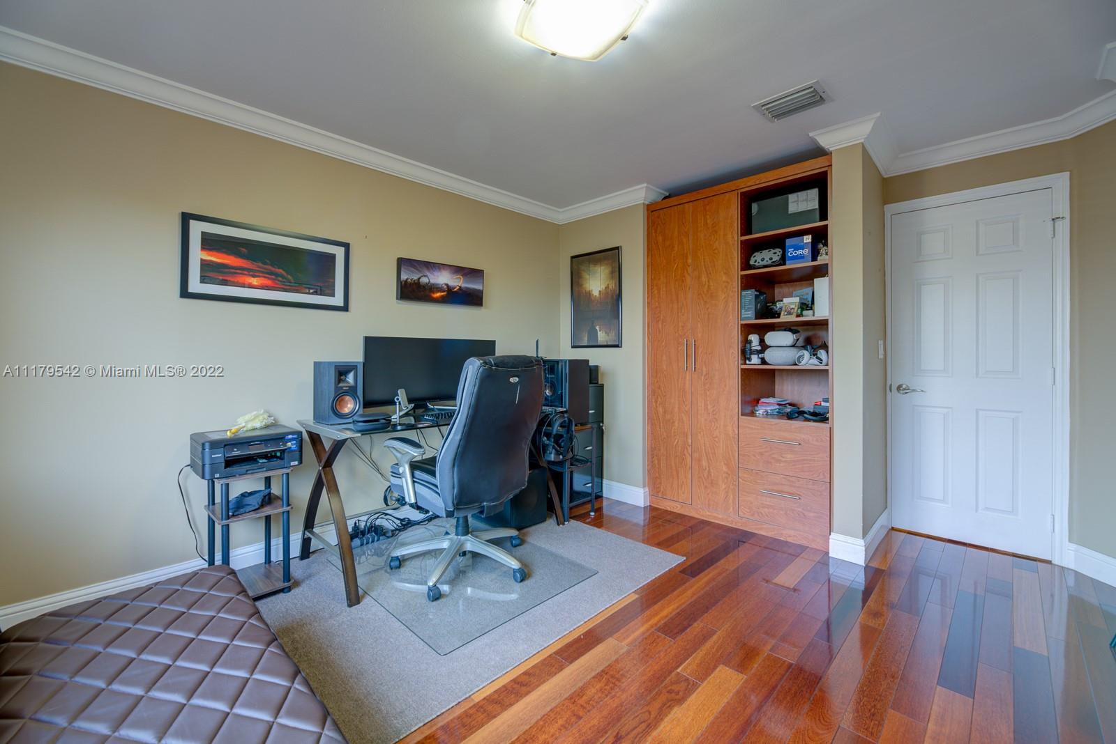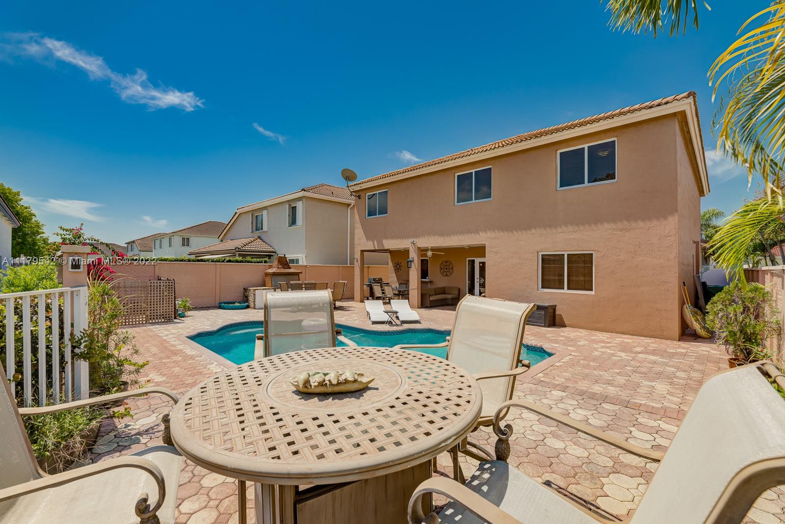 If you haven’t found your home in this current market, look no further. Situated in one of the sought-after communities in Doral, rarely available 5 bedroom/3.5 bath home in Doral Gardens does not disappoint. This two-story home boasts many upgrades — honey-colored wood kitchen cabinets and granite counters, newer appliances; multiple remodeled bathrooms. Ample-sized Master ensuite contains roman tub w/ whirlpool jets, separate roomy shower, his & her sinks; spacious closets. Tiled on first floor; real wood floors upstairs. 2-car garage has plenty of storage w/ custom cabinets. The most remarkable feature - back patio w/ inviting pool, lake view, and enormous custom grill. Generous in size, tranquil, close proximity to all local necessities and desires; this find exceeds expectations.