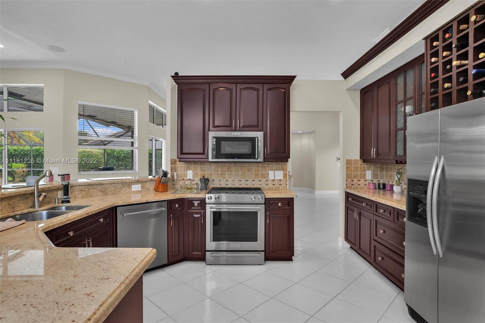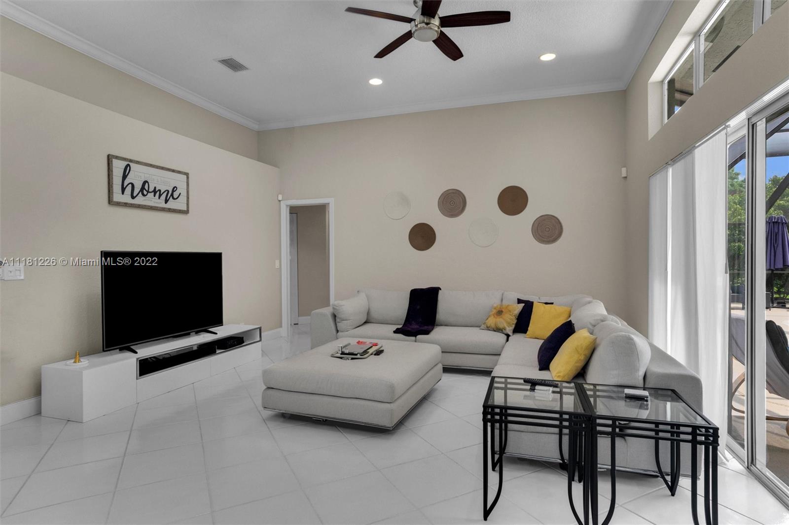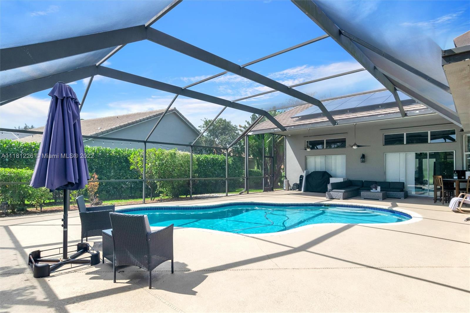 You've been waiting for your airy, open concept POOL home to hit the market and your patience is about to be rewarded! Enjoy relaxing or entertain inside and out from your separate family, living-dining spaces with sliders that lead to a partially covered, fully screened-in salt system, free form POOL. Interior features include an upgraded kitchen, diagonally laid tile, high-hat lighting, and a cabana bath. The primary suite has his & her closets with a separate shower, Roman tub, and dual vanities in its bath. Exterior features include an 11,500+ oversized lot, energy efficient solar panels, a spacious circular driveway, an automatic sprinkler system, and a double door foyer entry. Kensington is a low HOA fee community conveniently located near the sawgrass, schools, and parks!