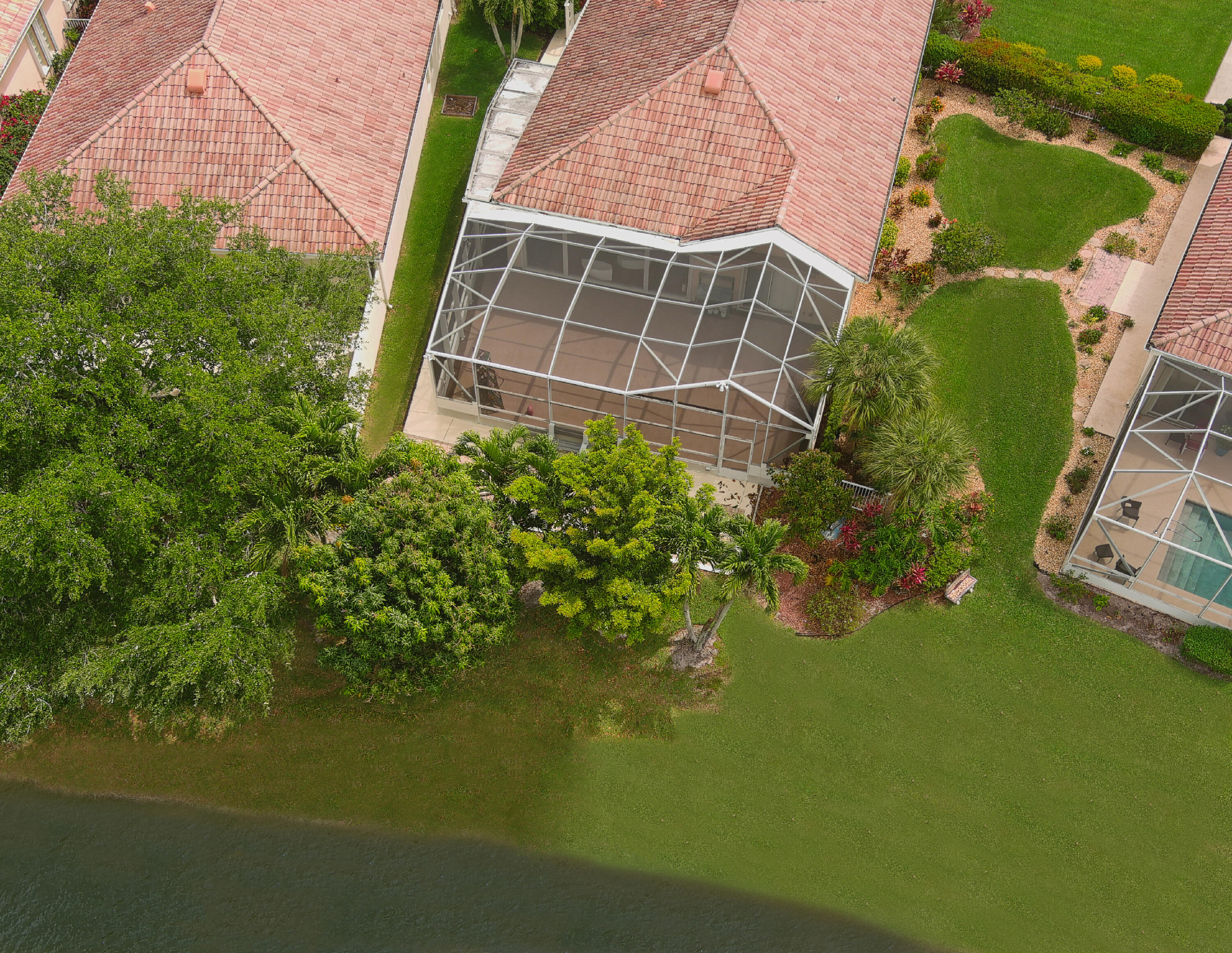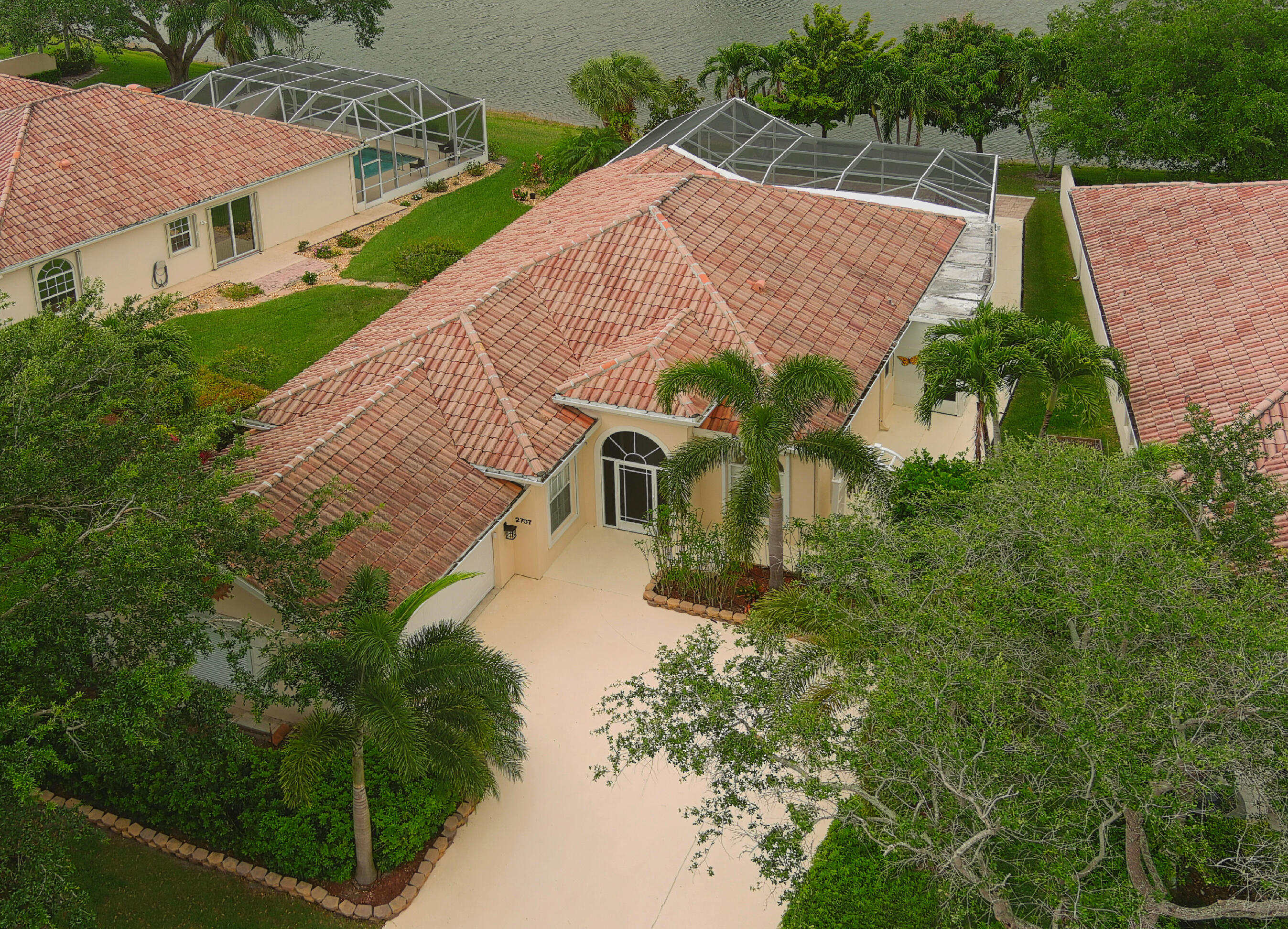 Stunning, Unique, Immaculate, Like New, & Tastefully Decorated! Over Used Descriptions? NOT IN THIS CASE! These Descriptions are Right On! And There's MORE! Fabulous Opportunity for One Lucky Buyer to Purchase a One-of-a-Kind Oakmont with Unique & Charming Outdoor Spaces, Updated with all of the ''Must Have'' Improvements & Located on one of the most desired streets in Riverwalk! This Charming Wide Lakefront Residence faces West on a Wider Part of the Lake offering More Privacy & Panoramic Sunset Views! The Experience begins with a Welcoming Motor Court with a Side Loading 2 Car Garage, a Lush Landscaped Lawn & a Walkway to the side yard with an Arbor that gives it a New England Garden feel, it also leads to the Covered Screened Entry with Unique Decorative Stone Walls, a Slate Tile Floor