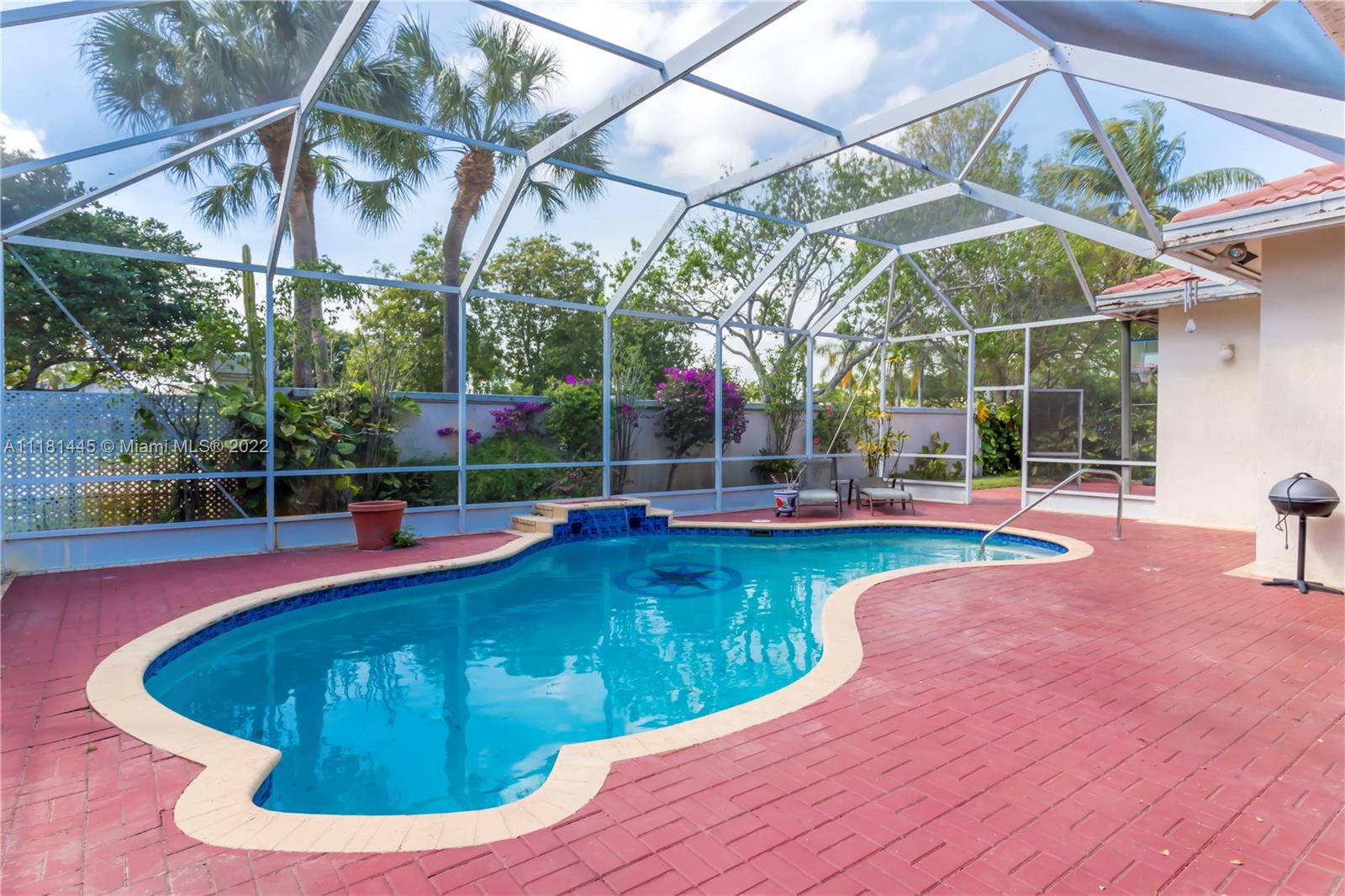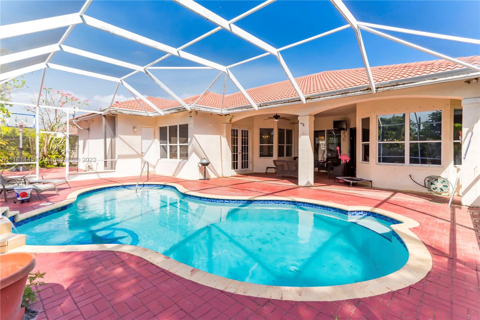 Amazing opportunity to own a home in the exclusive community of Estates of Pembroke Shores! This oversized 4 bedroom, 3 bath home offers approximately 3,500 sq ft of living space, ideal tri-split bedroom floor plan, volume ceilings, screened in pool area with pavers, and 3 car garage. Huge master bedroom has sitting area, bay window, His & Hers walk-in closets and large en suite. Kitchen has stainless ample storage and cabinetry with stainless steal appliances that opens to spacious family room and breakfast nook. New 5 ton AC and water heater installed in 2020, new refrigerator and newer washer/dryer. Perfect home for family gatherings and entertaining! Guard gated community that is located in a great school district, close to shopping, restaurants, and major highways.