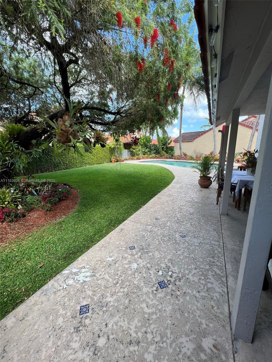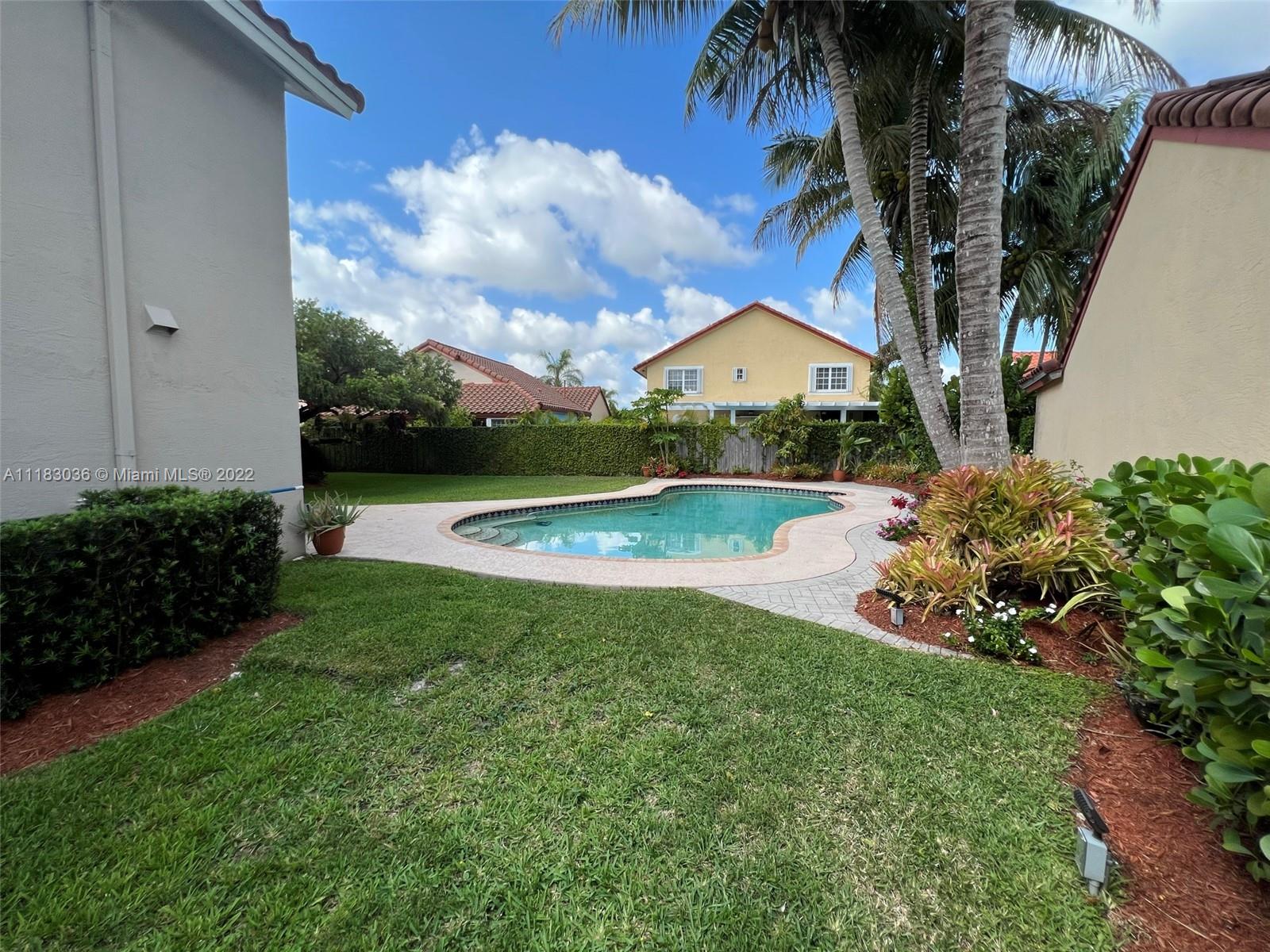 This single luxury family home with a beautiful heated pool, 4 bedrooms, 2.5 baths, electric screens, 5 ton A/C, located 2 minutes away from John I Smith K-8 a class school in Doral, high ceiling in main living and dining room, stainless steel Kitchenaid appliances, upgraded kitchen counter tops, master bedroom bathroom fully renovated with separated shower / tub, 2nd bathroom on 2nd floor upgraded too. Beautifully illuminated garden with a BBQ zone. Accordion shutters, HOA monthly fee is $290.00 plus Doral Park Country Club $95.00. Near to Hole 19 (special prices in restaurant) Office can easily be converted to a 4th Bedroom. House is located 10 minutes away from Downtown Doral & Doral City Place where there are excellent restaurants. The home sits on a lot that feels incredibly spacious.