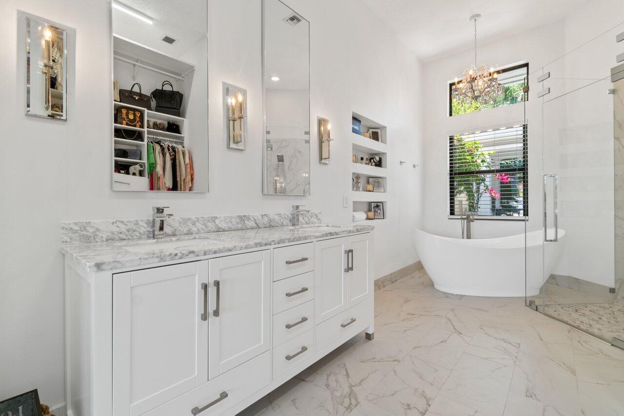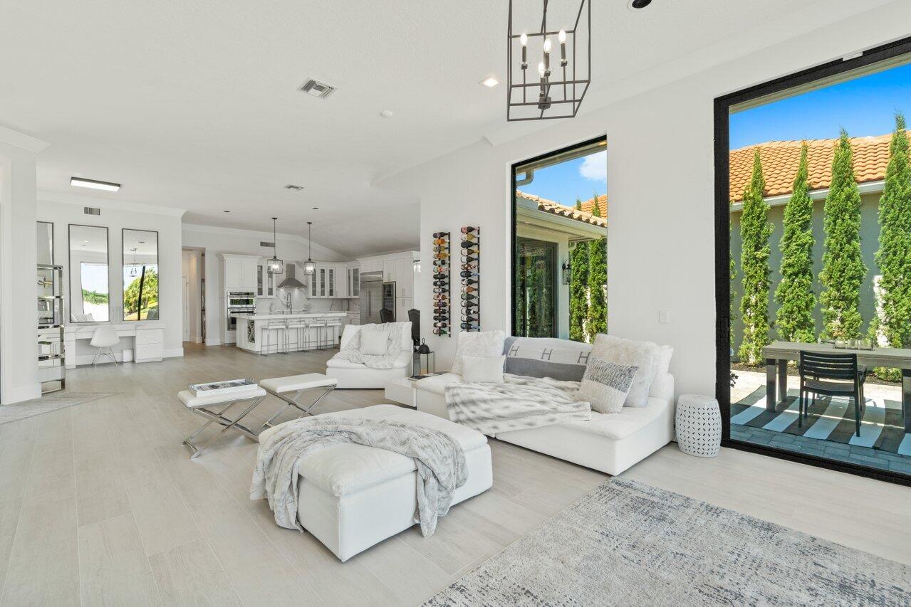 Waterfront home sited on a world class Jack Nicklaus designed golf course with beautiful panoramic views! This move in ready home is located on a private cul-de-sac in the premier gated haven of ''Regents Place'' and ensconced amid a prestigious Country Club (optional membership). A menagerie of extensive wildlife to enjoy daily from your home in the heart of West Palm Beach. Worth Avenue, Palm Beach International Airport, outstanding shopping and restaurants minutes away. Masterfully designed, this exquisite home has been fully renovated with precision to perfection. From the moment you enter through your private gate, to the soothing sounds of a Capri-inspired fountain, this inviting home welcomes you to your own paradise.