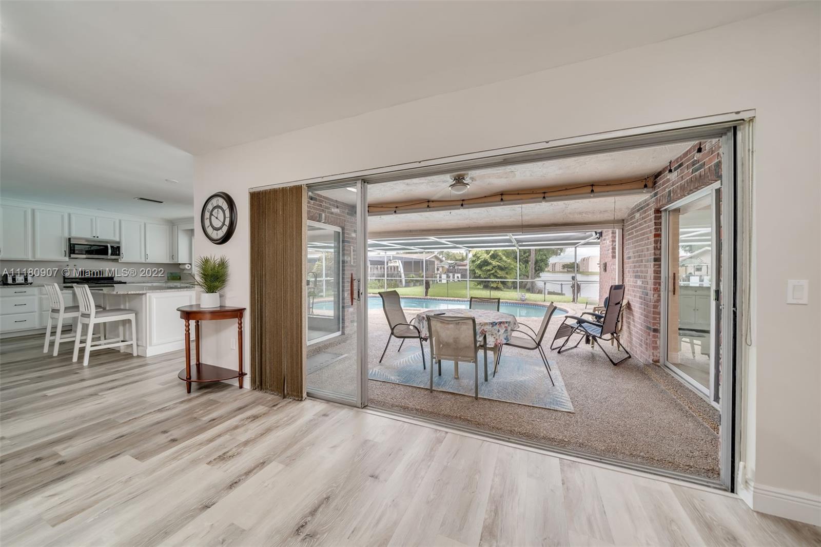 Stunning 3/2 waterfront swimming pool home. Enjoy south Florida living the way it was meant to be. As soon as you walk in the front door you know you're in paradise. This home has a beautiful open layout which allows you to see clearly through to the outside pool and lake area. Ahh we're home! Enjoy your private dock while sipping on your favorite beverage and looking out to the expansive, calming and soothing lake. Watch the game on your outdoor TV while catching sun in the beautiful screened in pool and patio area. This home has been completely remodeled with care and attention to detail. Boasting an updated kitchen with all new appliances including new gas stove, dishwasher, washer and dryer. New roof July 2020. Quiet neighborhood. Hurry!!! Priced to sell fast. This one wont last.
